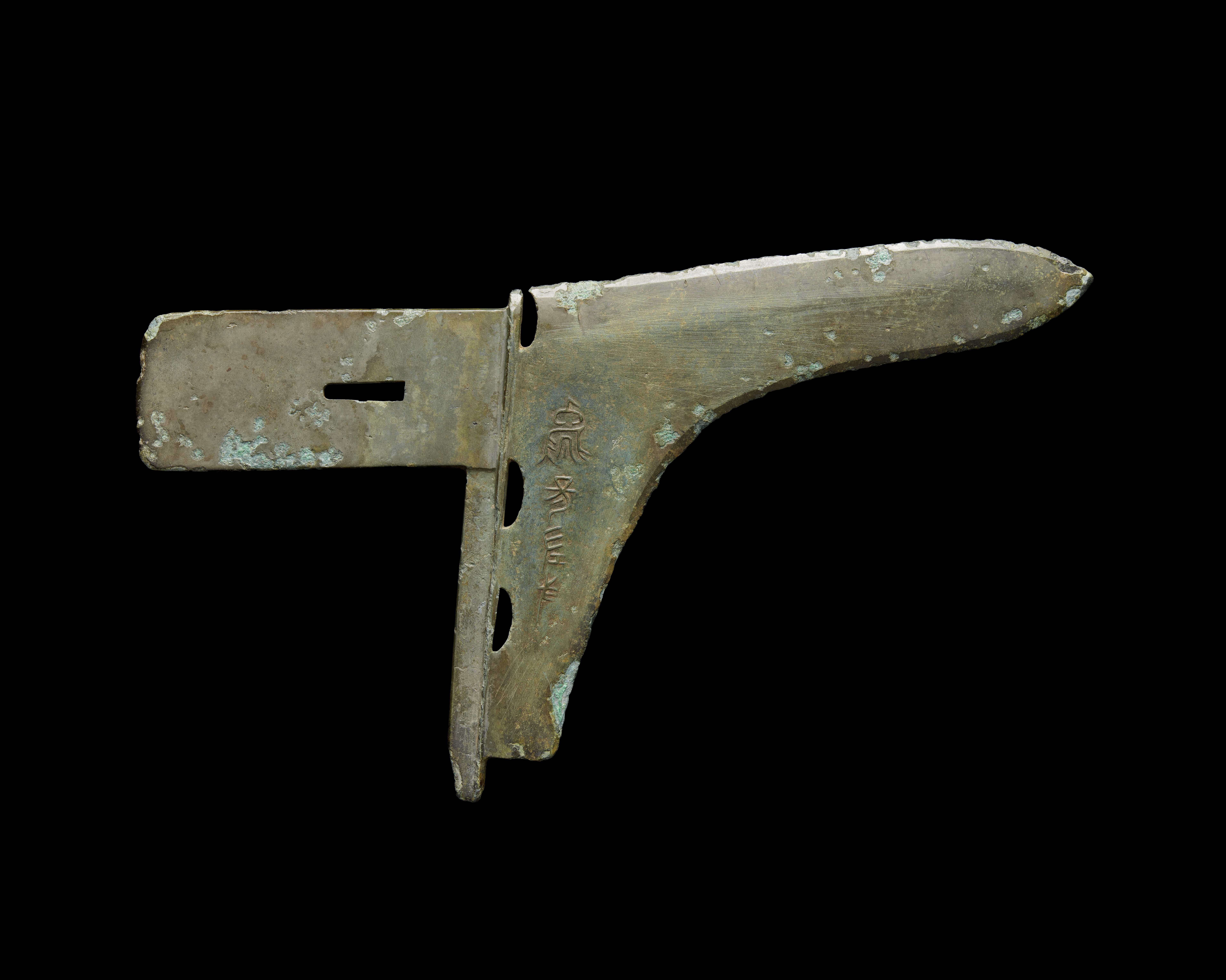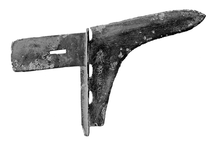 TILLÄGG: Dolkyxa (ge) daterad till Östra Zhou dynastin (770-256 f.v.t.). Fyndplats Shandong provinsen. Dolkyxor (ge) började att användas under Shang dynastin. Under Han dynastin uppstod en annan typ av dolkyxa (ji). Båda typerna användes av infanteri, men även av körsvennarna till de hästdragna stridsvagnarna.