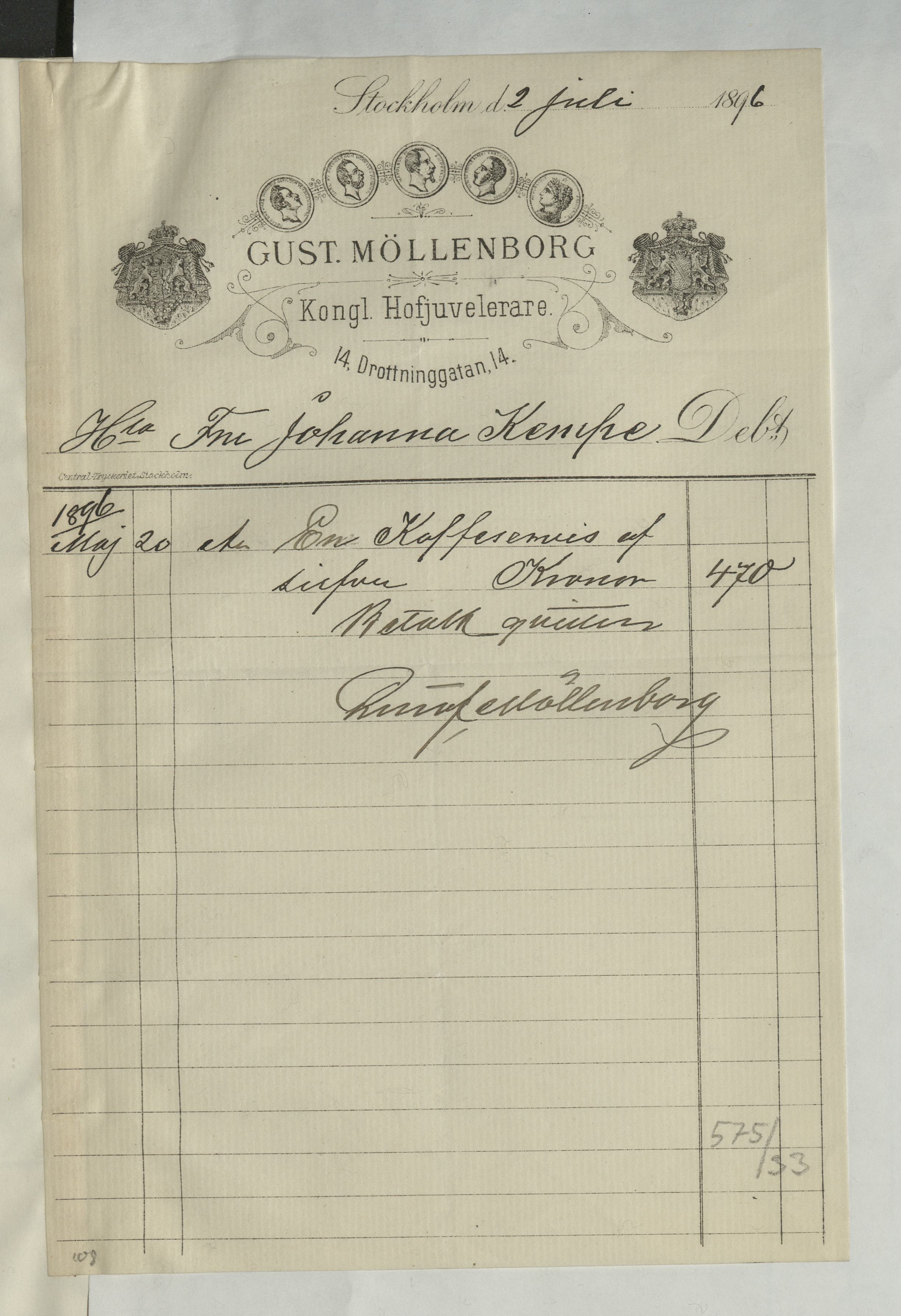Kvitto från Gustaf Möllenborg, Juvelerare