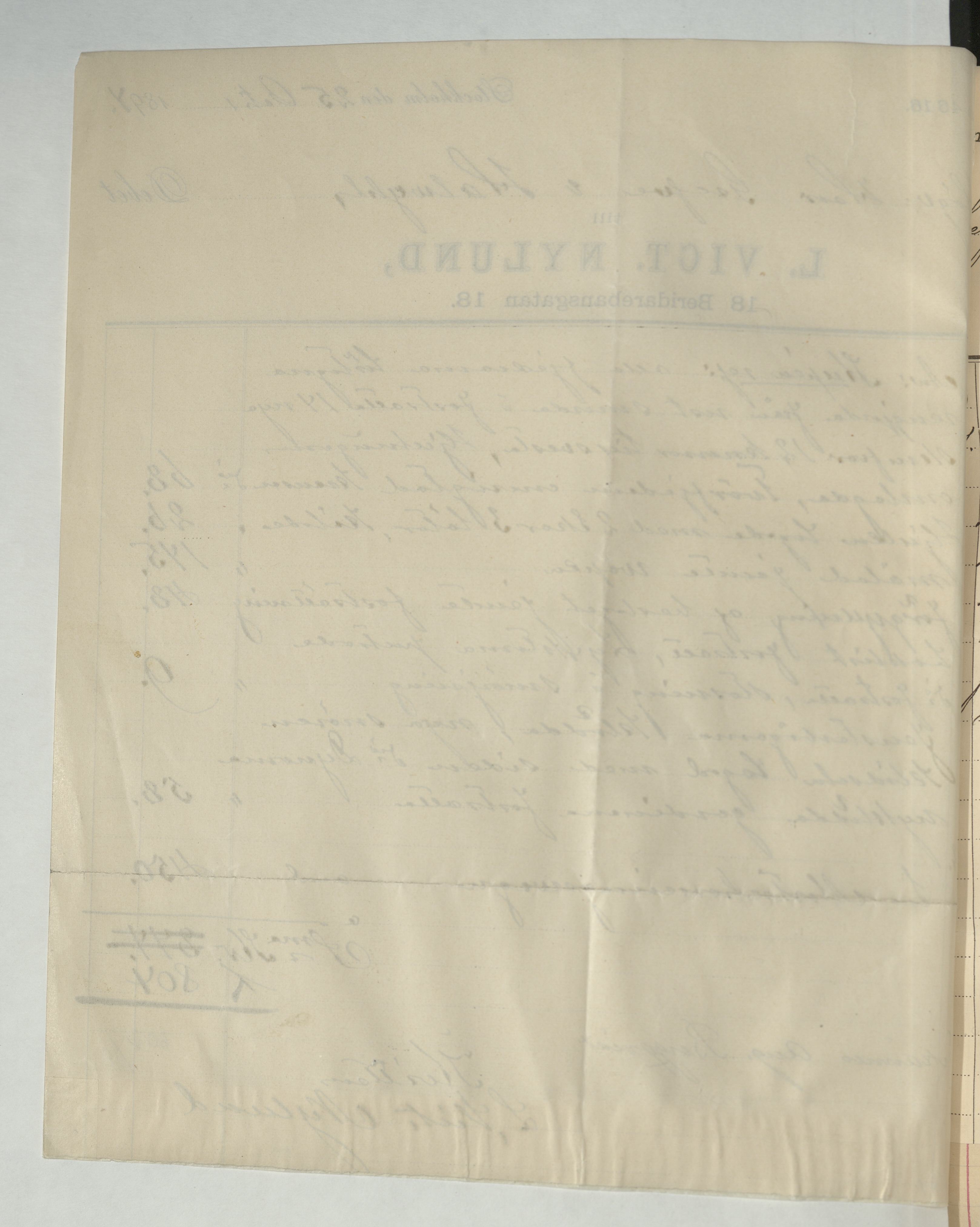 Kvitto från Victor L. Nylund, Sadelmakare, 1894