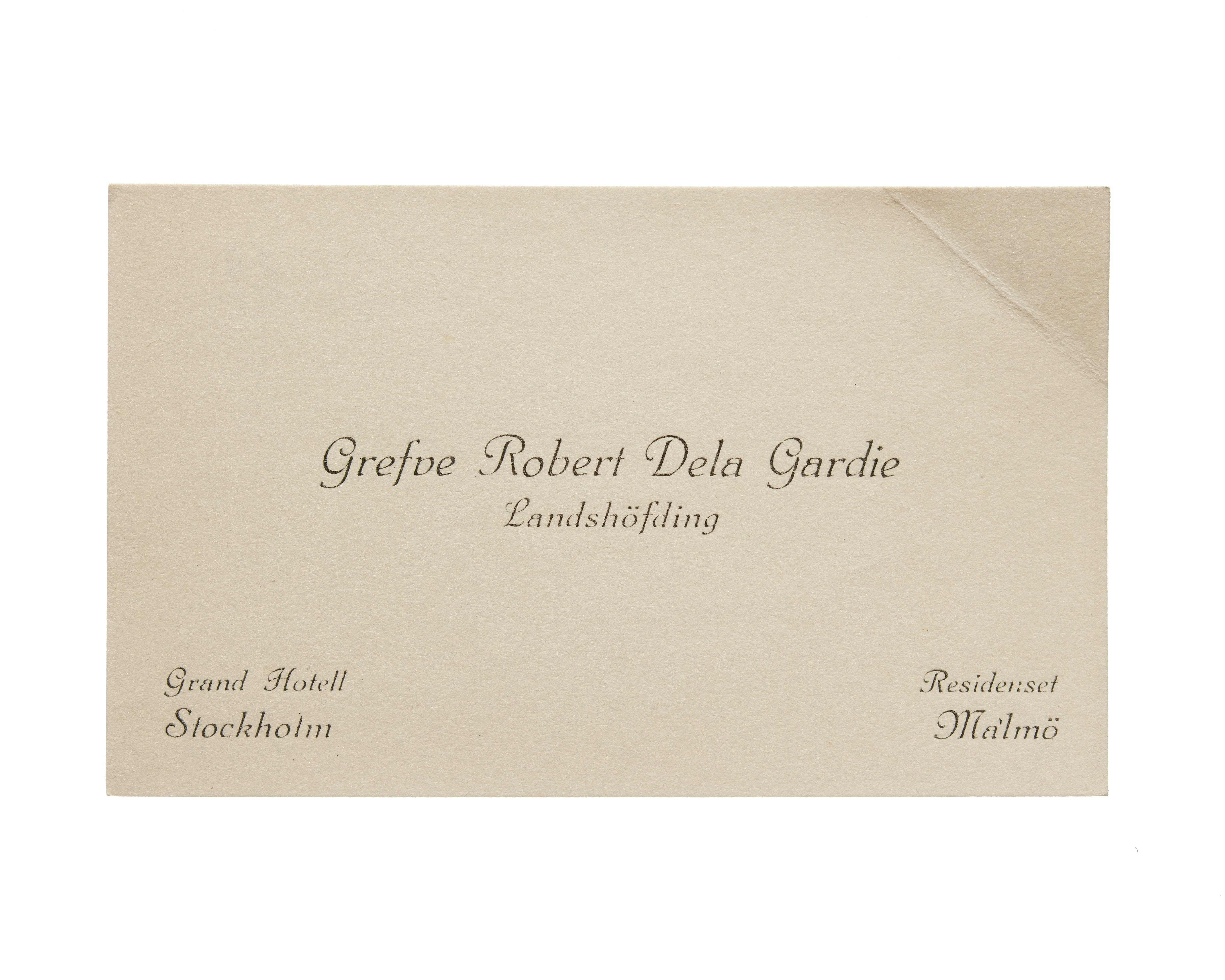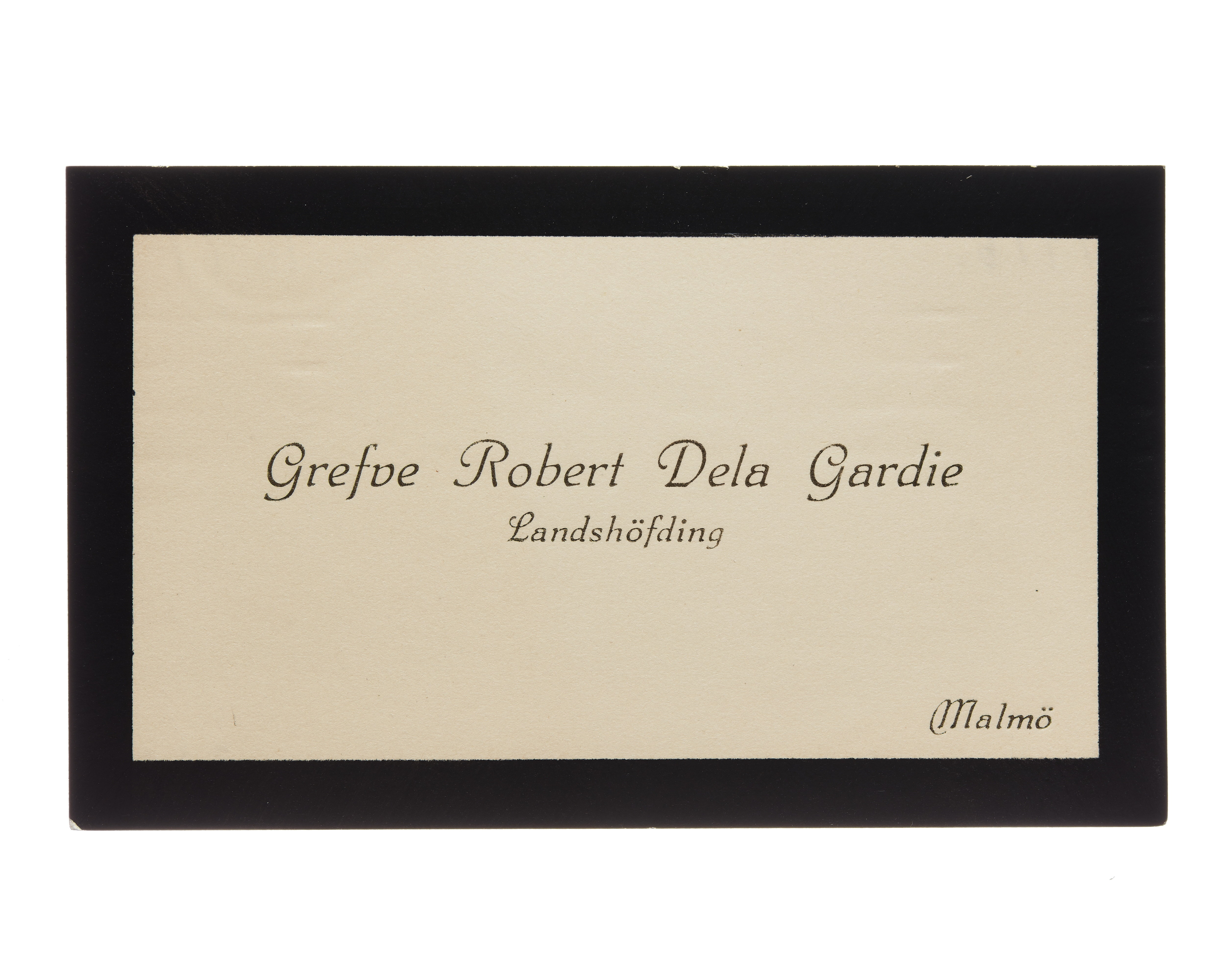 Visitkort från Greve Robert De la Gardie, Landshövding