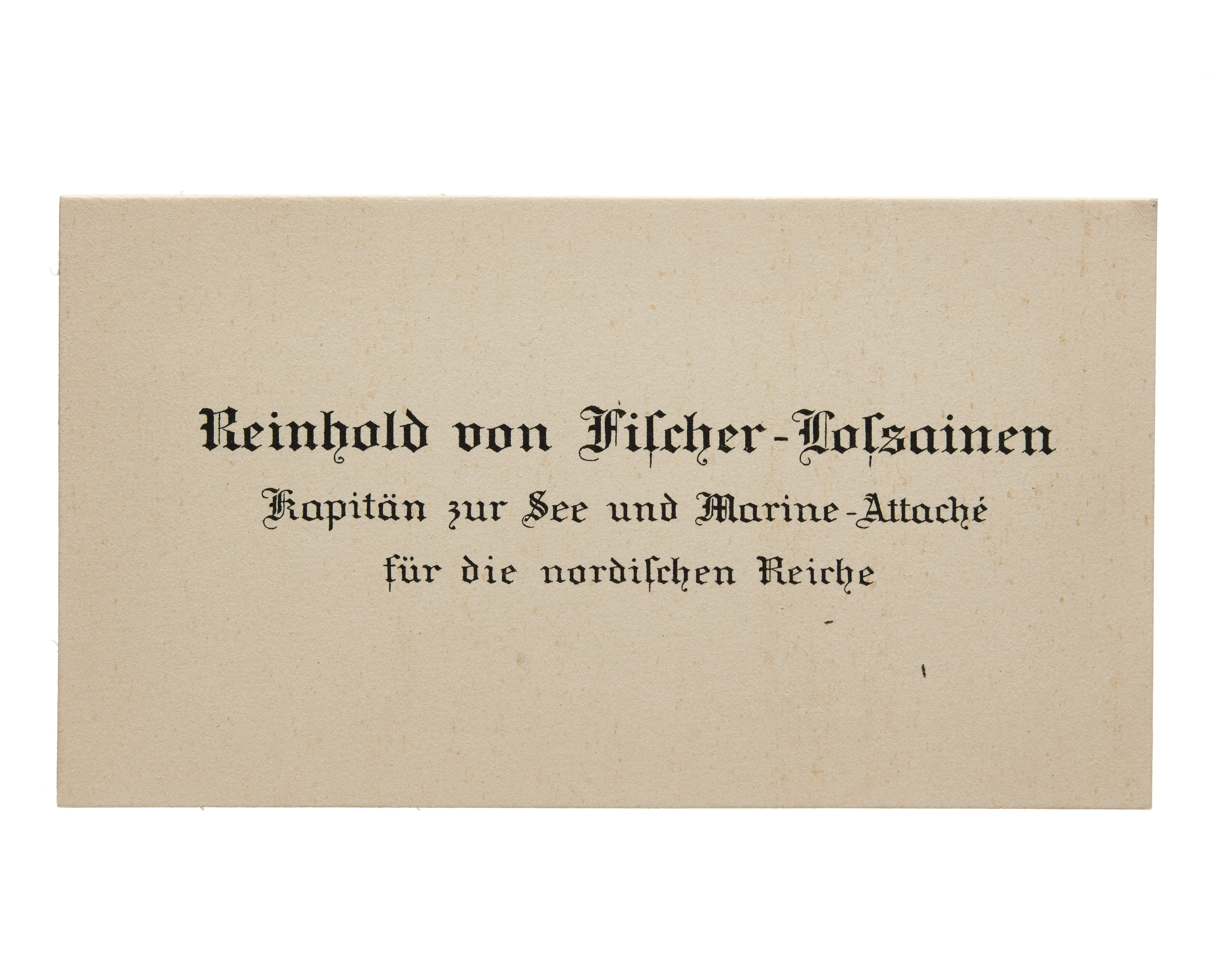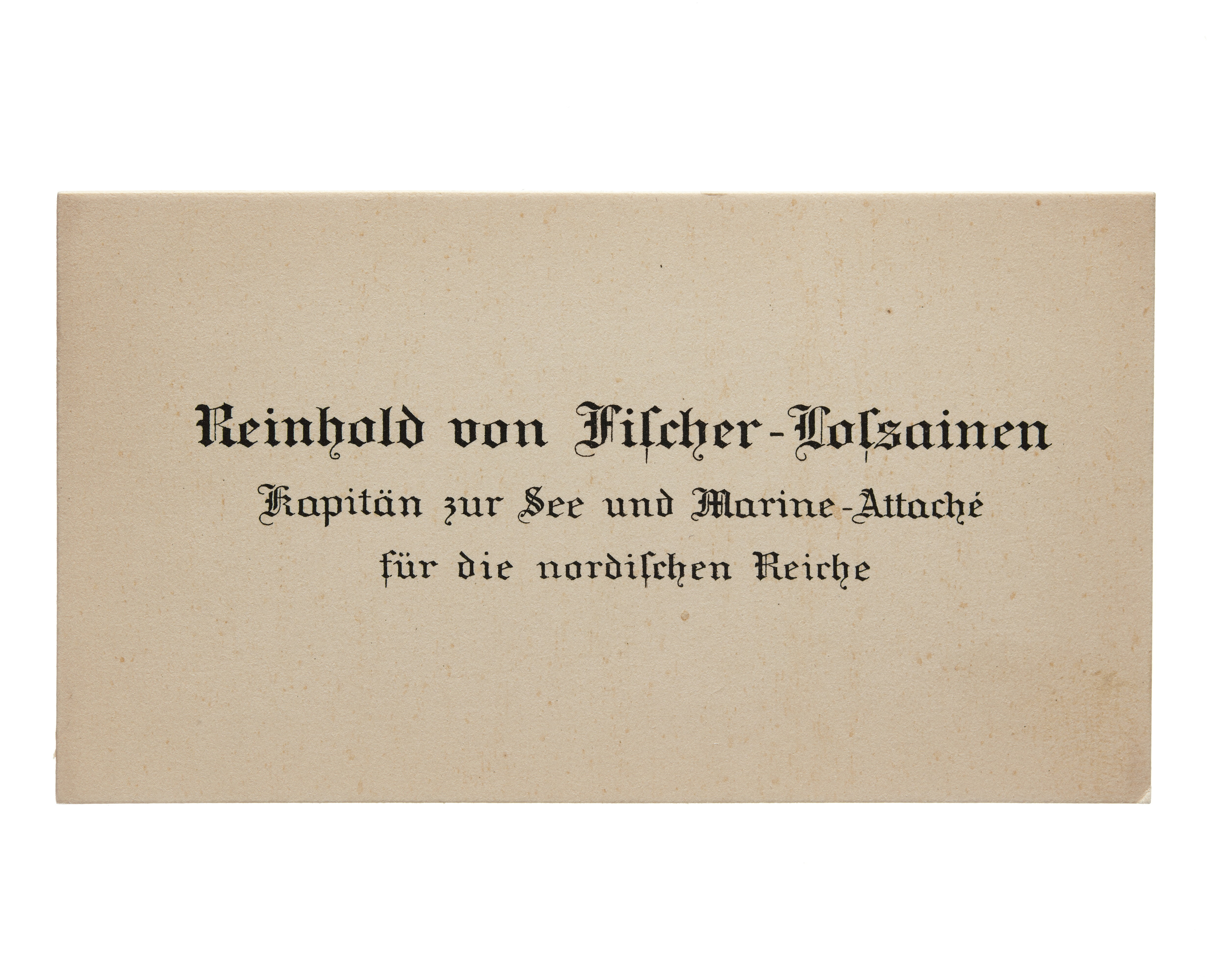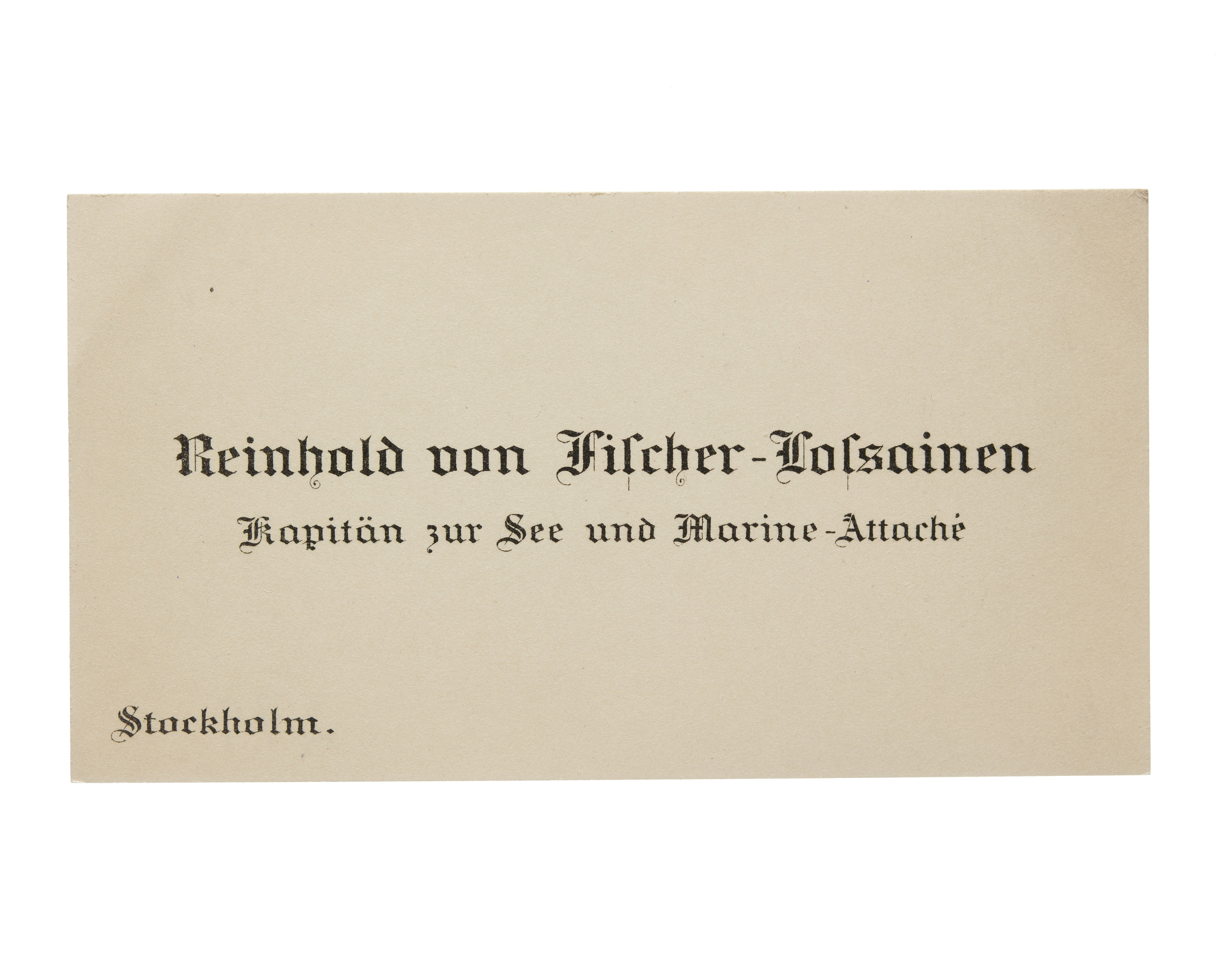 Visitkort från Reinhold von Fischer-Lossainen, Kapitän zur See und Marine-Attache fur die nordischen Reiche.