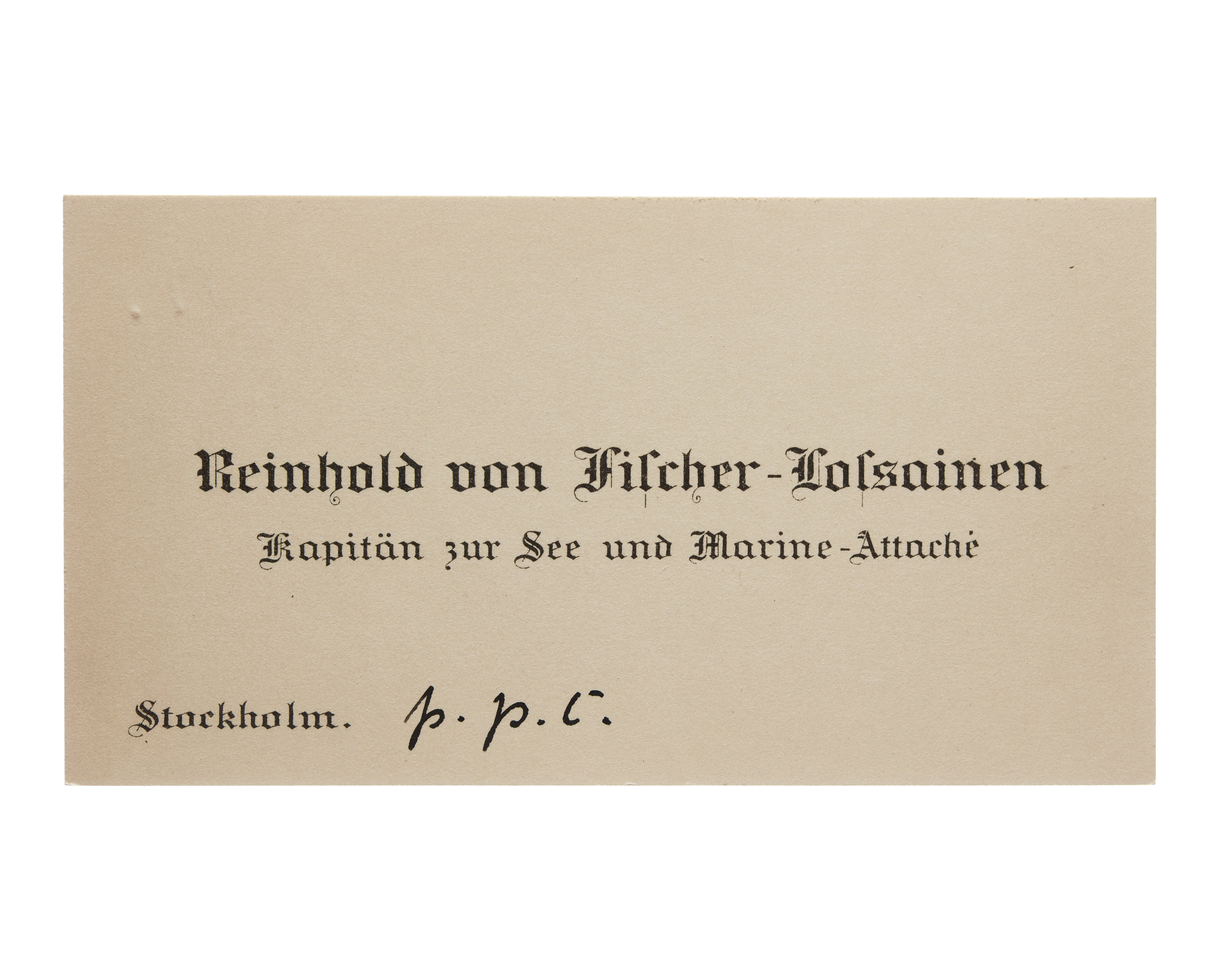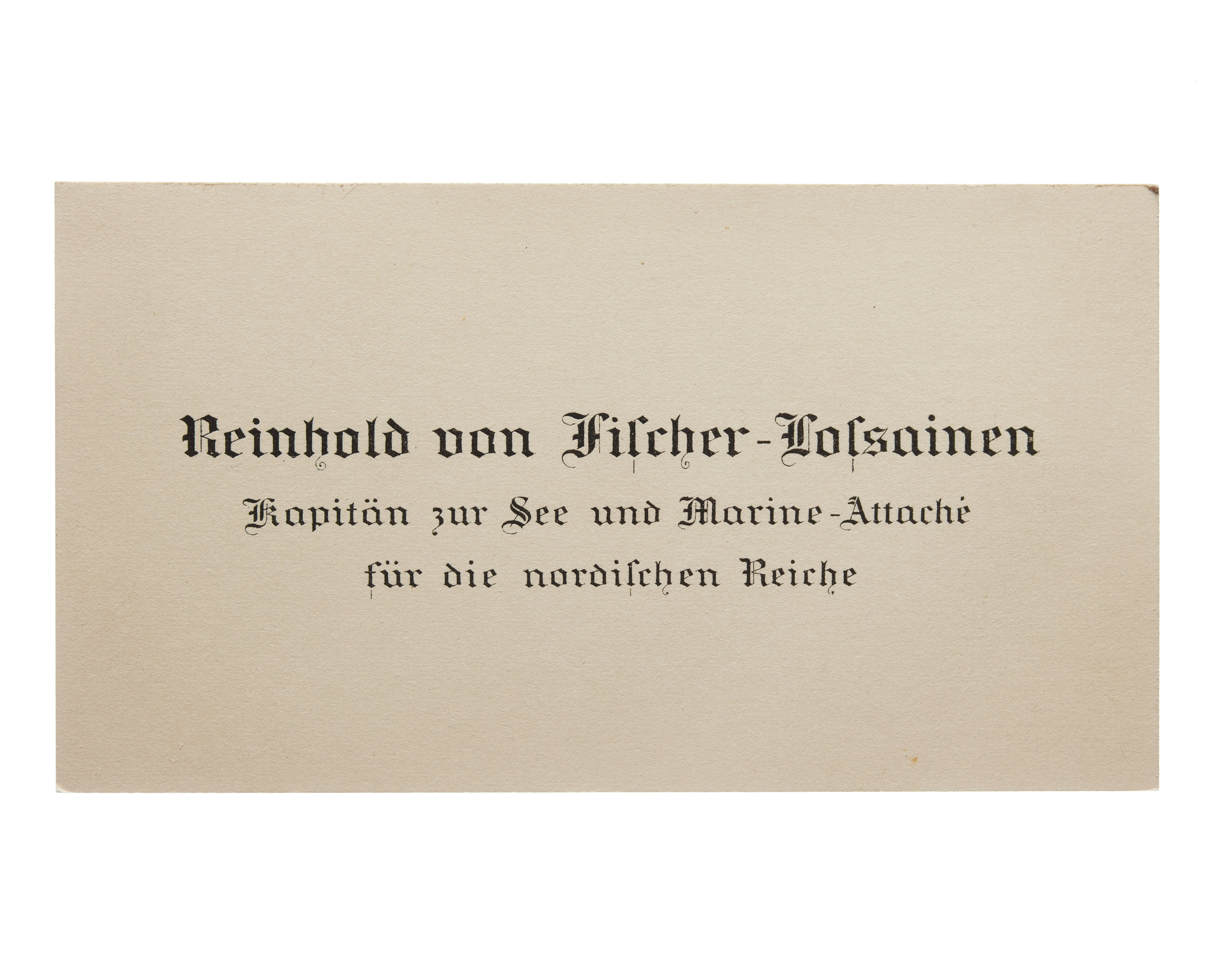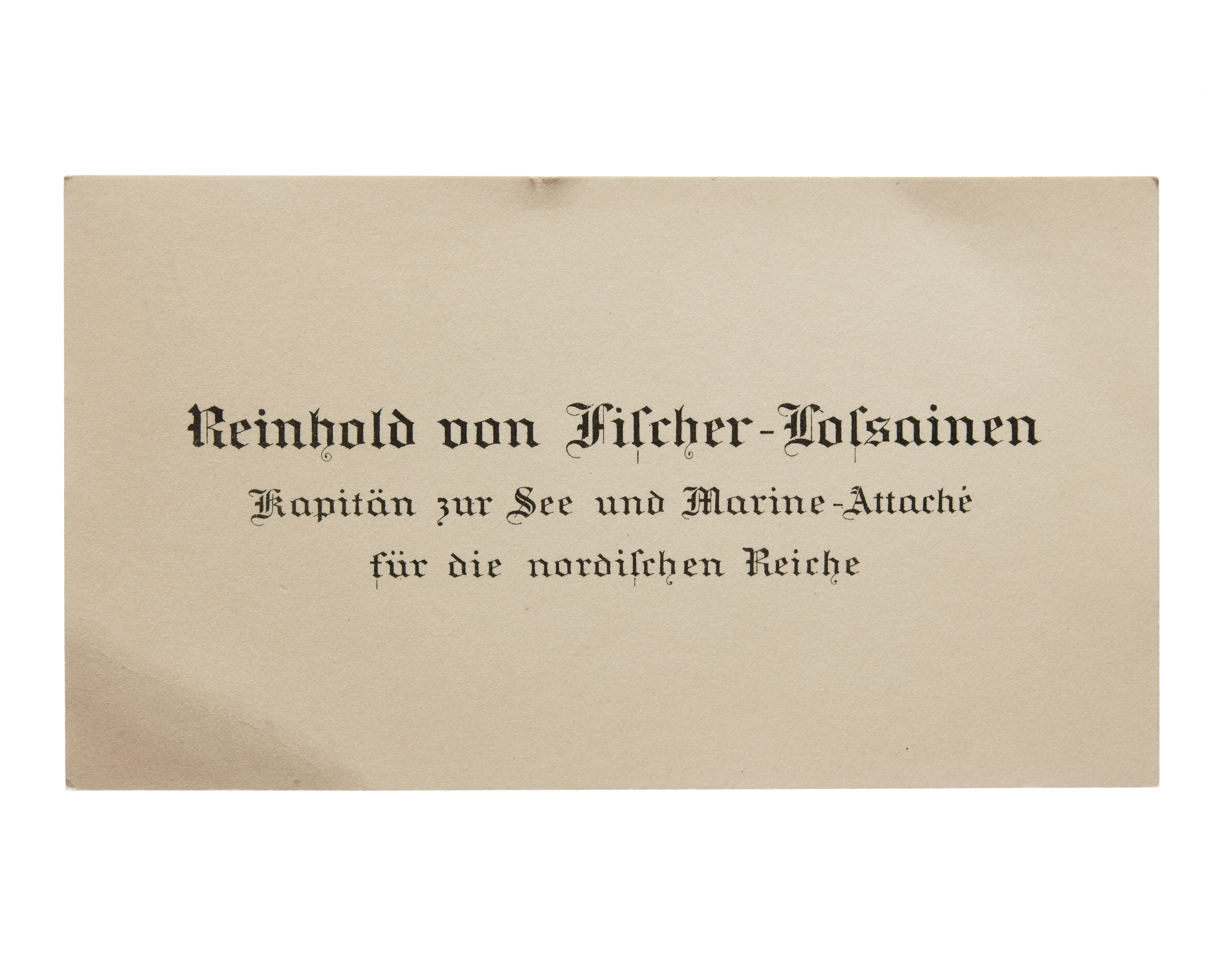 Visitkort från Reinhold von Fischer-Lossainen, Kapitän zur See und Marine-Attache fur die nordischen Reiche.