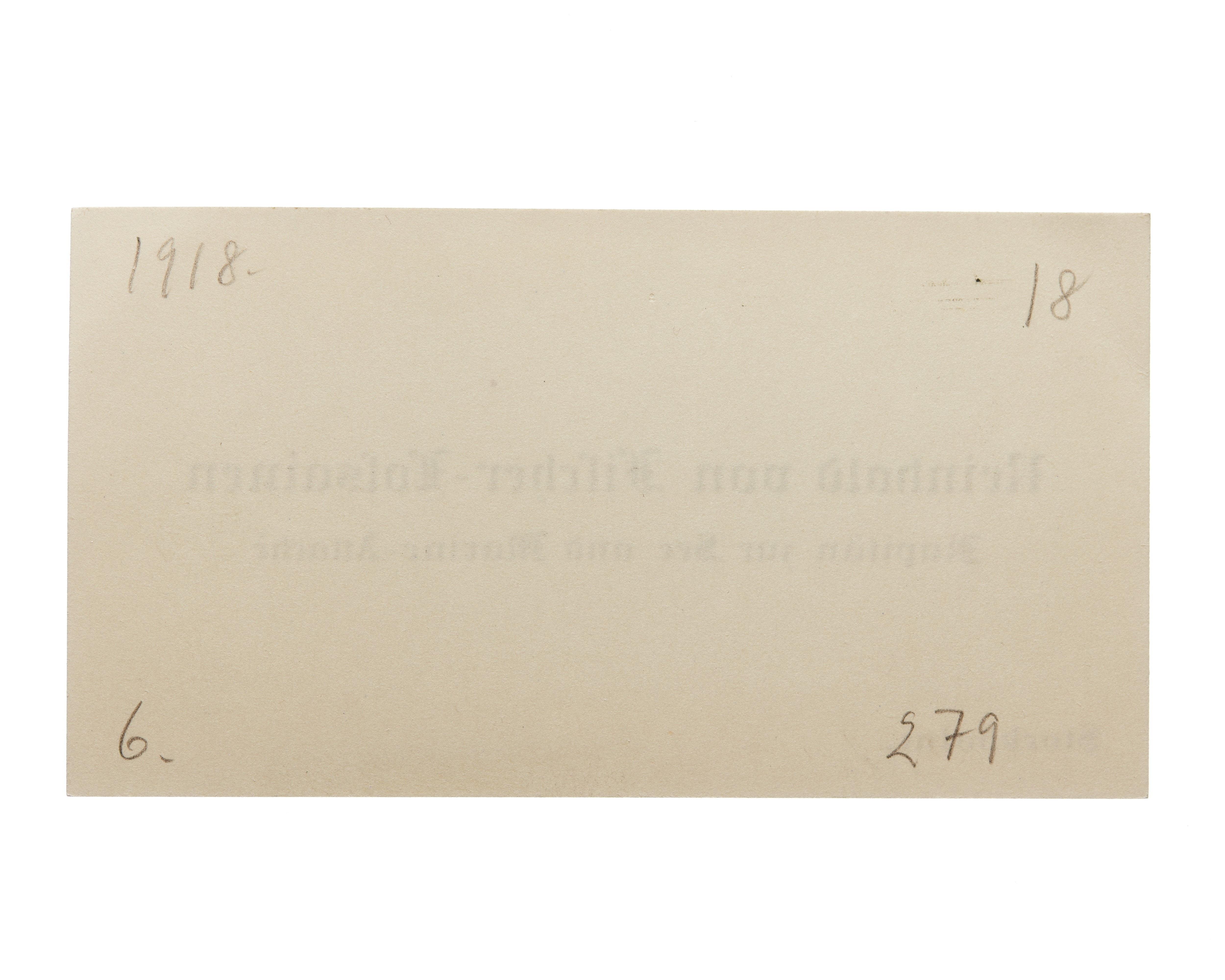 Åtta visitkort från Reinhold von Fischer-Lossainen, Kapitän zur See und Marine-Attache fur die nordischen Reiche. Första kortet daterat 1916. Andra kortet daterat 1916. Tredje kortet är utan datum. Fjärde kortet daterat 1917. Femte kortet är utan datum. Sjätte kortet daterat 1918. Adress (nedre vänstra hörnet) Stockholm. Sjunde kortet daterat 1919. Åttonde kortet daterat 1919.