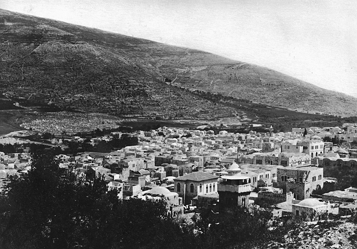 Fotografi. Vy över Nablus och berget Ebal.