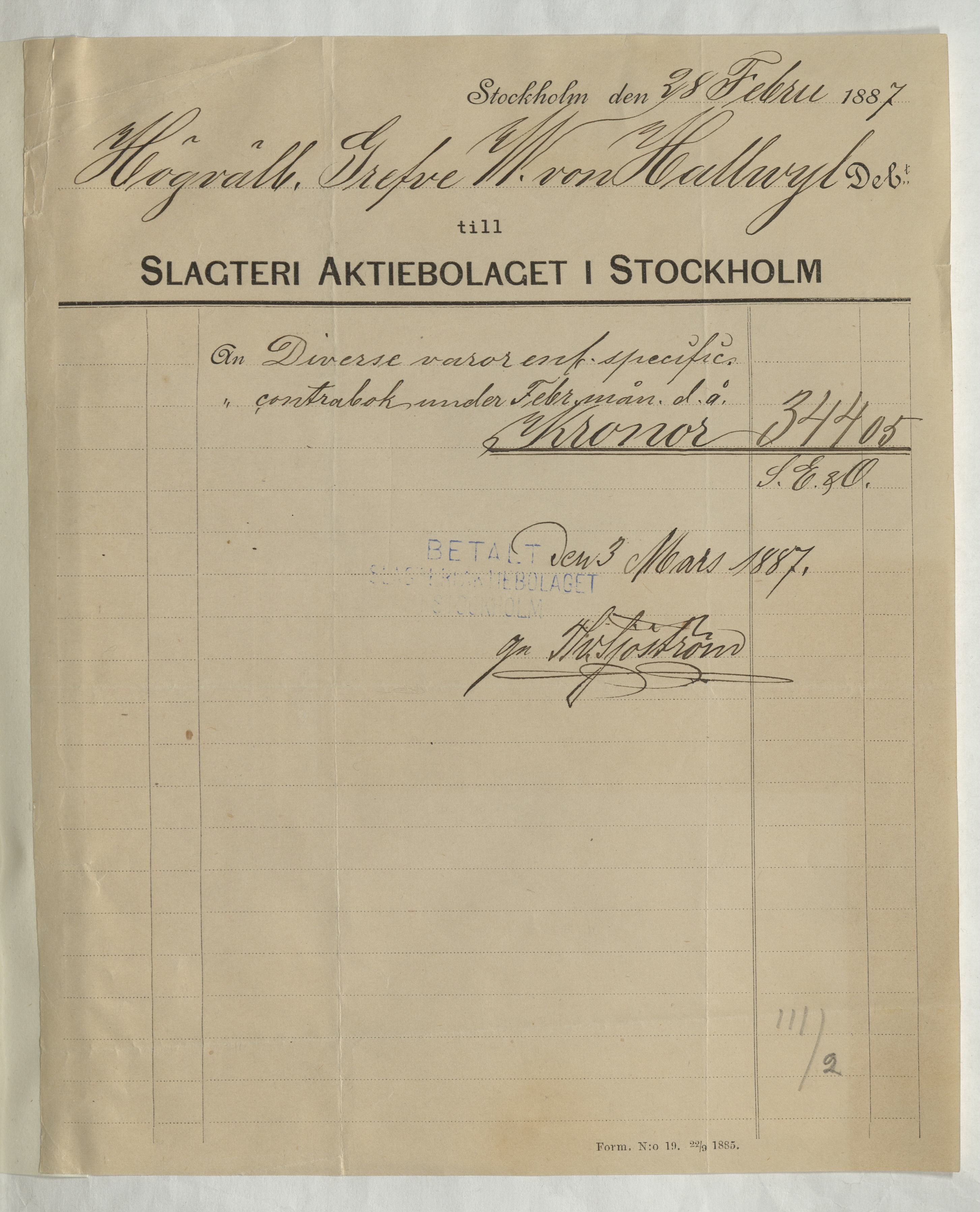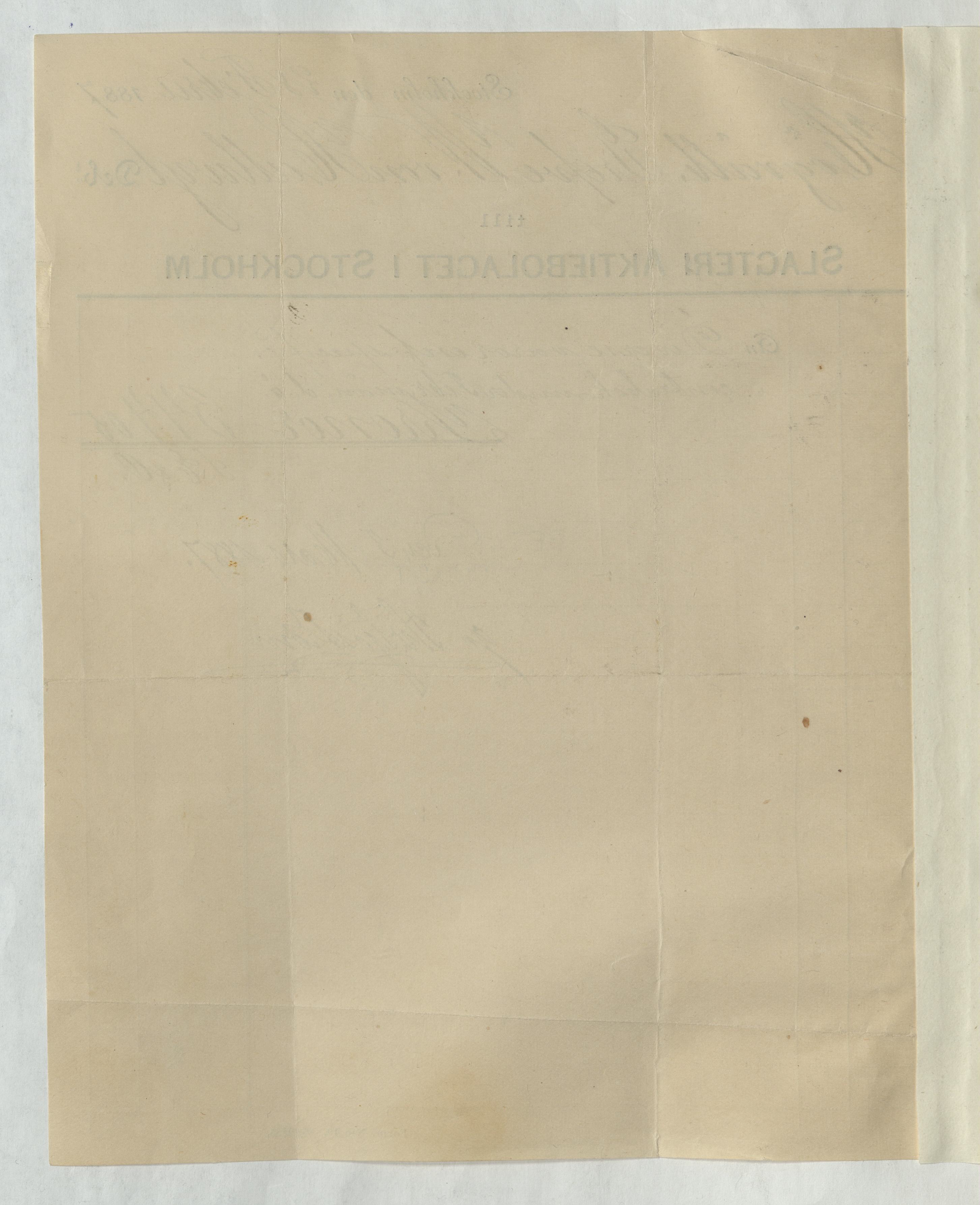 Kvitto från Slagteri Aktiebolaget i Stockholm