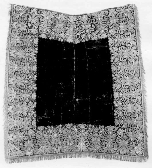 - do. do. (Hästtäcke af blått sammet med en bred bord af slfver och silke, perlstickarearbete, samt silfverfransar på tre sidor.)