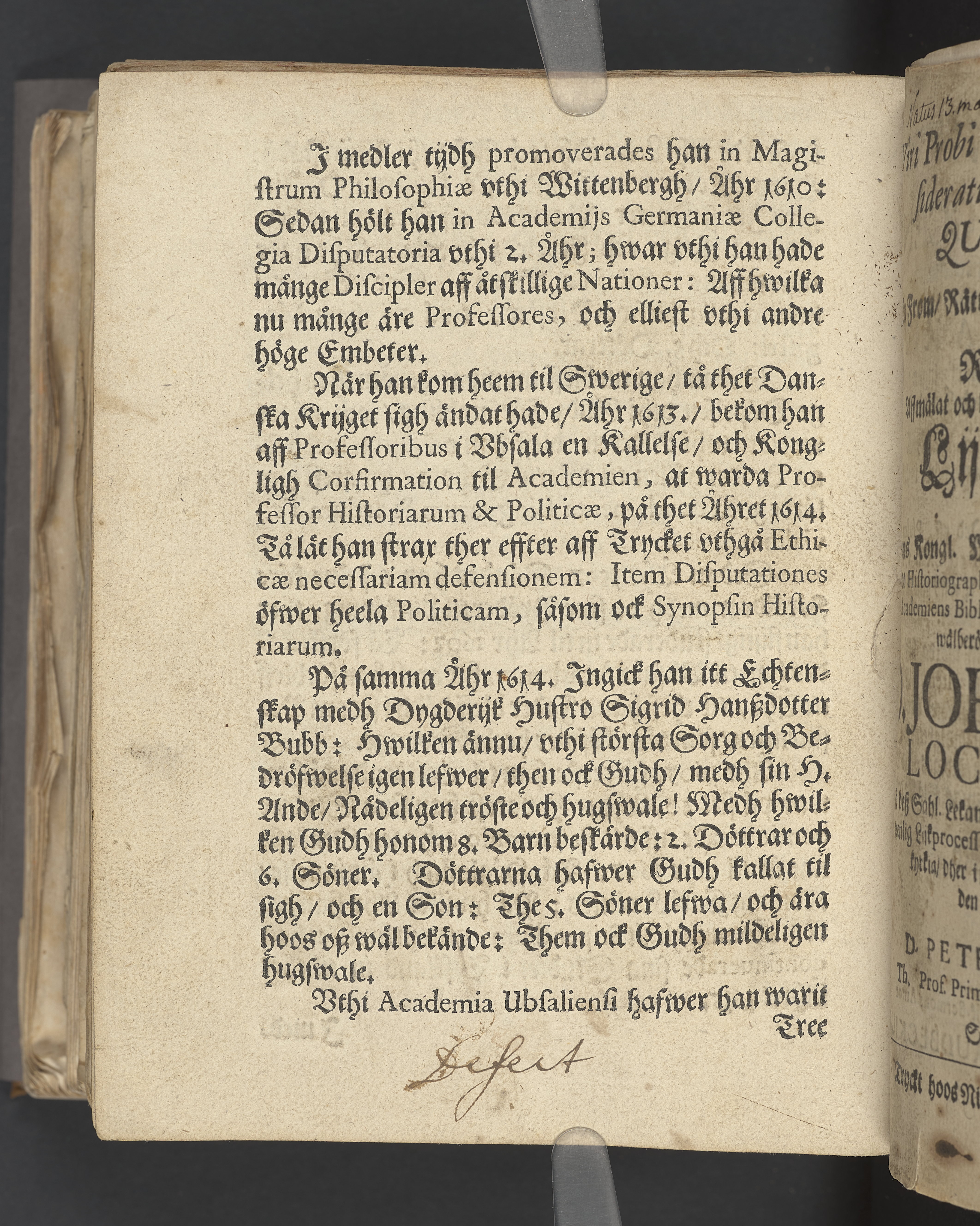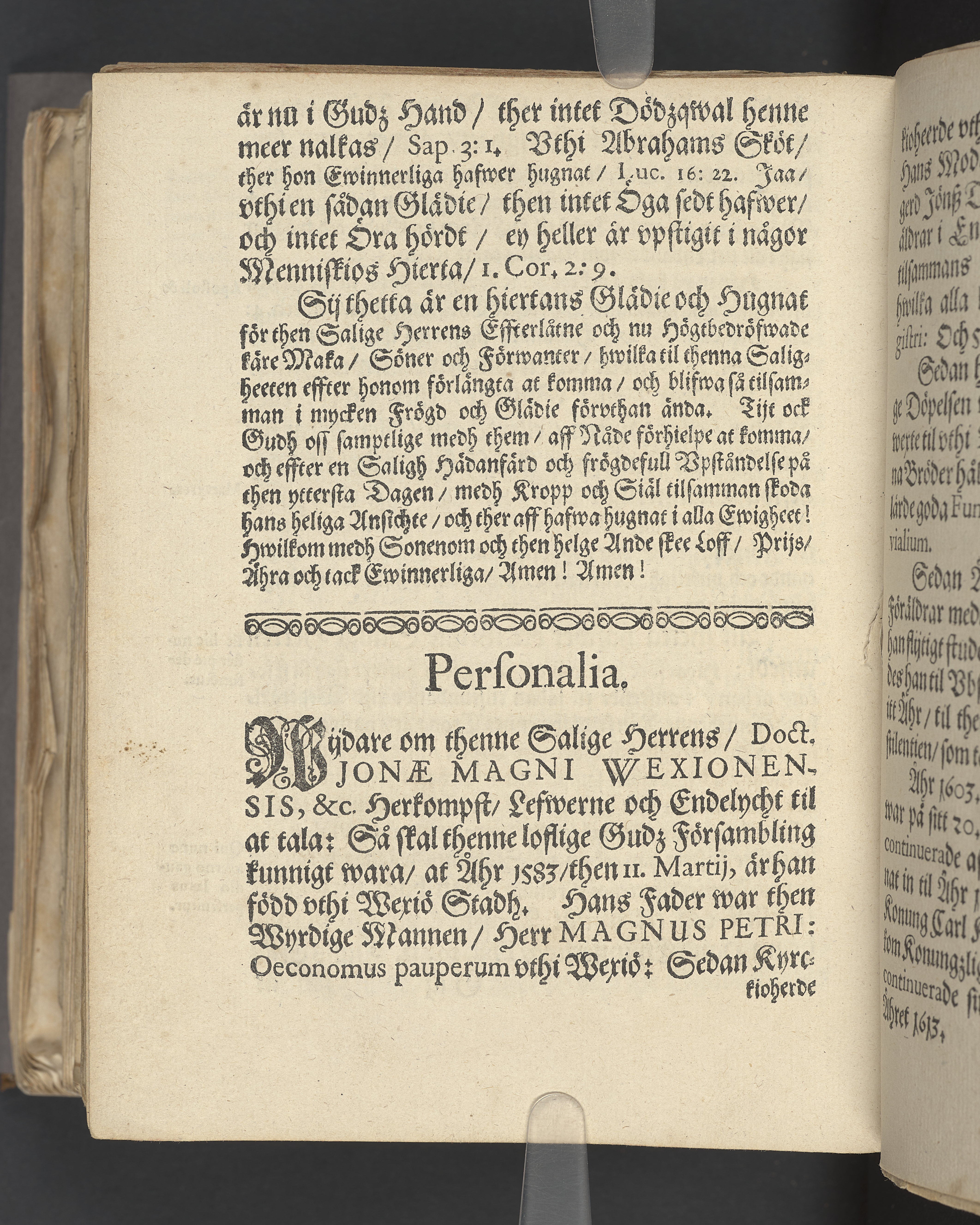 Begravningen av Jonas Magni Wexionensis (Omnämnd på/i)