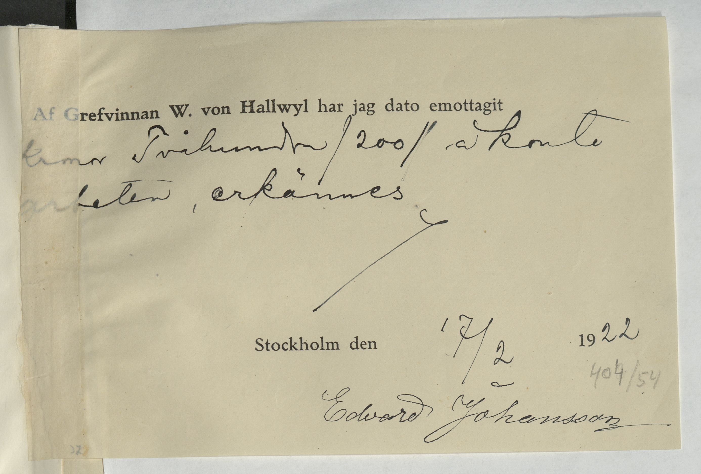 Kvitto från Edv. Johansson, Snickare