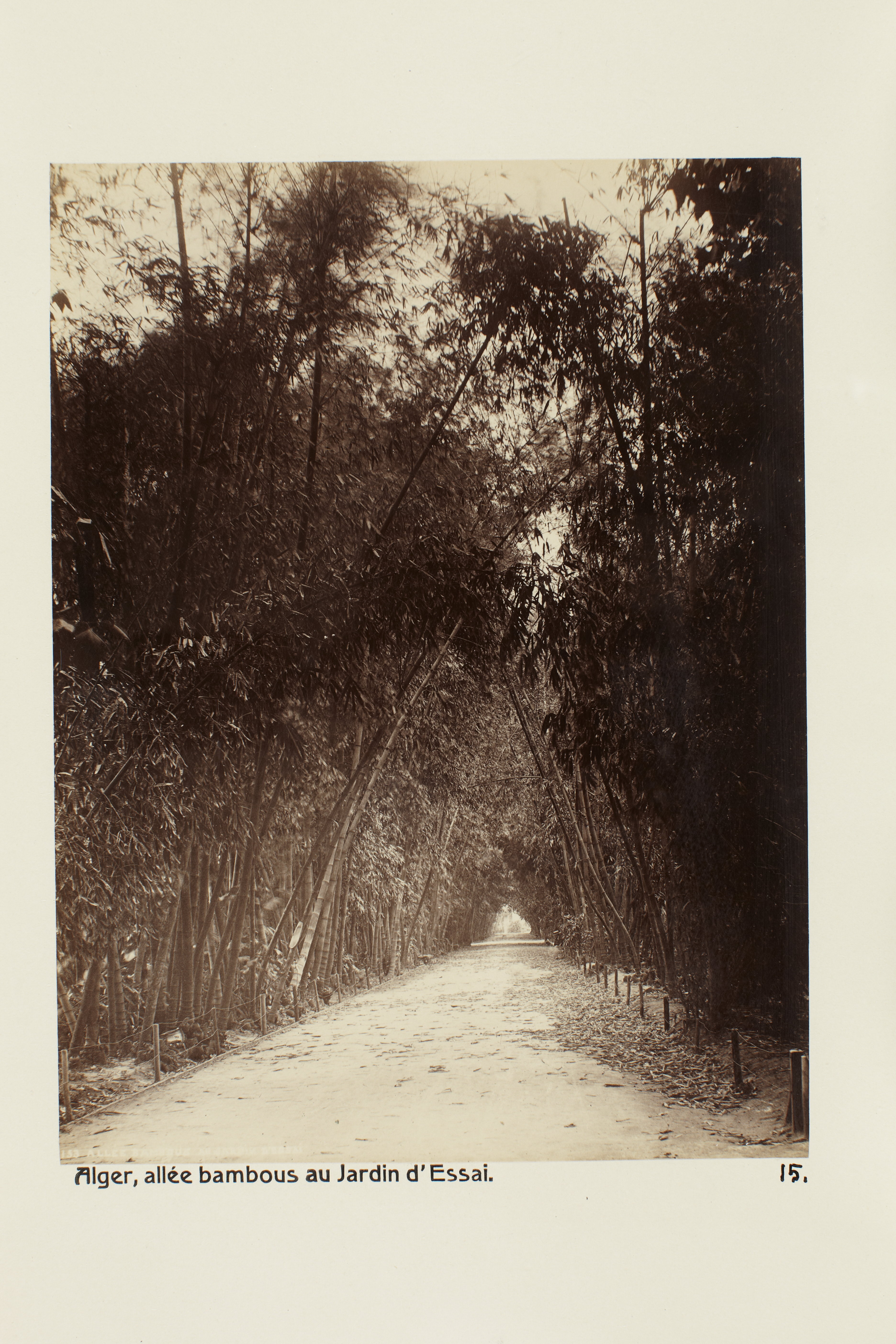 ALGER, Algeriet. Bambuallé i Essai-parken (Jardin d'Essai). Foto från resa genom Algeriet och Tunisien samt åter över Schweiz, 11 februari - 19 maj 1889. Samtliga foton i gruppen LXVI:F. är inköpta av Wilhelmina von Hallwyl i Alger, Biskra, Tunis, Constantine, Oran och Blidah vid hennes vistelse i nämnda städer tillsammans med sin make, Walther von Hallwyl, sin mor, Johanna Kempe, f. Wallis, dottern Irma samt fröknarna Caroline Pflaum och Ida Uhse. Uppgifterna kommer från fröken Ida Uhses reseanteckningar.