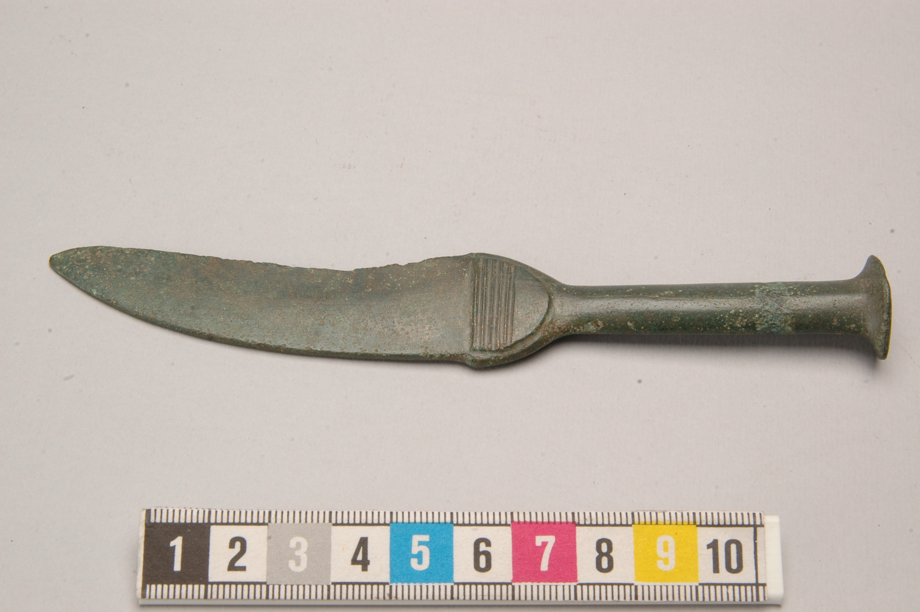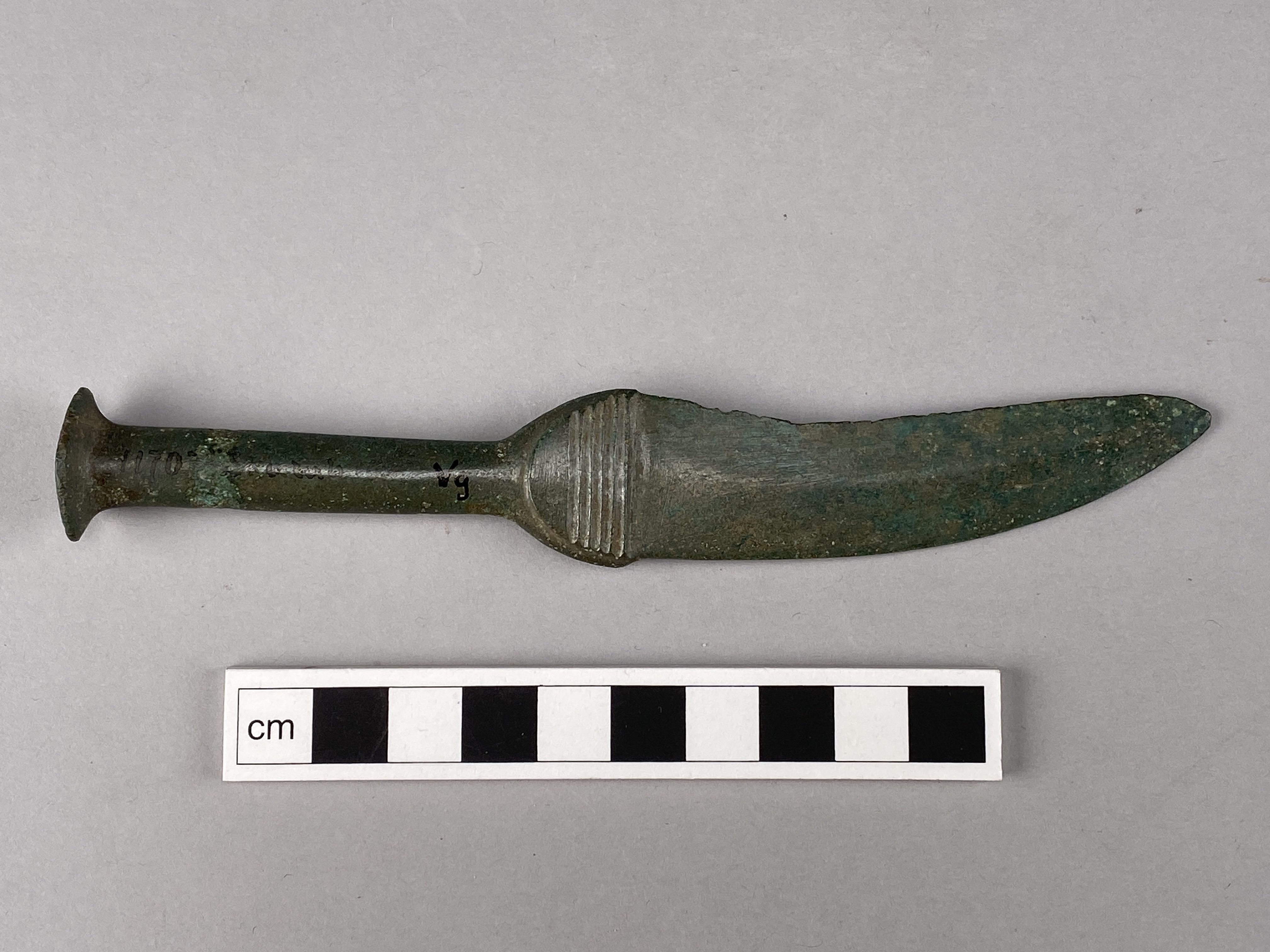 Eneggad bronskniv, ornerad.