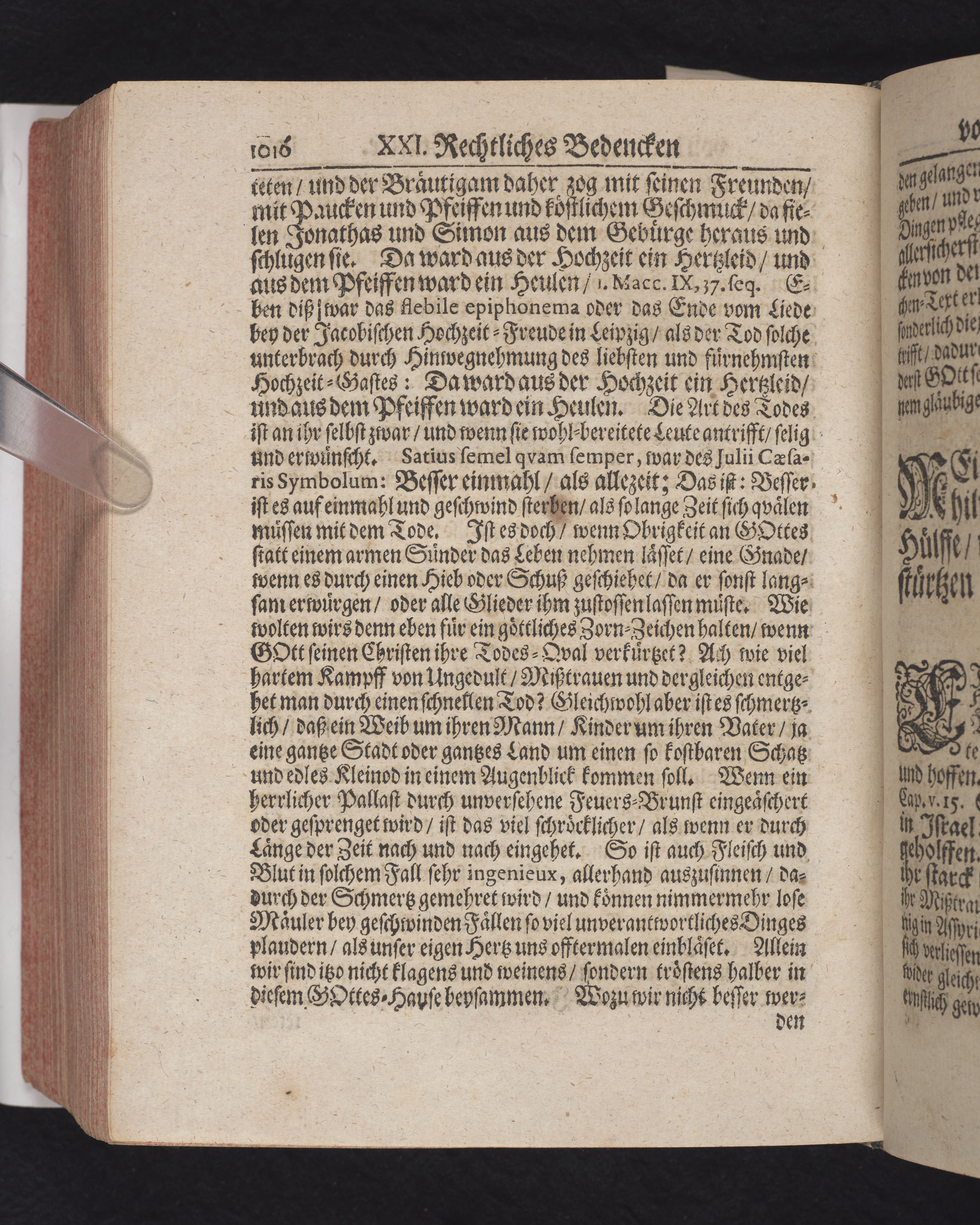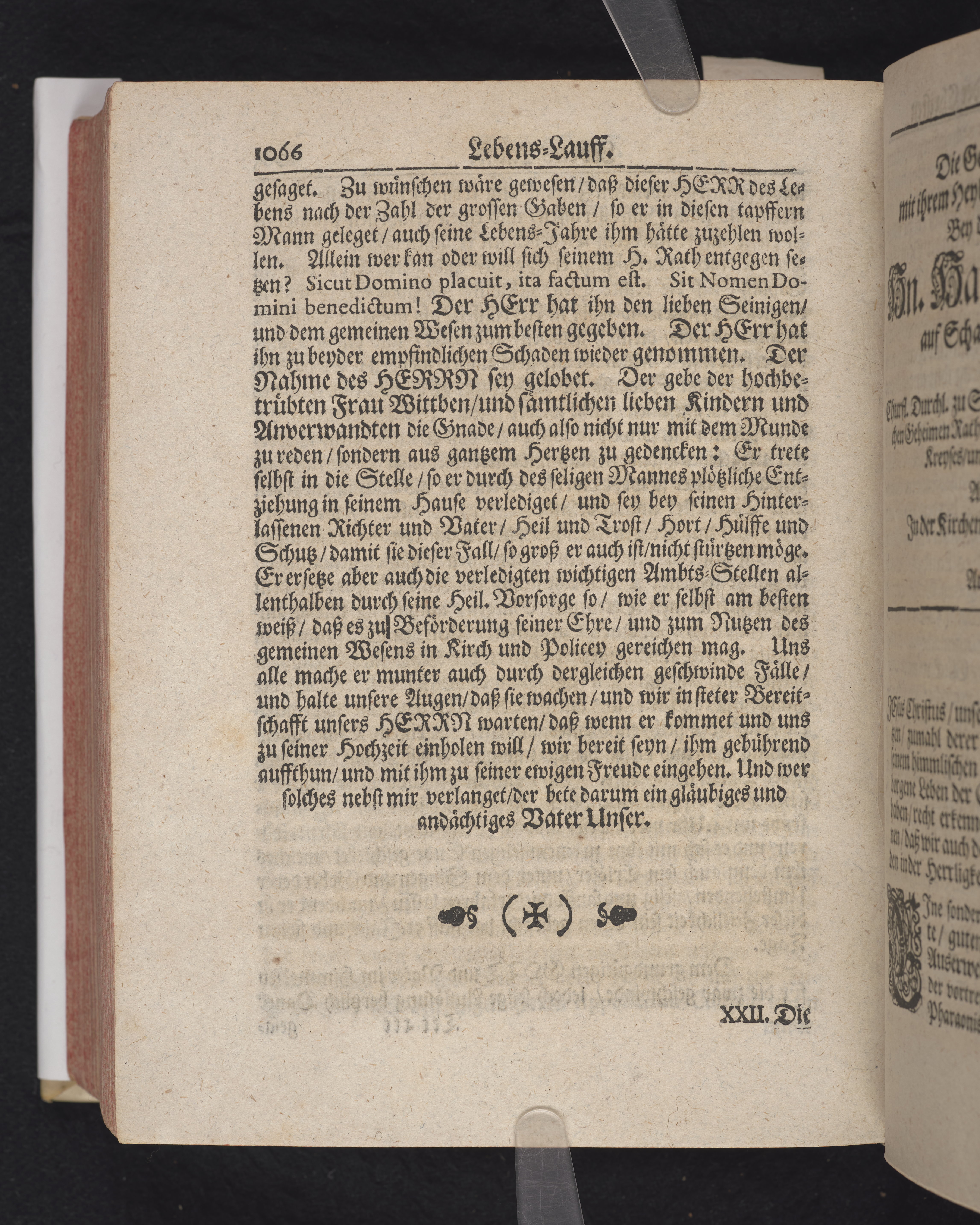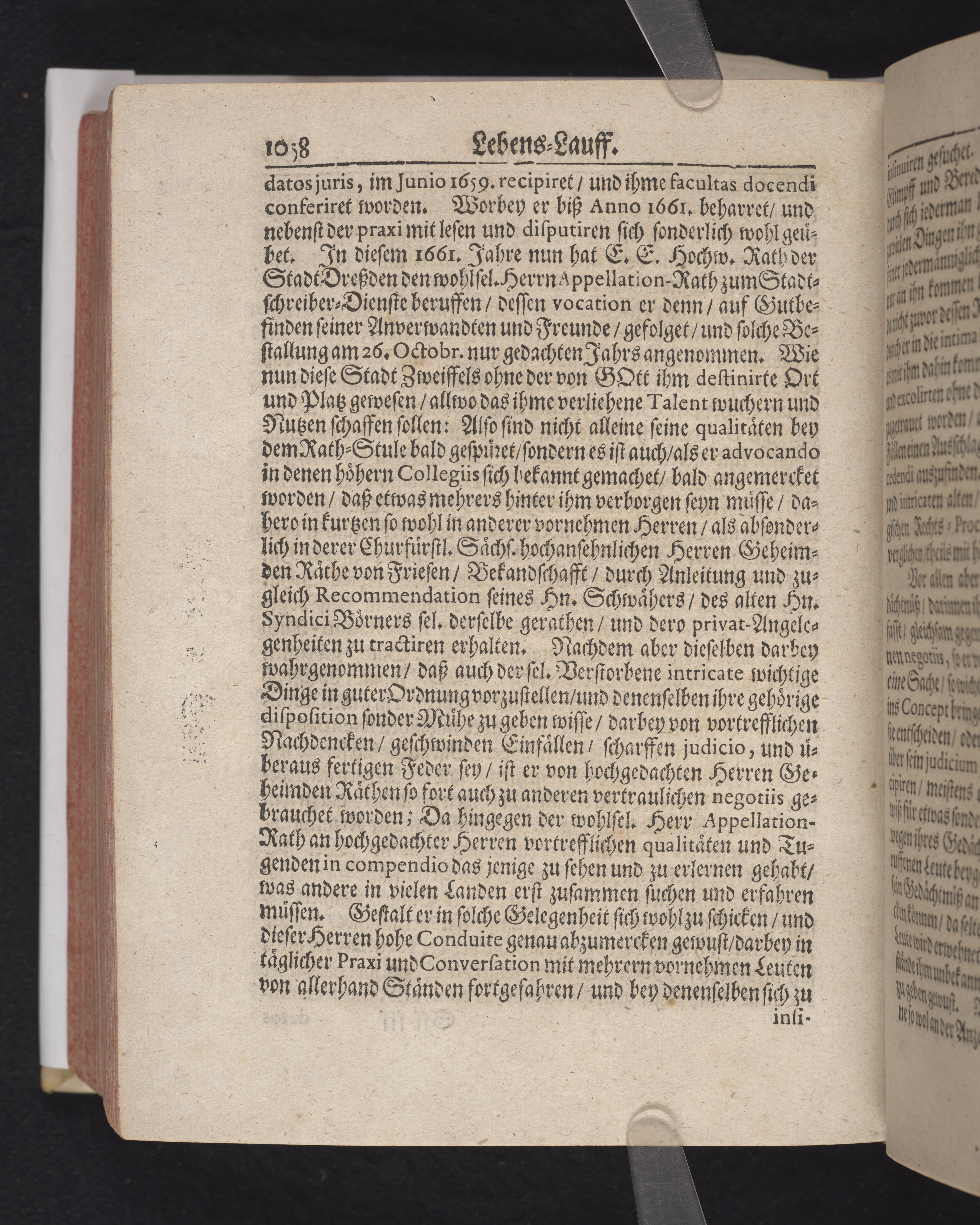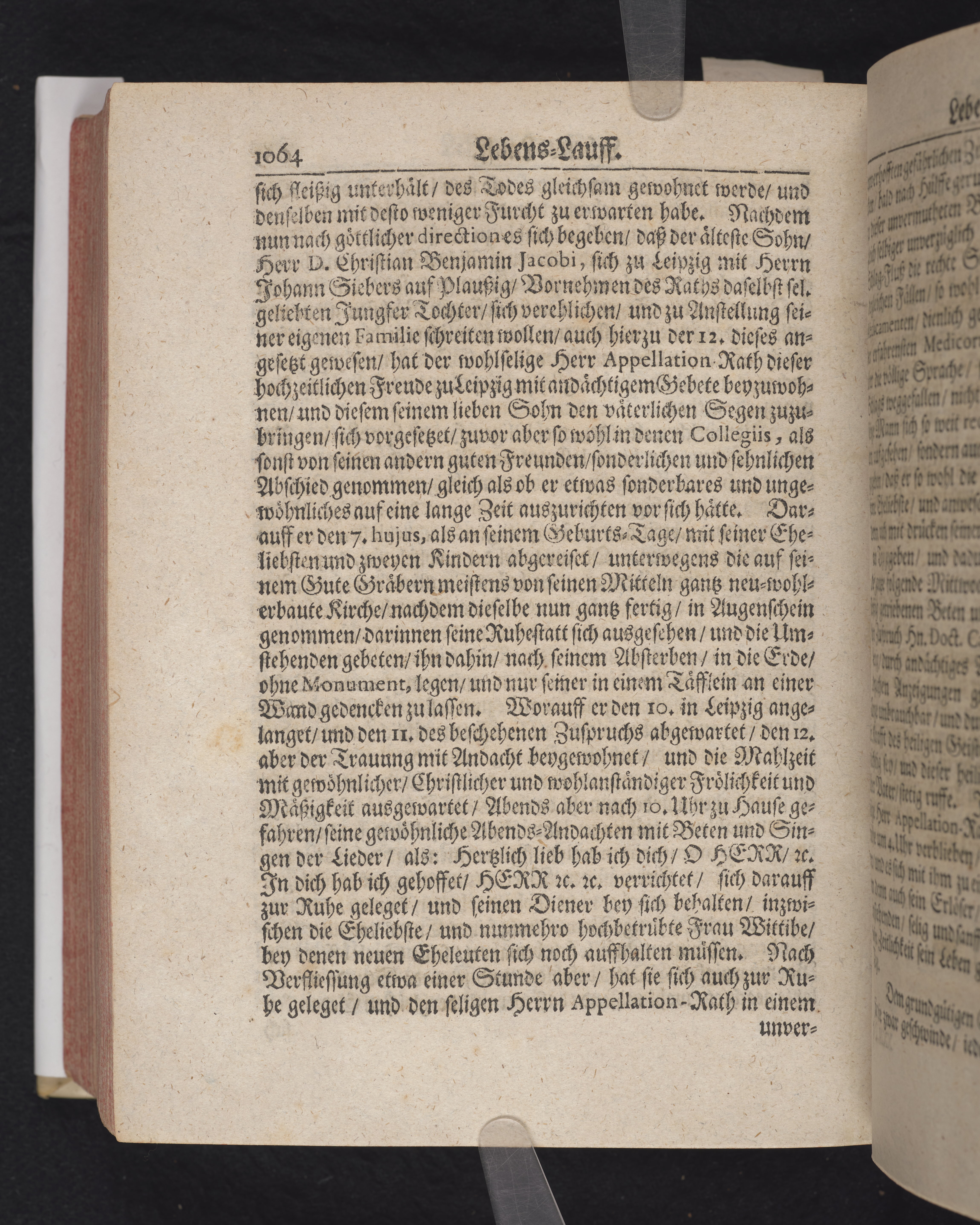 Ingår i en utgiven samling med 28 likpredikningar av Samuel Benedikt Carpzov: Grünende Gebeine, oder Leich-Predigten... Tryckt innehållsförteckning och register. Handskriven innehållsförteckning över de 28 likpredikningarna med bläck på främre försättsbladet (recto och verso).