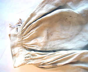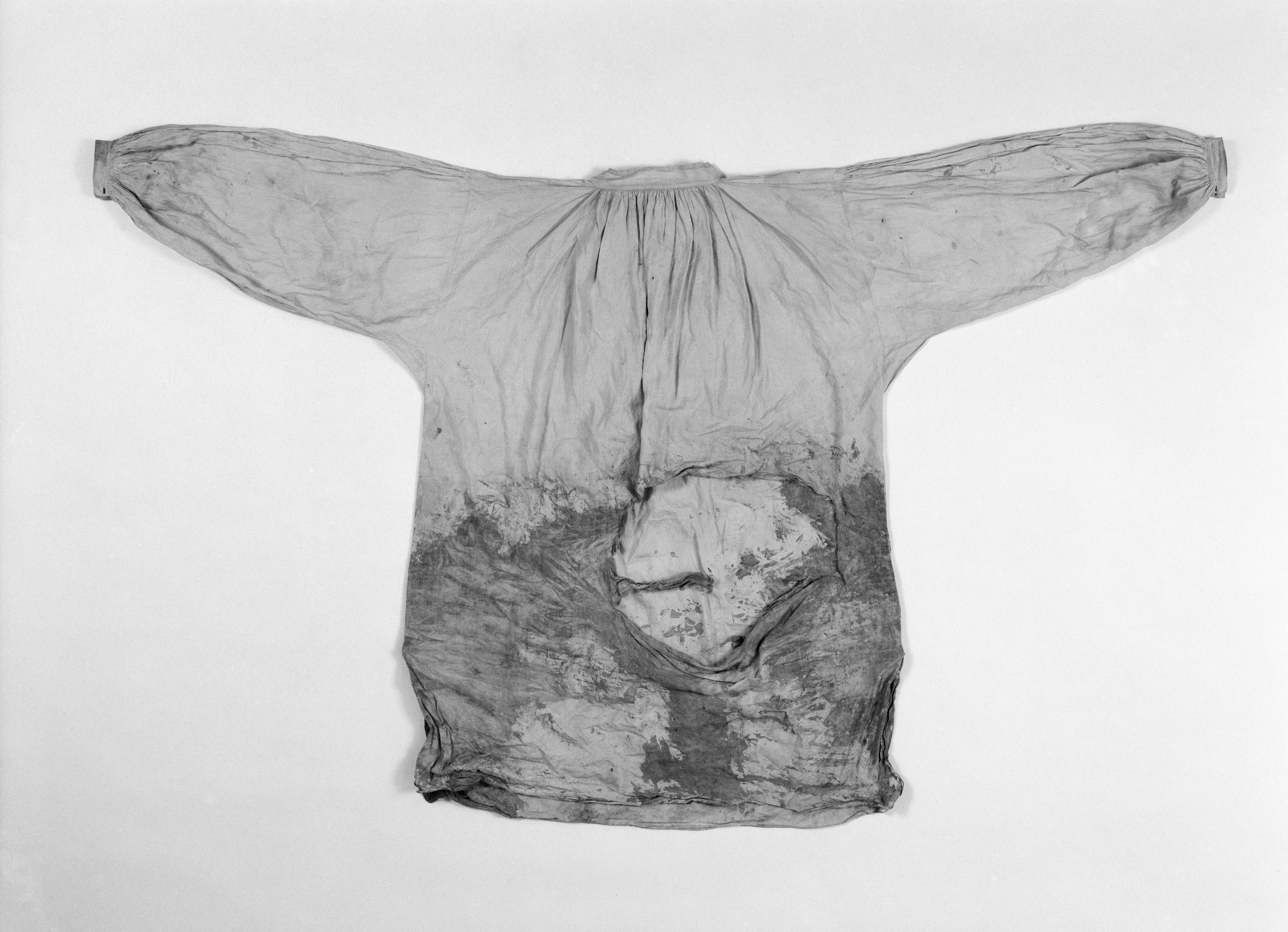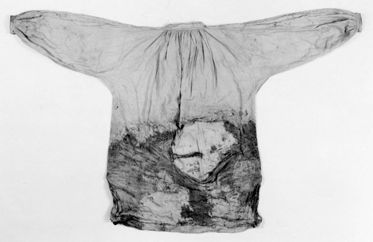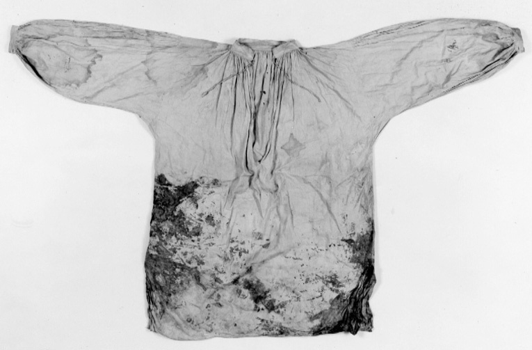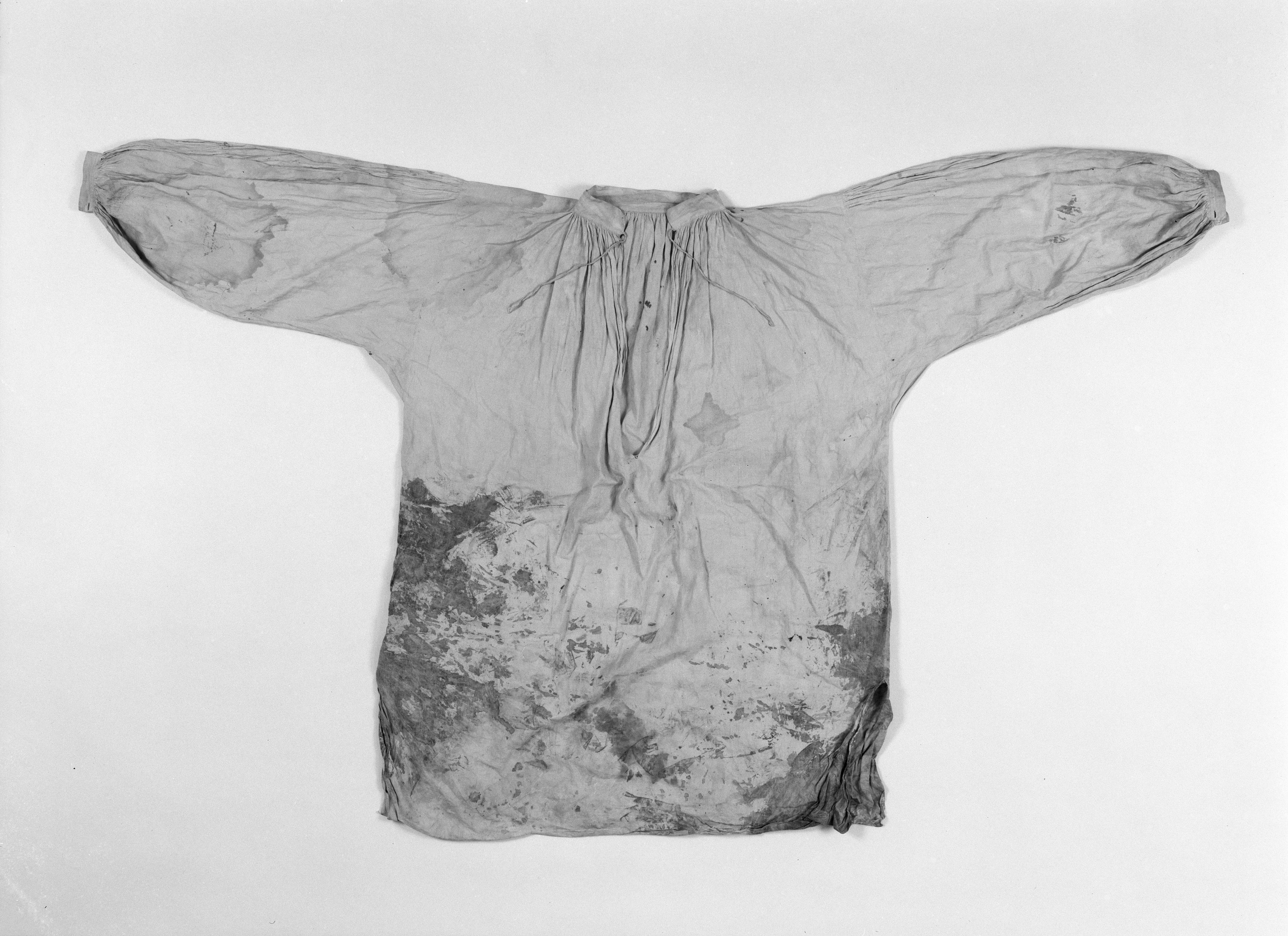 Stor, vid skjorta av vit linnelärft sydd med ett fram- och ett bakstycke med sidsömmar och med ett 300 mm högt sprund nedtill i båda sidorna. Hör till dräkt som tillhört amiralen, friherre Claes Hansson Bielkenstjerna (1615-1662), buren av honom under 1659 års sjökampanj. En 45 mm hög ståkrage samt med ett 455 mm långt sprund mitt fram. Krage och sprund knyts igen med två vita linneband. Under kragen är vidden något samlad så att det bildas små veck fram samt mitt bak. Ärmarna är långa och breda med en 20 mm bred linning vid ärmslutet samt med ett 120 mm långt sprund i sidsömmen. Ärmen knyts nedtill med två vita linneband. Ärmarnas vidd är något samlad både upptill vid axeln samt nedtill vid ärmslutet.