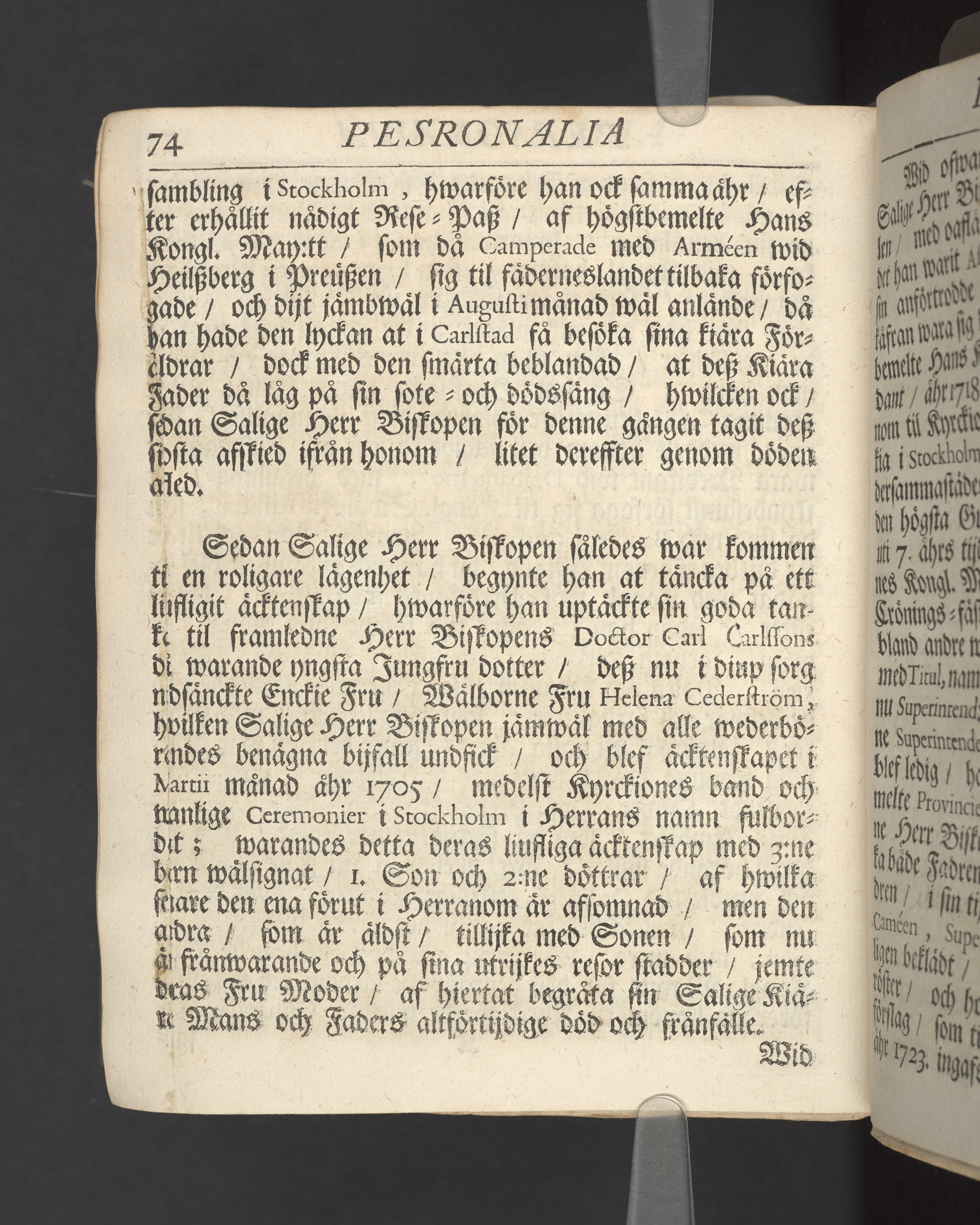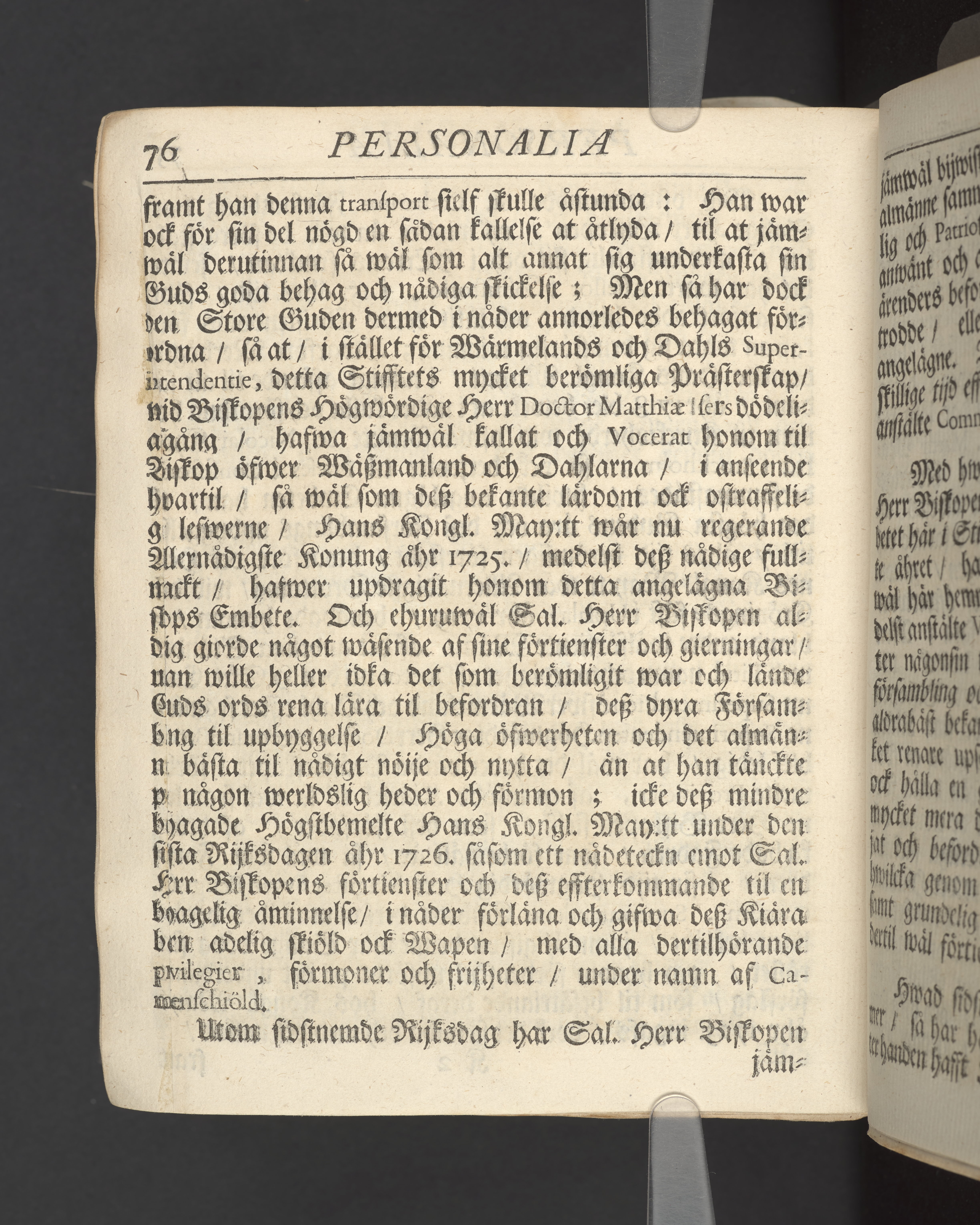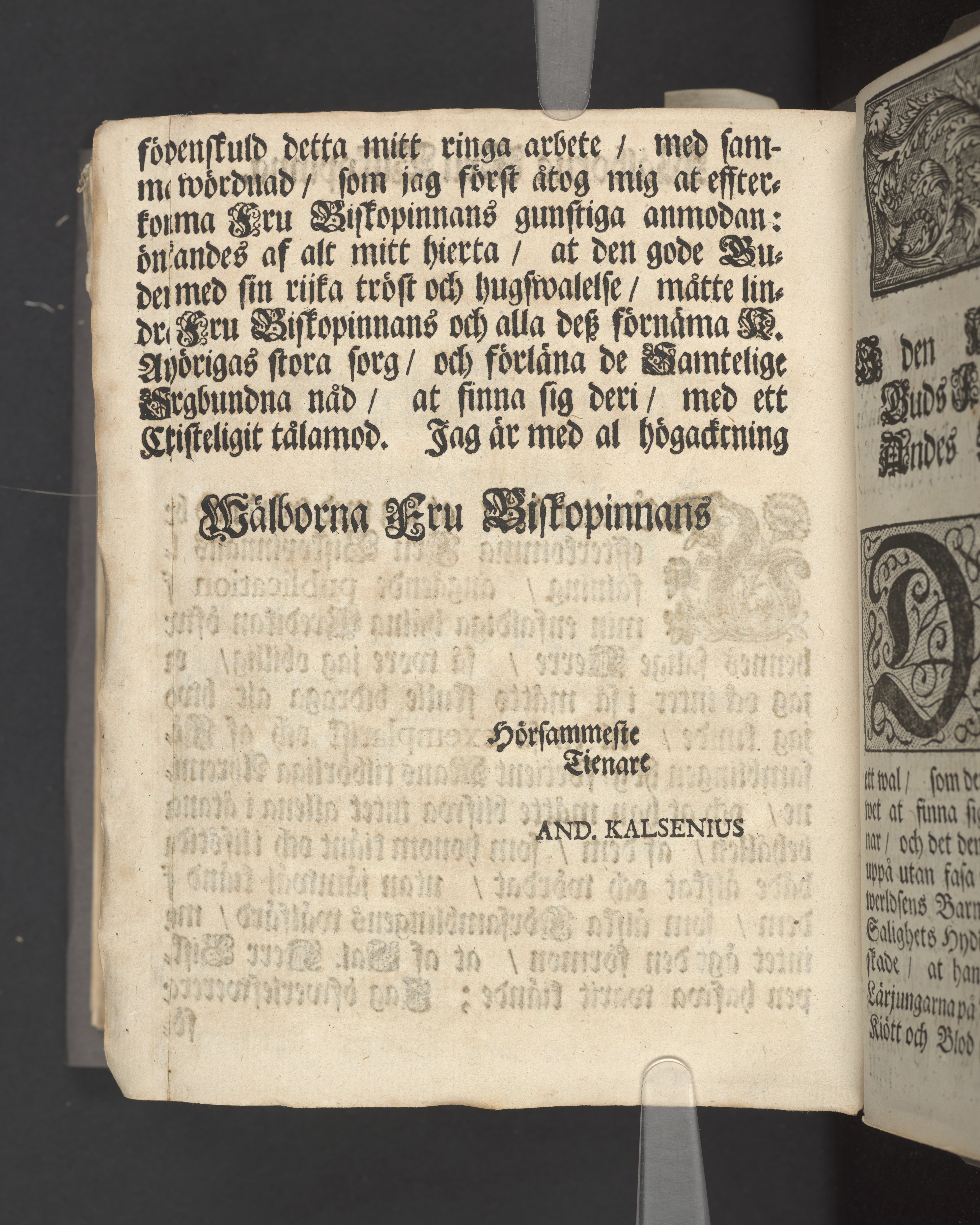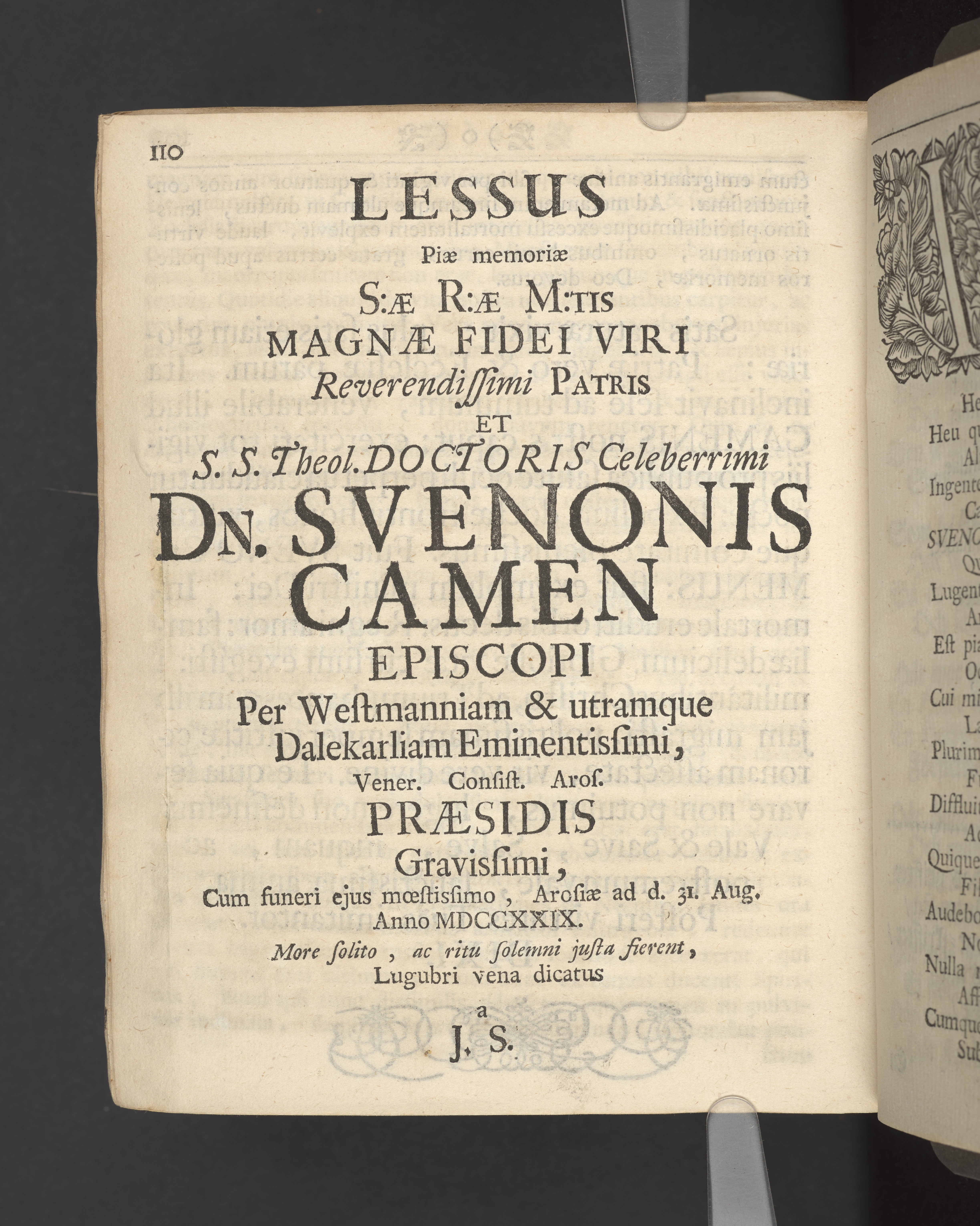 Christelig Predikan hållen/ då Kongl. May:ts i lijfstiden Tro-Mans och Högtförtiente Biskops Öfwer Wäßmannelands och Dahla Stifft Den Högwördige Herrens Doct. Swen Cameens, Döda Lekamen beledsagades til Grafwen i W-steråhs [sic] Dom-Kyrckia/ som skiedde under en Förnäm och Folckrijk Församlings närwarelse den 31. Augusti Anno 1729. Af Andreas Kalsenius S.rae regiae M:ti Sacris Suprem. Stockholm/ tryckt uti det Kongl. Treyckeriet/ Åhr 1730.