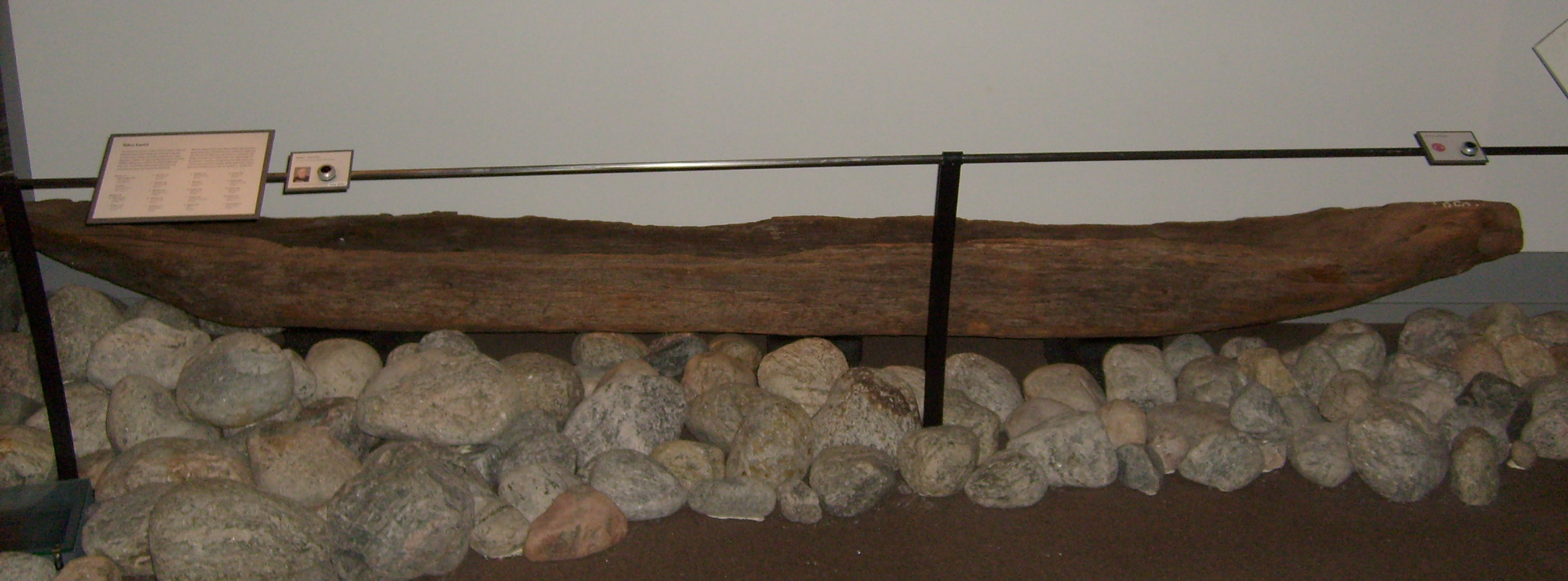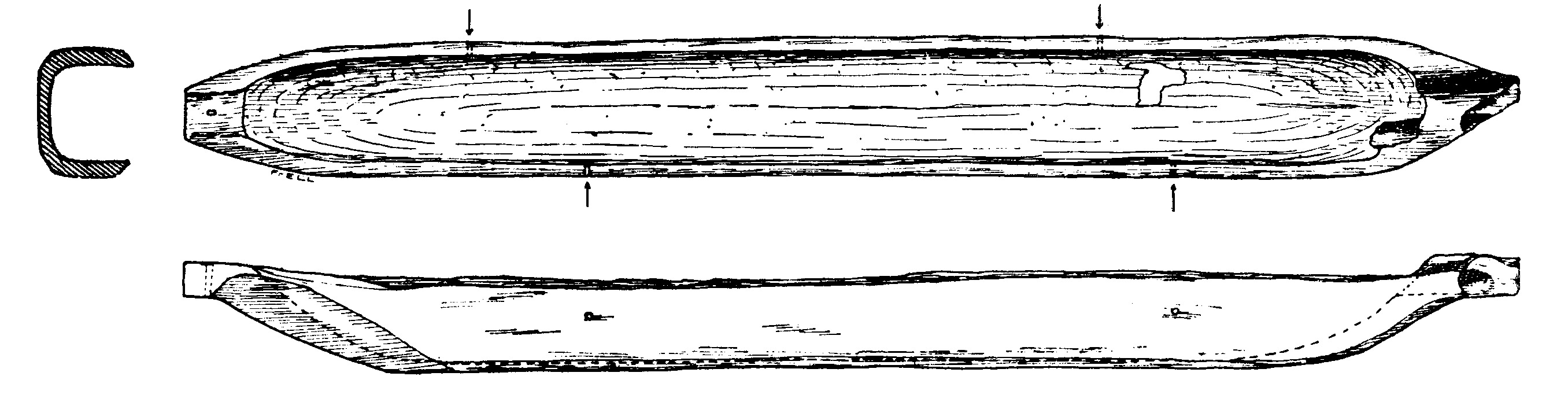 Stockbåt gjord av en urholkad trästam. För och akter kan urskiljas. Förstäven är smalare och något rundad. Flat botten.