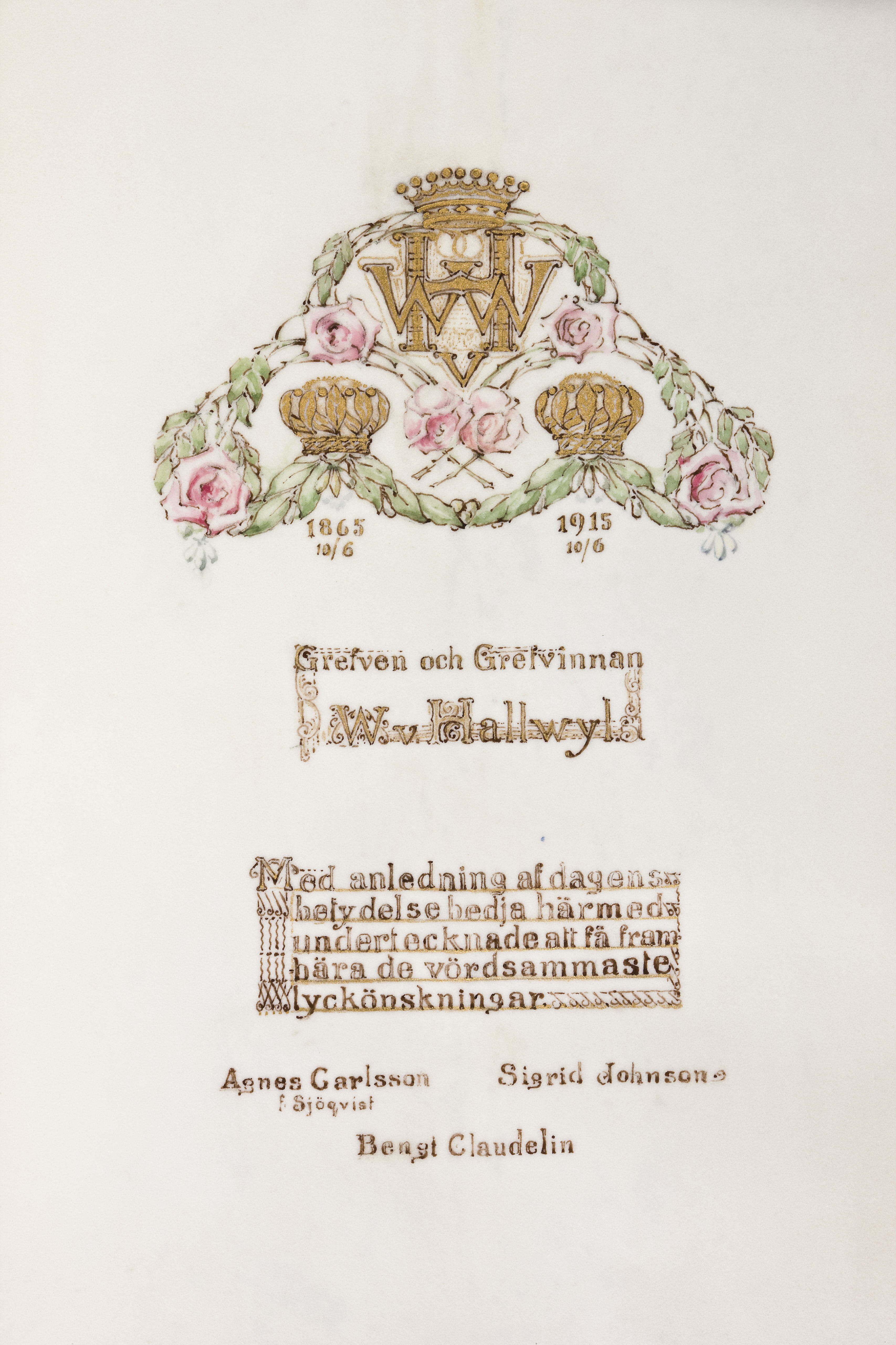 Biografi och genealogi, guldbröllopstelegram med rosor.