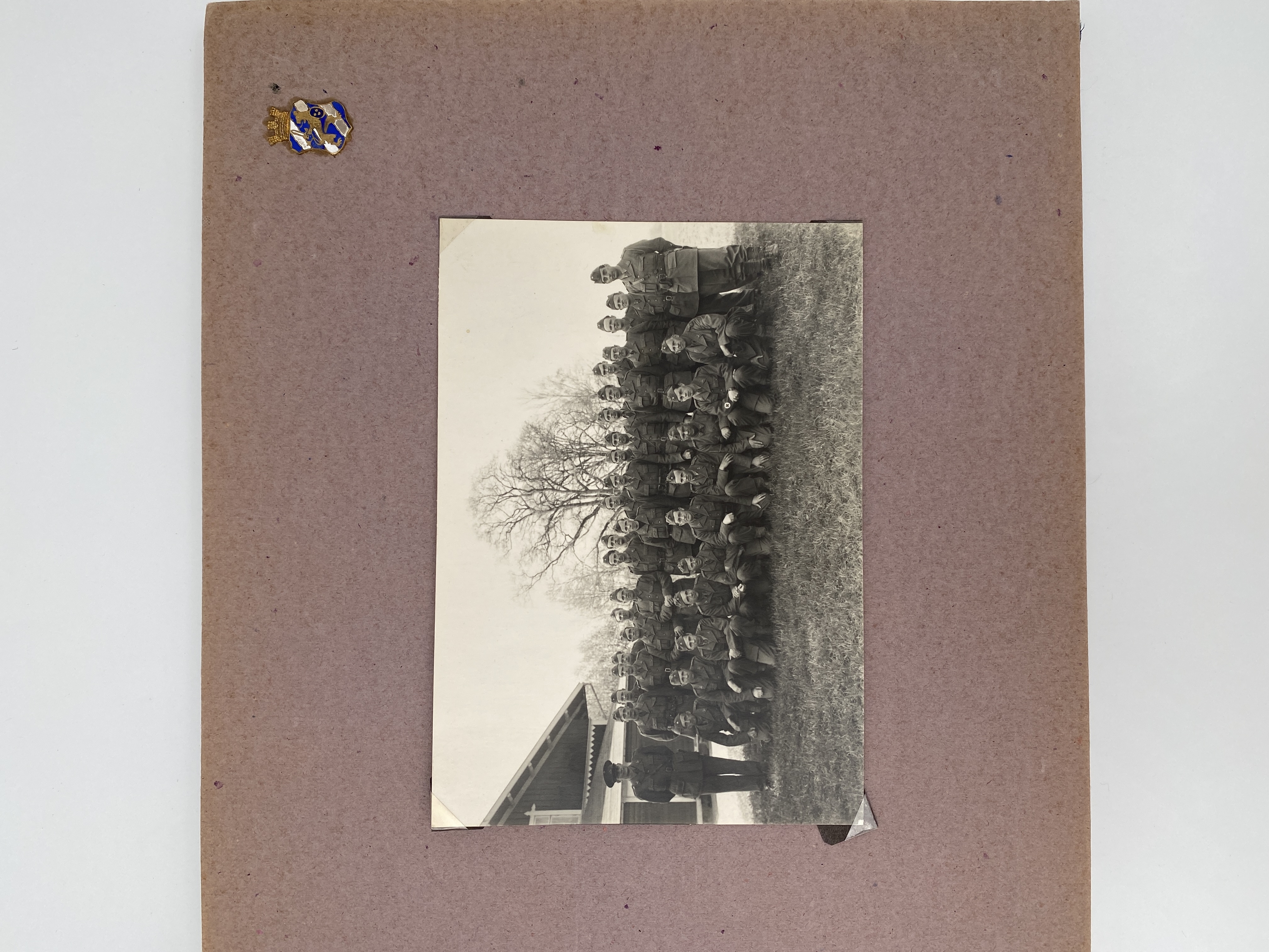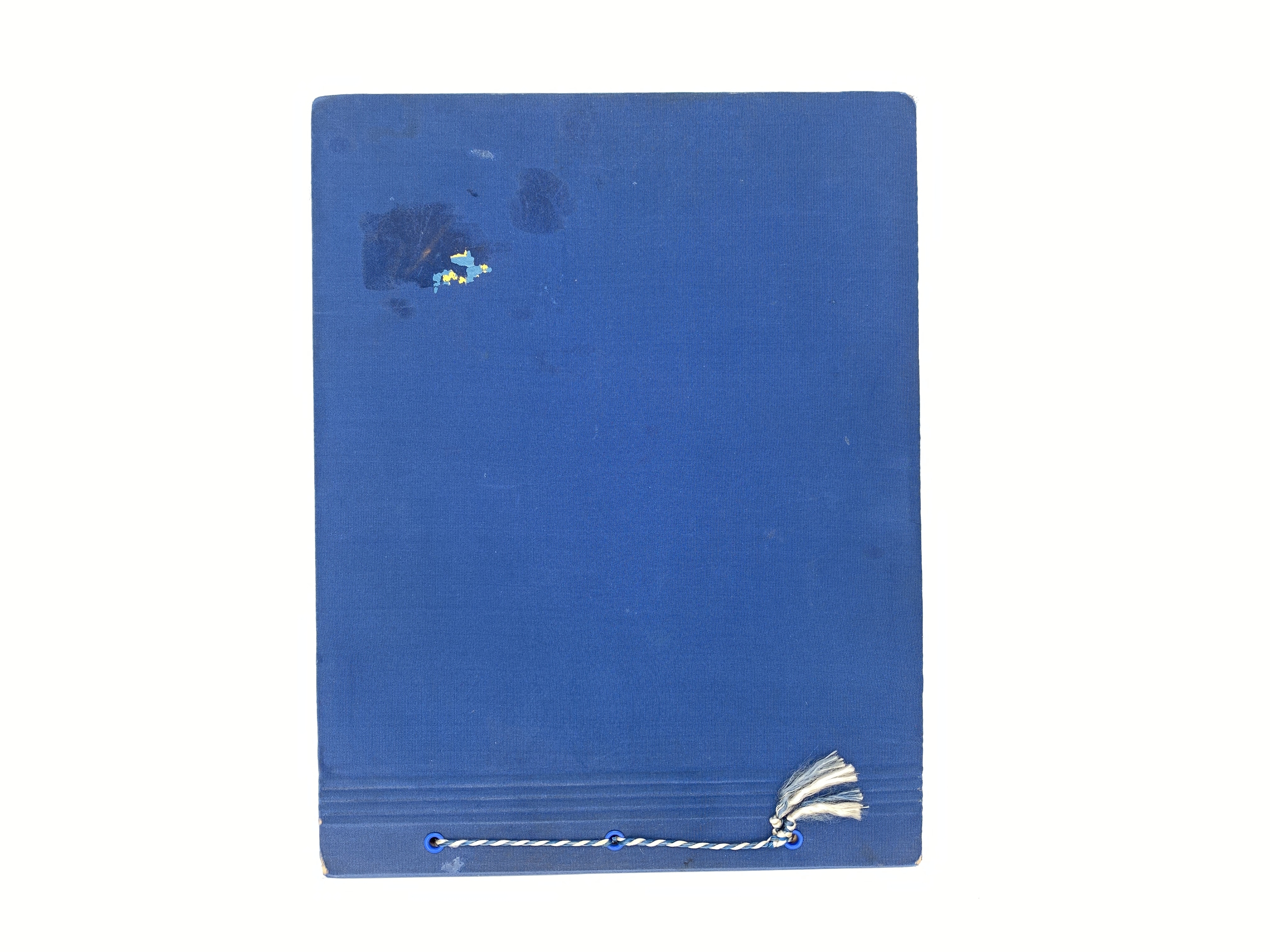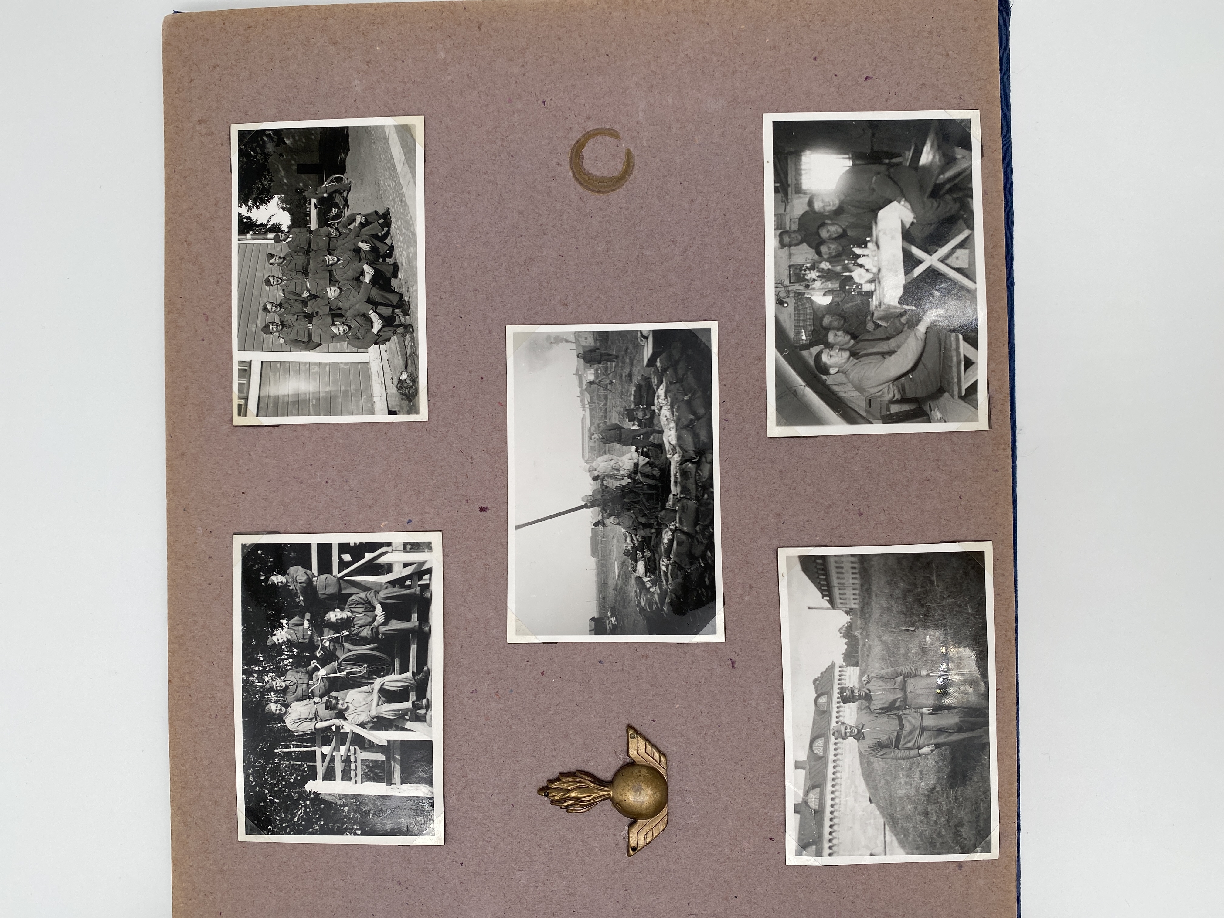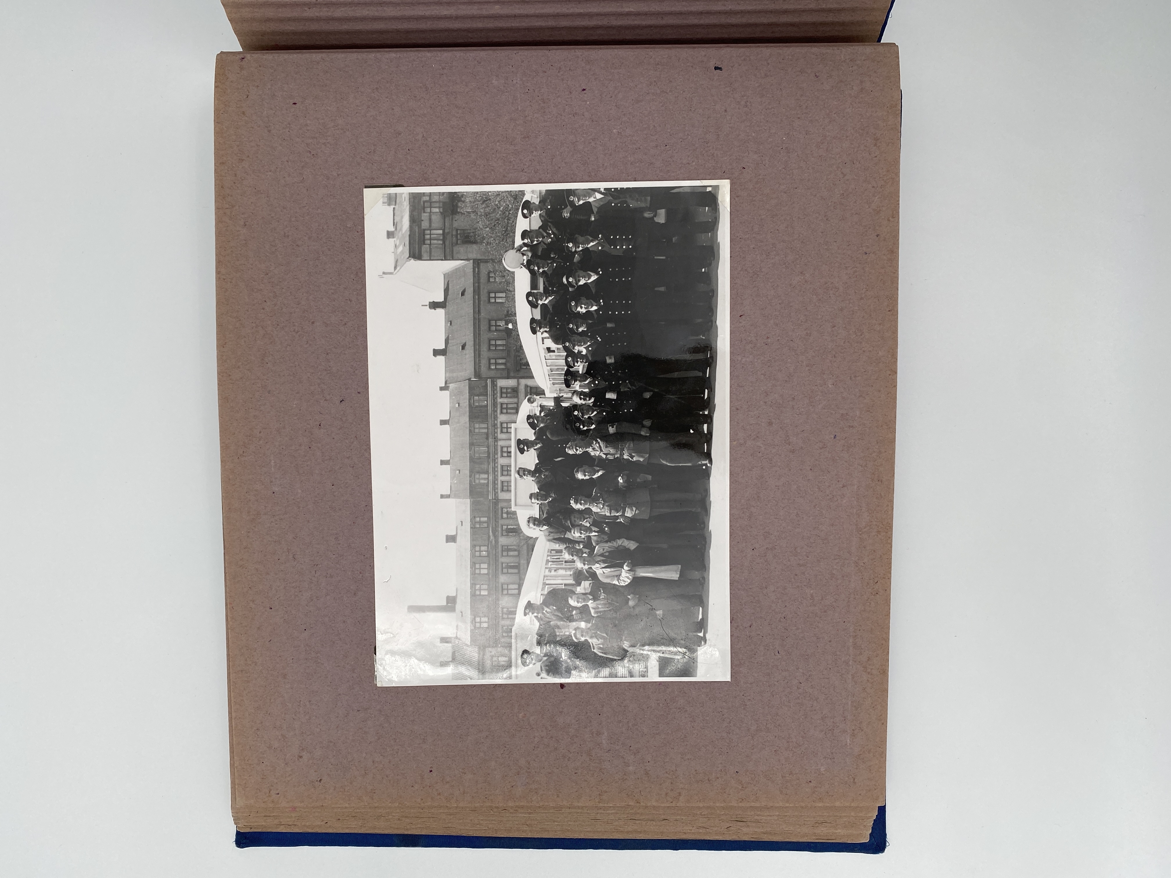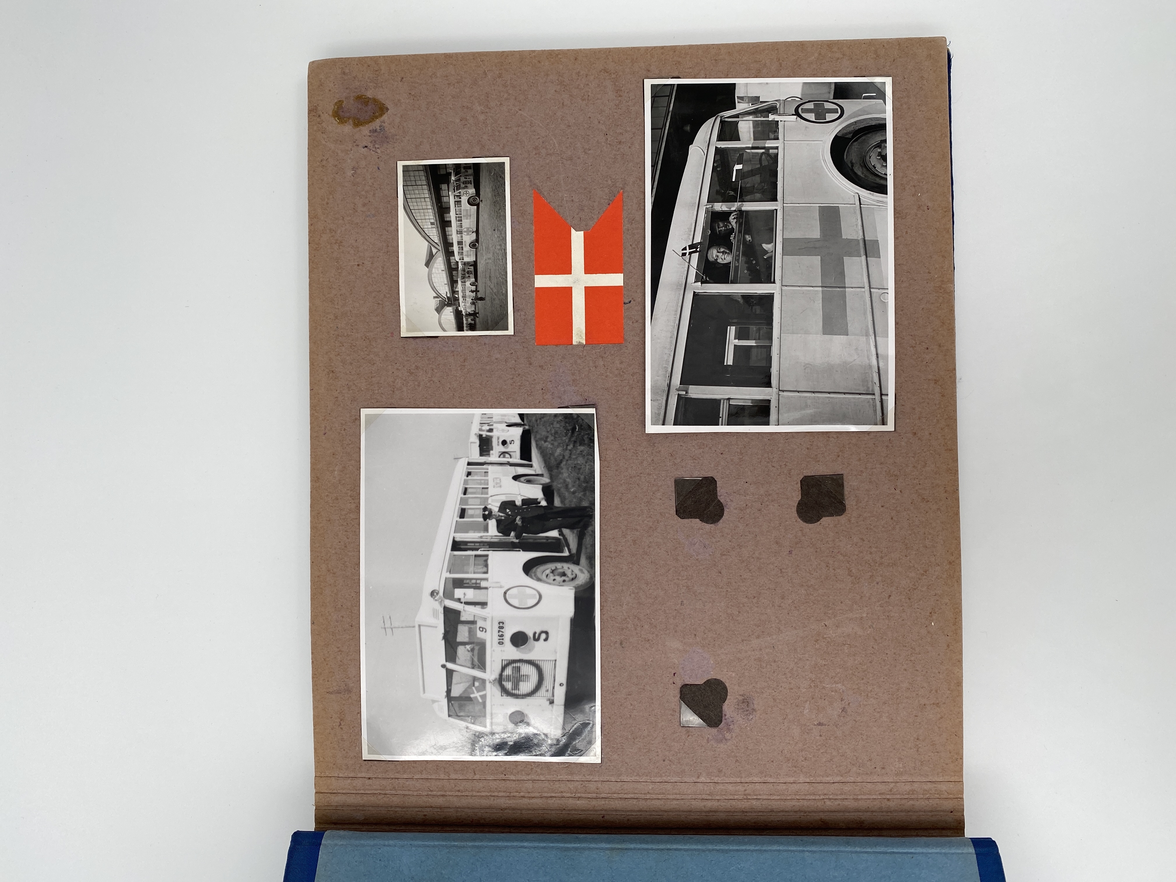 Blått album med svartvita fotografier tagna av Åke Hjort, som deltog som chaufför i Folke Bernadotteexpeditionen till Tyskland våren 1945, de "Vita bussarna".