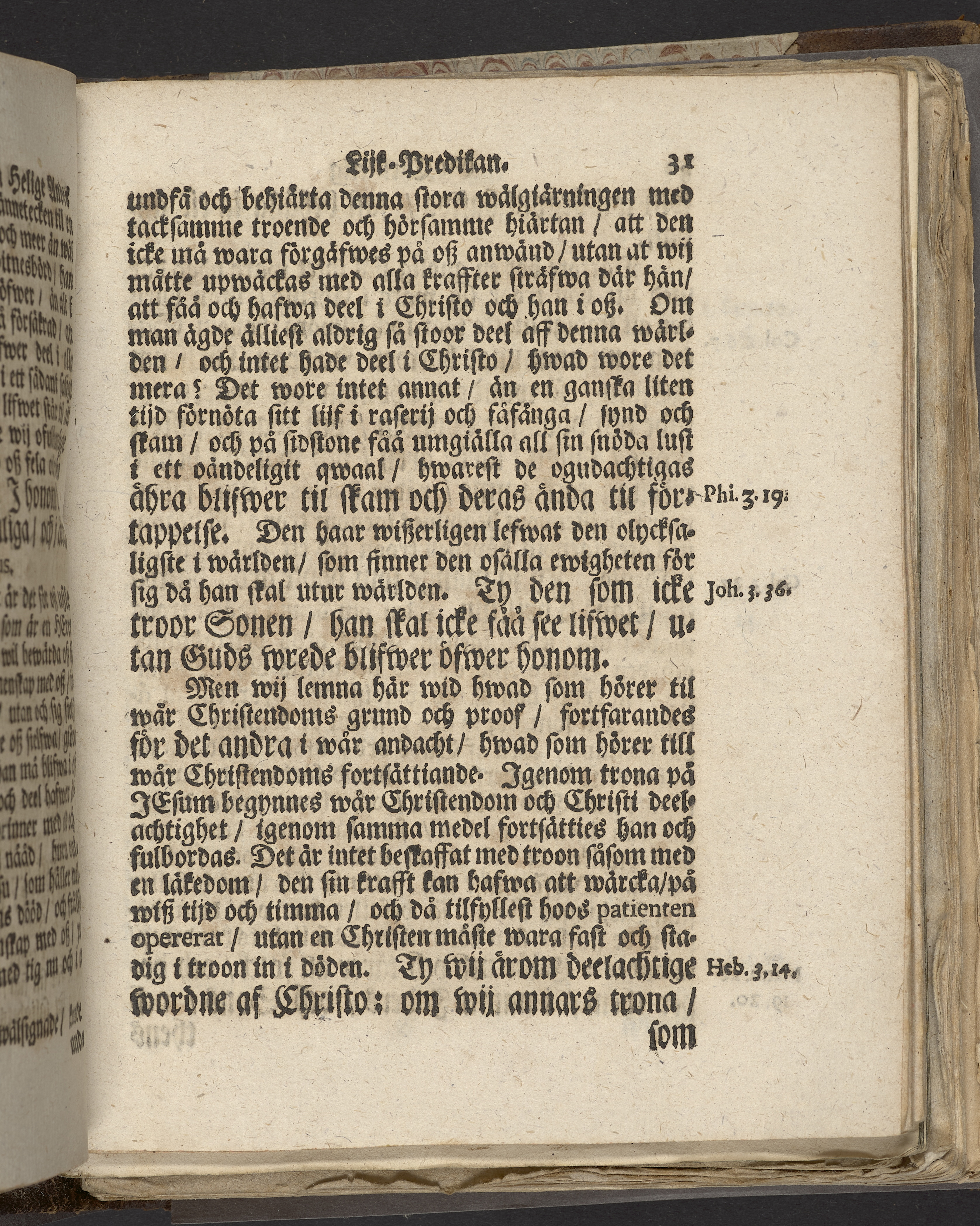Band m. pärmar av marmorerat papper, rygg och hörn av fårskinn. Pärmfyllnad: papp. Inlagan består av enskilda skrifter som tillsammans häftats på tre bind, fast rygg. Variationer i papperskvalitet och storlek. 18 skrifter samlade i en volym.