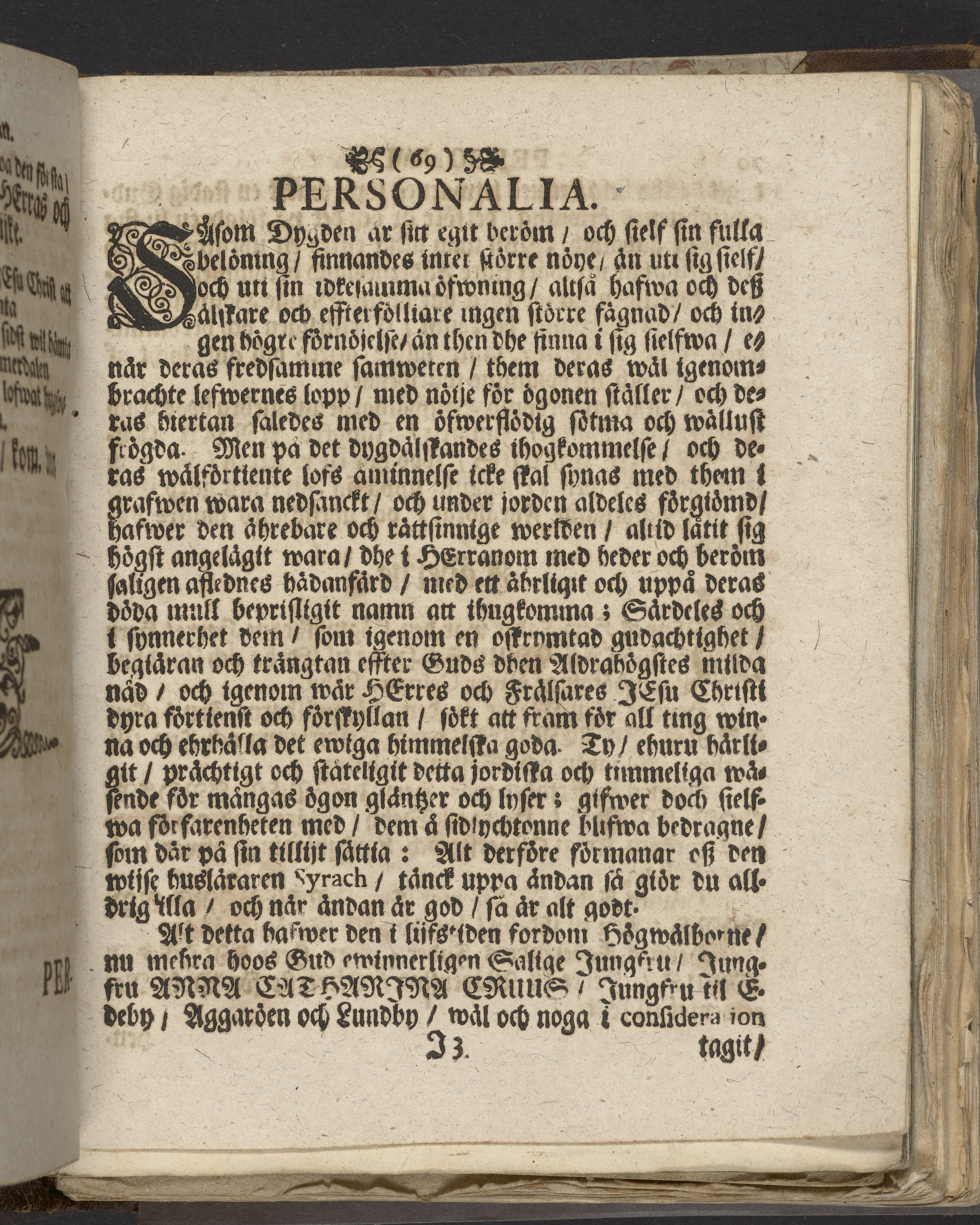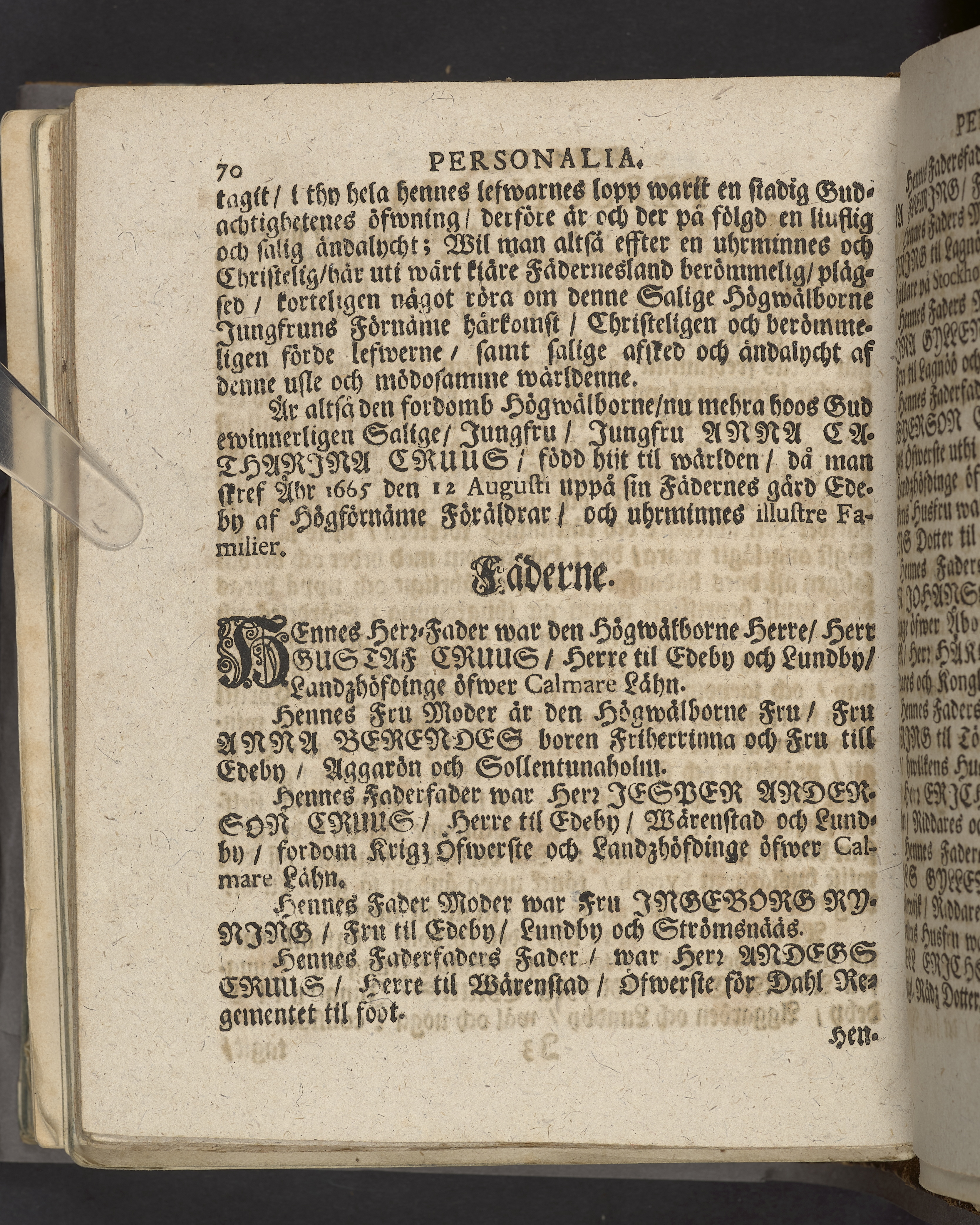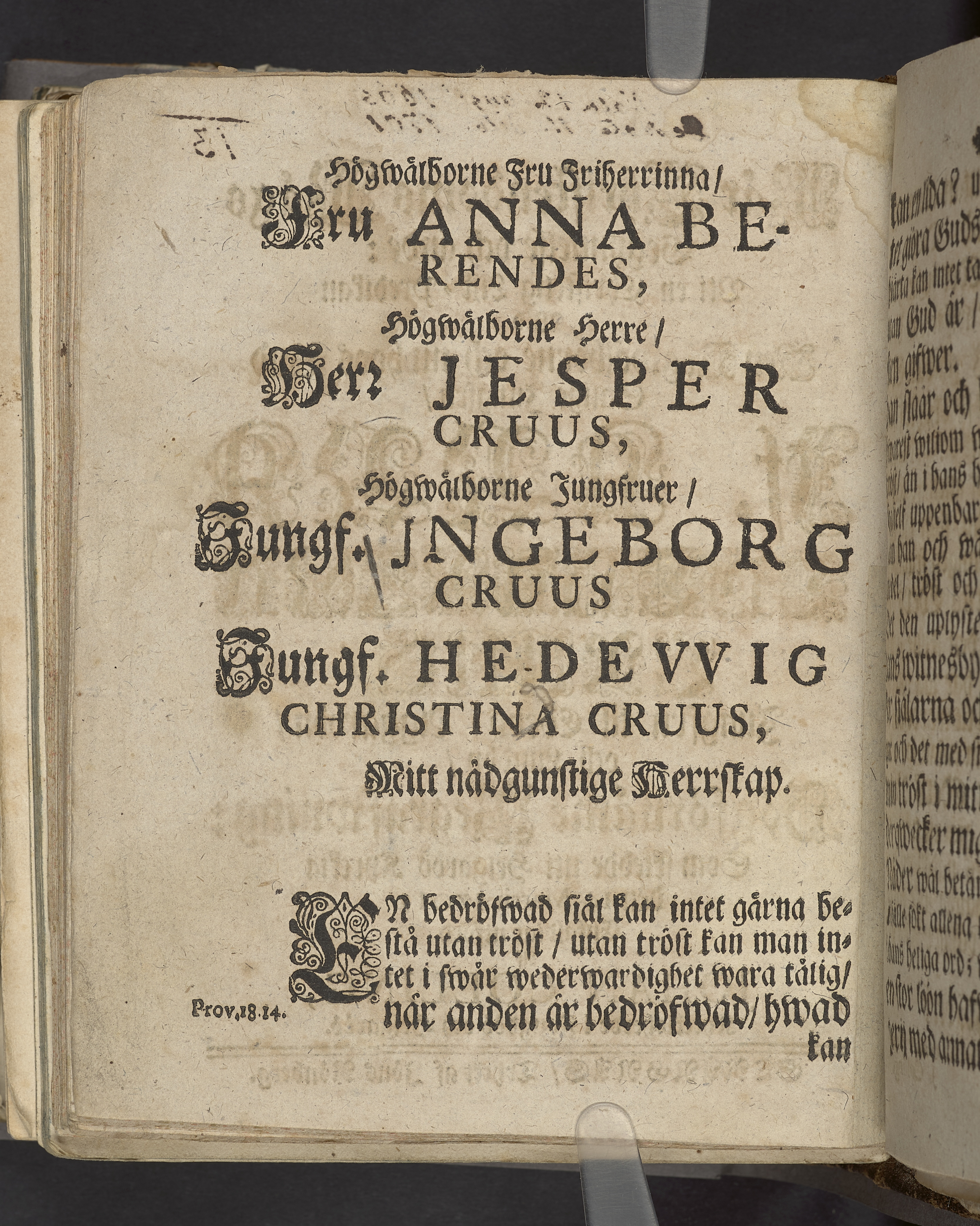 Begravningen av Anna Catharina Cruus (Omnämnd på/i)