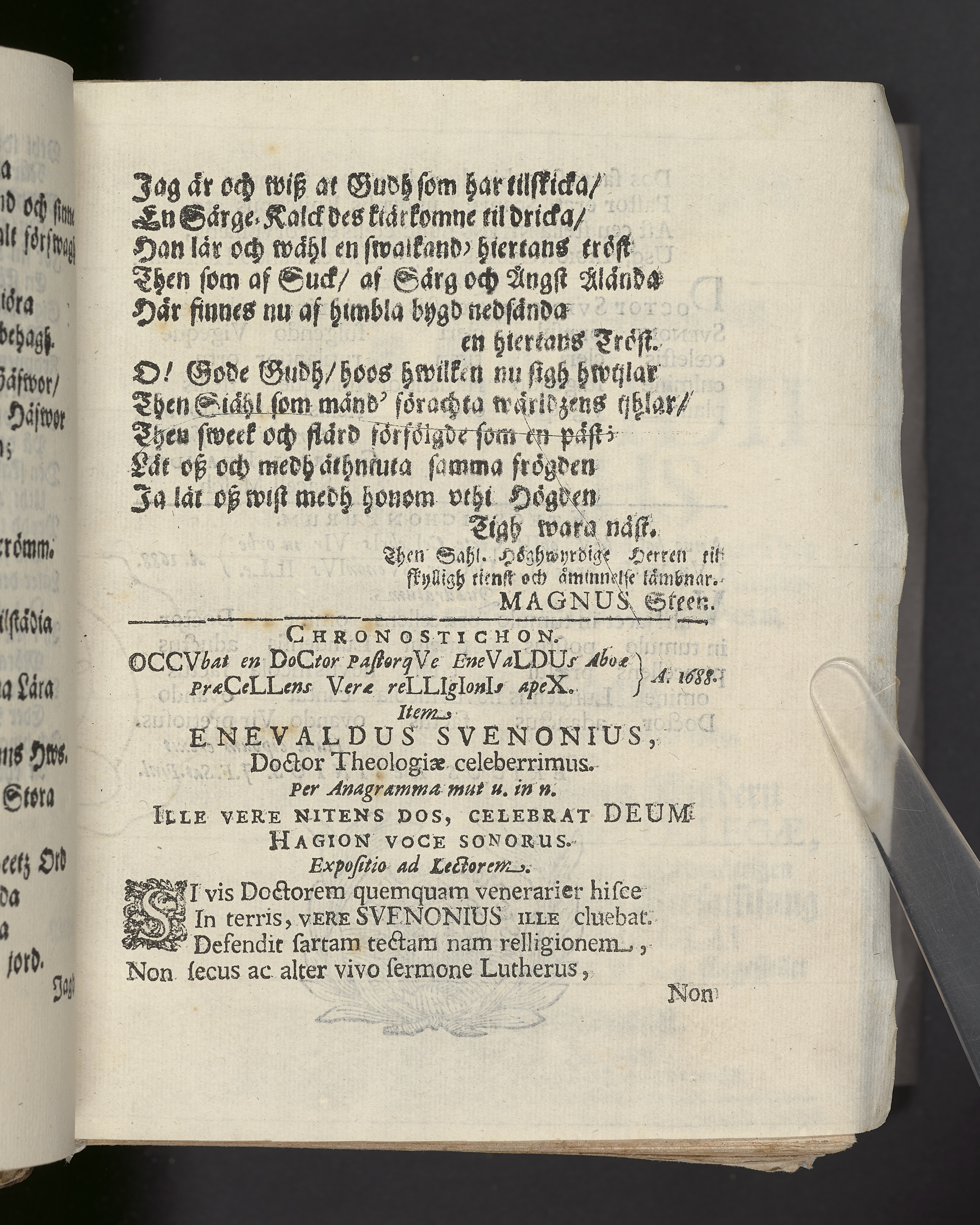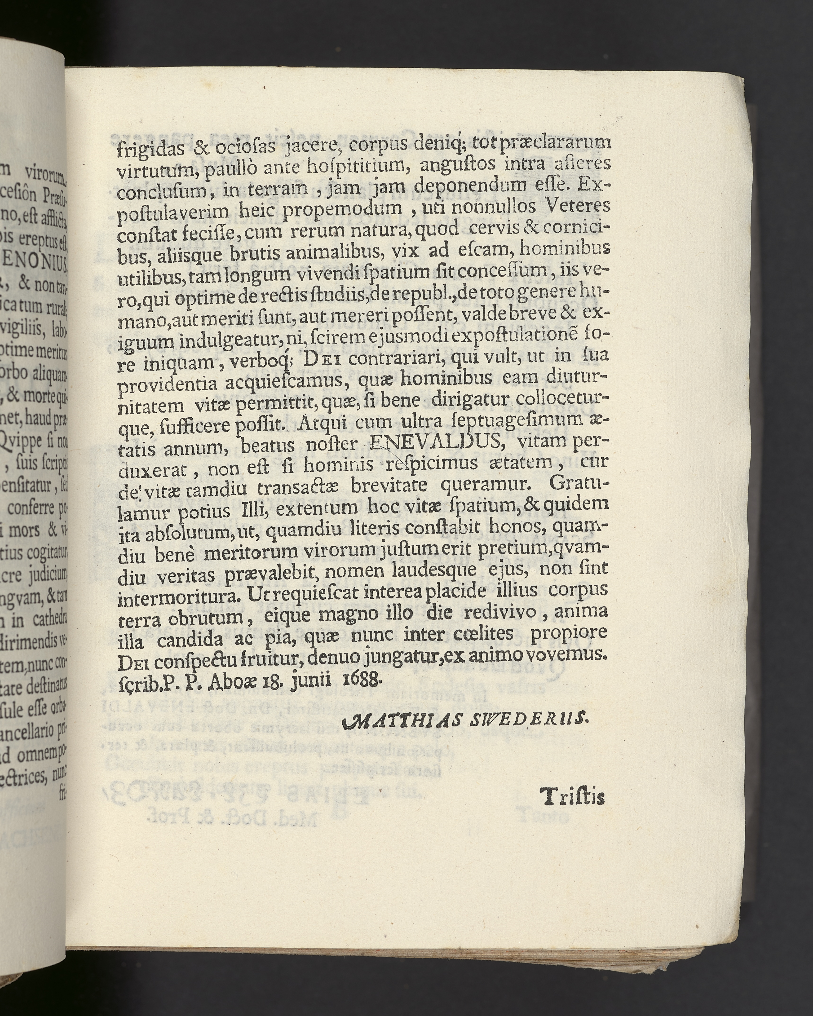 In exeqviis ... Dn. Enevaldi Svenonii ... qvi vitam septuaqinta annorum & qvatvor mensium piè finivit Aboæ, die XVII. aprilis ... MDCLXXXVIII. sepultusq pompa ... in templo cathedrali ... hæc sunt expressa ... Aboæ, impr. apud Iohannem Laurentii Wallium ...