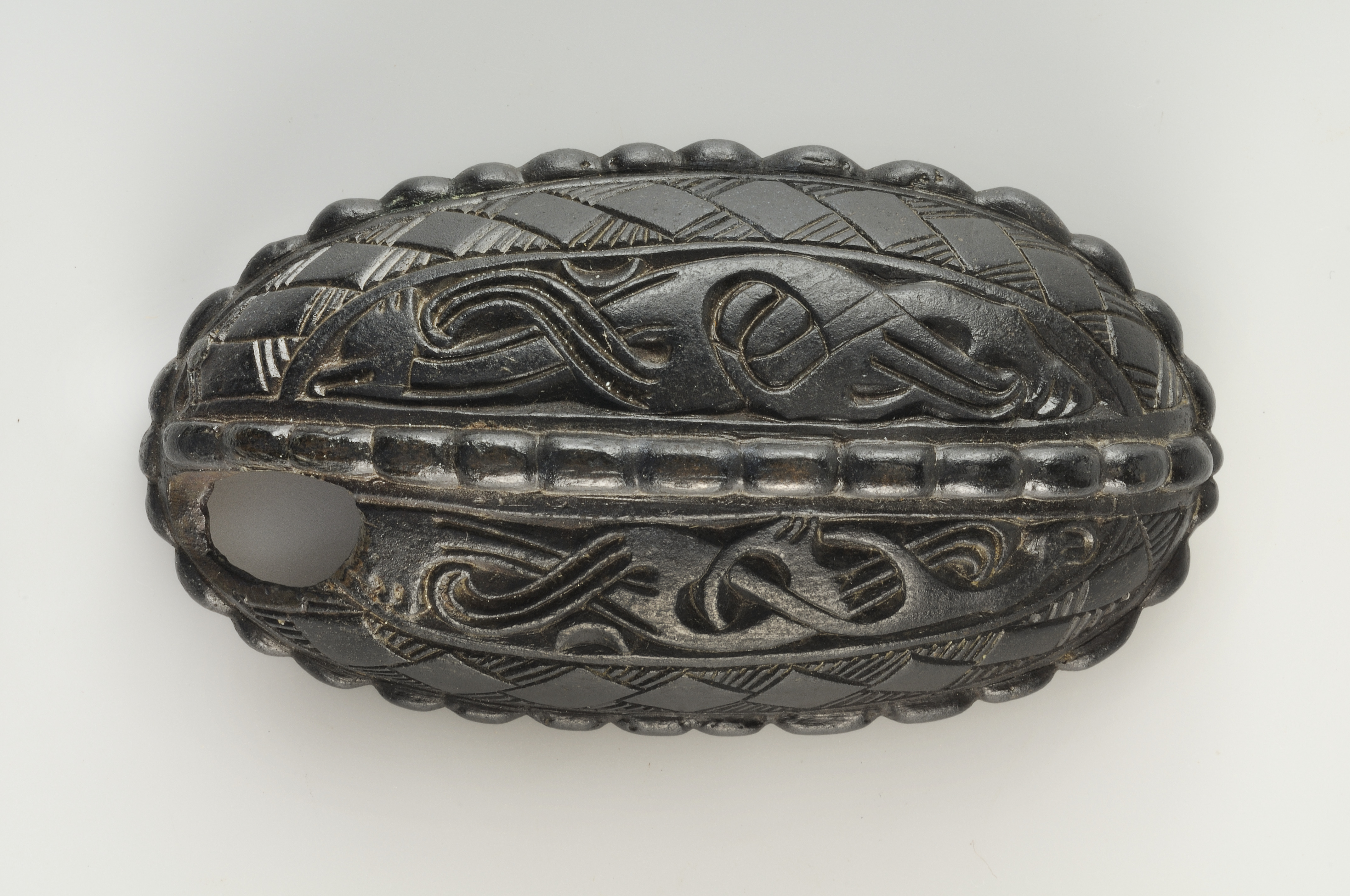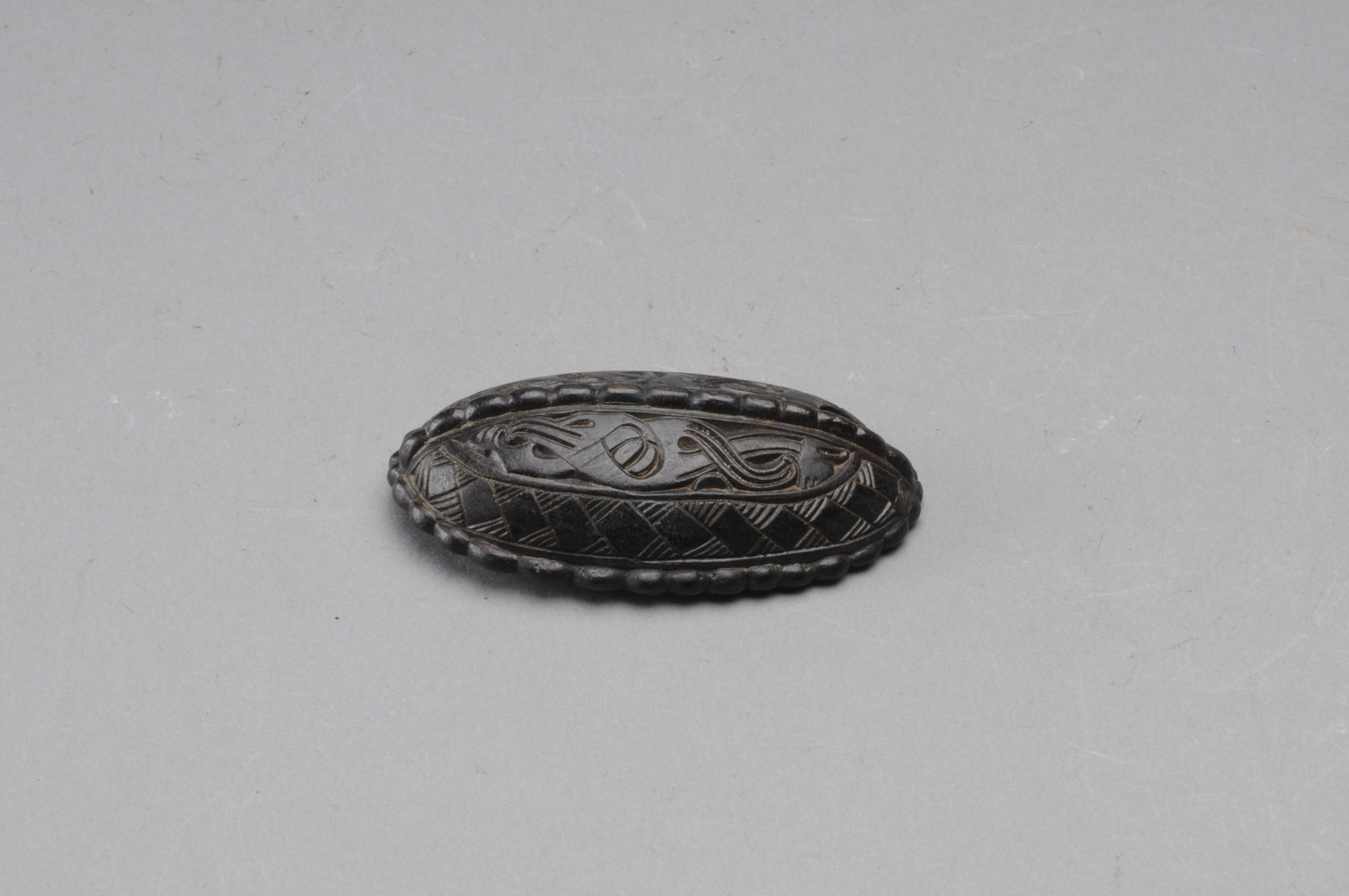 Liten enskalig spännbuckla med broaornamentik