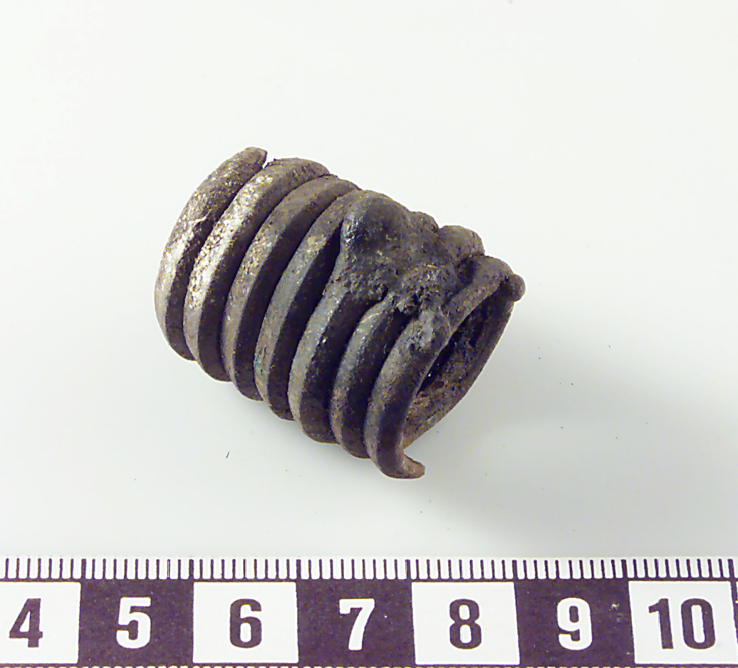 Spiral av ten i sju varv med trekantigt tvärsnitt. Ena spiraländen avbruten.
