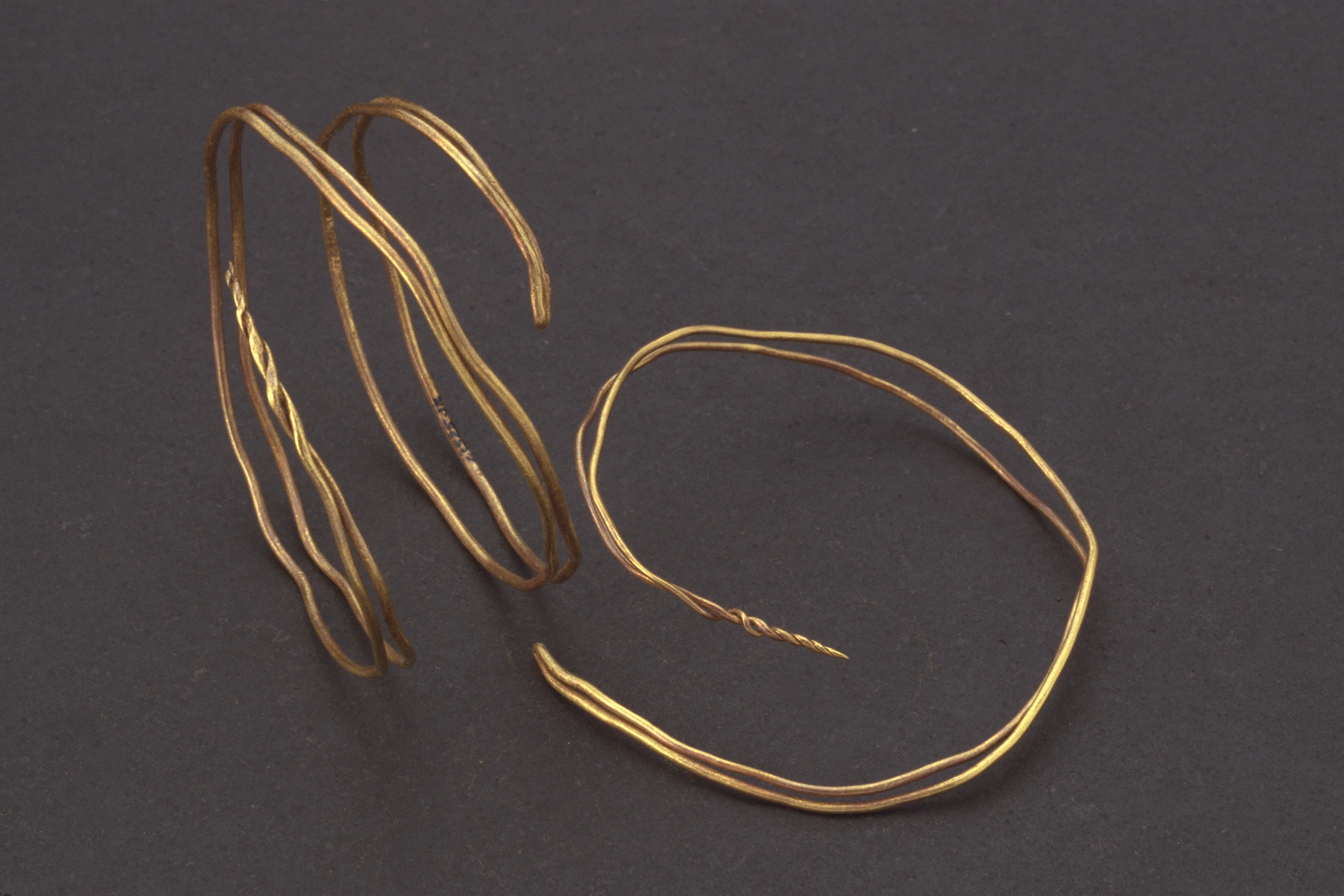 Dubbel guldtråd. M per I. Funnen vid plöjning nedanför Fjälkinge backar.