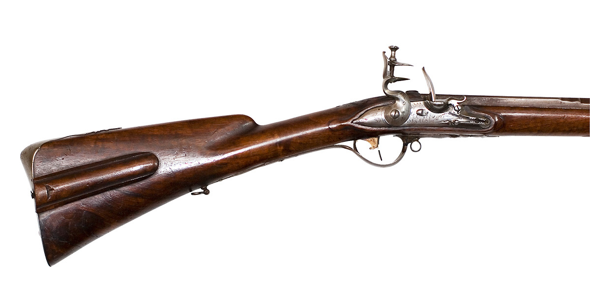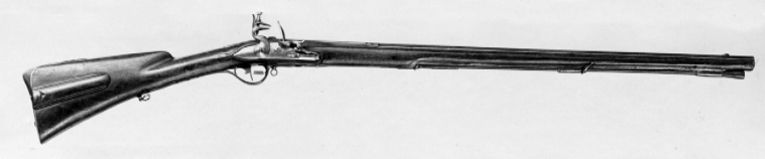 Åttsidig, på ovansidan brunerad pipa med fyrsidig kammare, s k halv kistpipa. Bakåt avsmalnande svansskruvblad. Vid övergången till det åttsidiga partiet på översidan inslaget med silver: 1624. Riktmedel: Vid pipbasen oval klack med skålat sikte, spolformigt korn av silver på oval platta. Fästning: Tre häften. Pipan fäst med krysskruv samt två pipstift av stål och däremellan rembygelns skruv. Flintlås med välvt låsbleck, enkel, graverad dekor, dubbla kantlinjer, framför hanen signatur delvis dold av oval säkringsknapp. " G F Metzger // Stockholm " S-formigt svängd, välvd hane, dekor som på blecket, lös överkäke, käkskruv med skivformigt huvud. Rundad fängpanna med bred fals. Batteri med välvt lock, något spetsigt eldstål med åsad rygg, batterifjäder med delvis fasade kanter, två skålningar, assymmetirskt fjäderlöv. Fästning:Två låsskruvar. Avtryckare. Konturerat avtryckarbleck.Svagt böjd avtryckare. Helstock av valnöt, kolv med kolvlåda och kindstöd, enkel snidad dekor vid kindstöd och svansskruvblad. Kolvlådelock med kantlister, enkelt fingergrepp. Beslag av brunerat stål. Bakplåt med assymmetirsk, slät flik på kolvryggen, två skruvar. Blankt, välvt sidbleck med försänkta ändar, graverad dekor, dubbla kantlinjer och rokokoblad. En + två brunerade rörkor, slät triangulär spets. Varbygel med bred, rundad bygel, rund framstolpe, kluven bakre stolpe. Välvd främre arm med urneformig, slät avslutning. Lång, välvd bakre arm med liknande avslutning, en skruv. Bakom varbygeln en rembygel, främre rembygeln framför mellanrörkan. På varbygelns främre arm vid framstolpen en ring. Tillbehör: Laddstock av trä, l: 758 mm, framtill konisk hornskoning, l: 40 mm. I kolvlådan lapp med påskrift: " Tillhört friherre Sandels ".