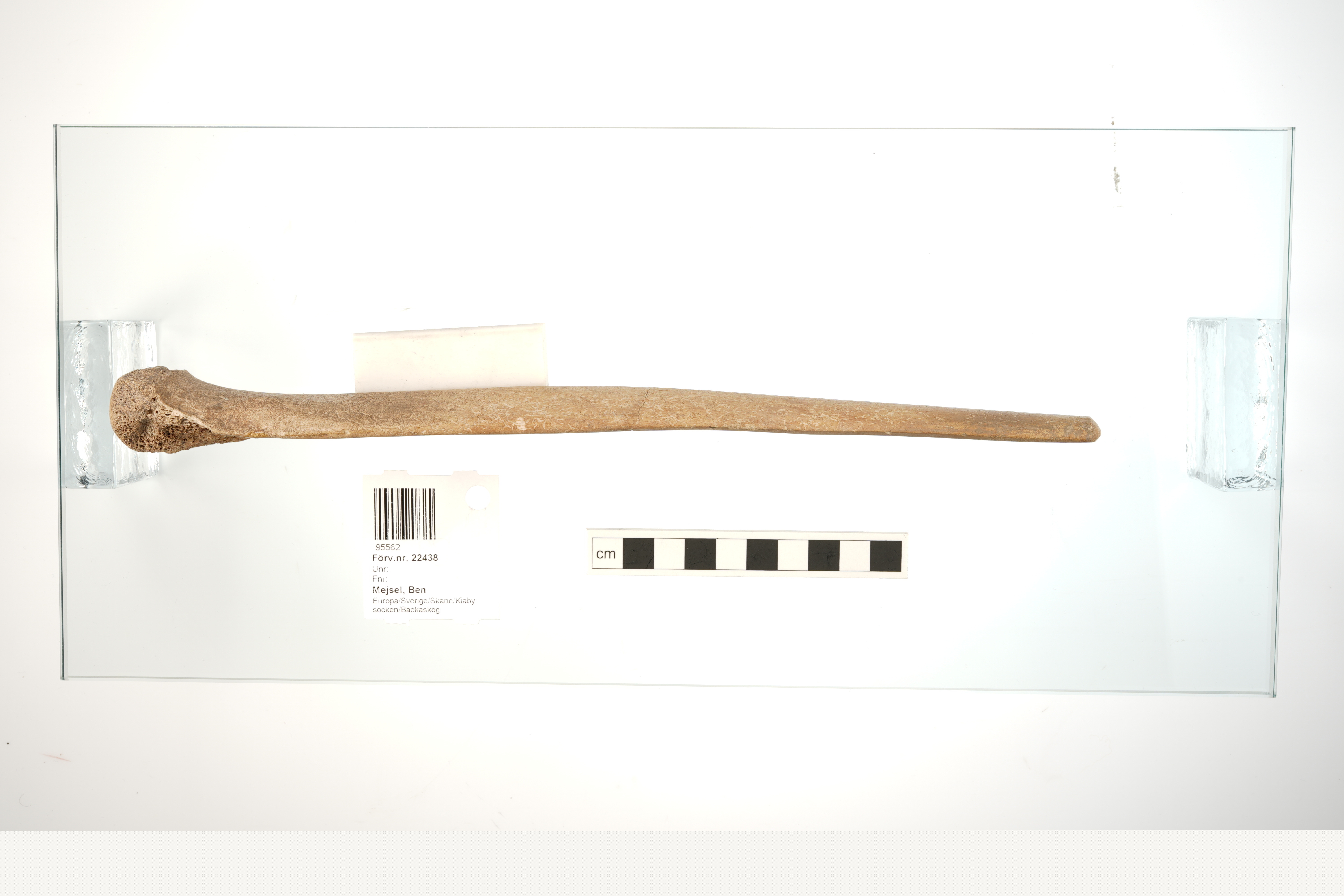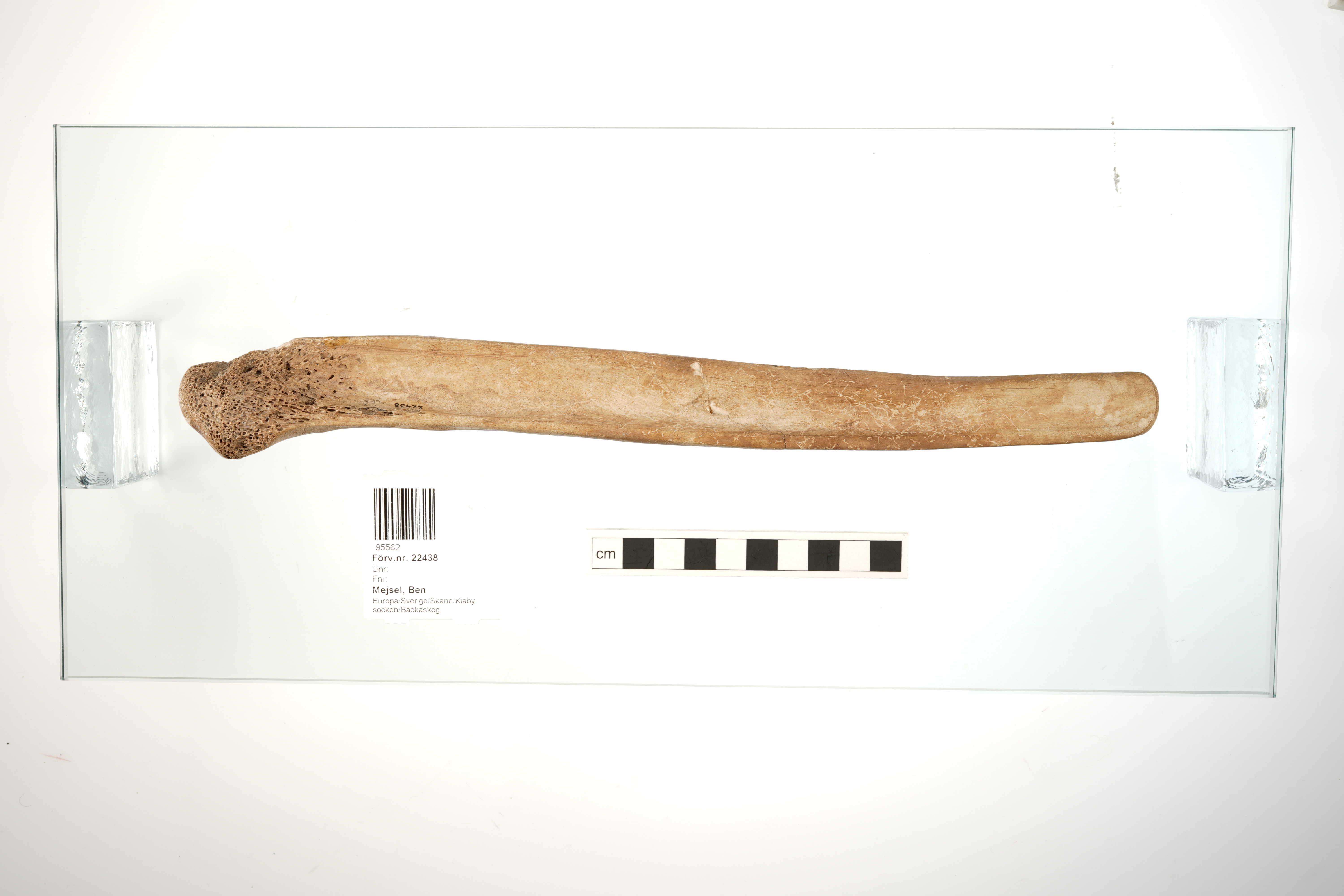 Mejsel av kluvet ben med kvarsittande ledyta i ena ändan. Kanterna är tillskurna, något rundade mot stickans bas, skarpare mot mitten. Har en glättad, något vittrad yta. Gravgods funnet i Barumskvinnans (tidigare kallad Bäckaskogskvinnans) grav.