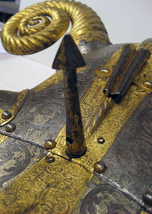 Häststjärna, ingående i Sigismund Augusts rustningsgarnityr för man och häst. Skänkt år 1574 av prinssessan Anna av Polen till Johan III. Tillverkad på 1550-talet av Kunz Lochner i Nürnberg.