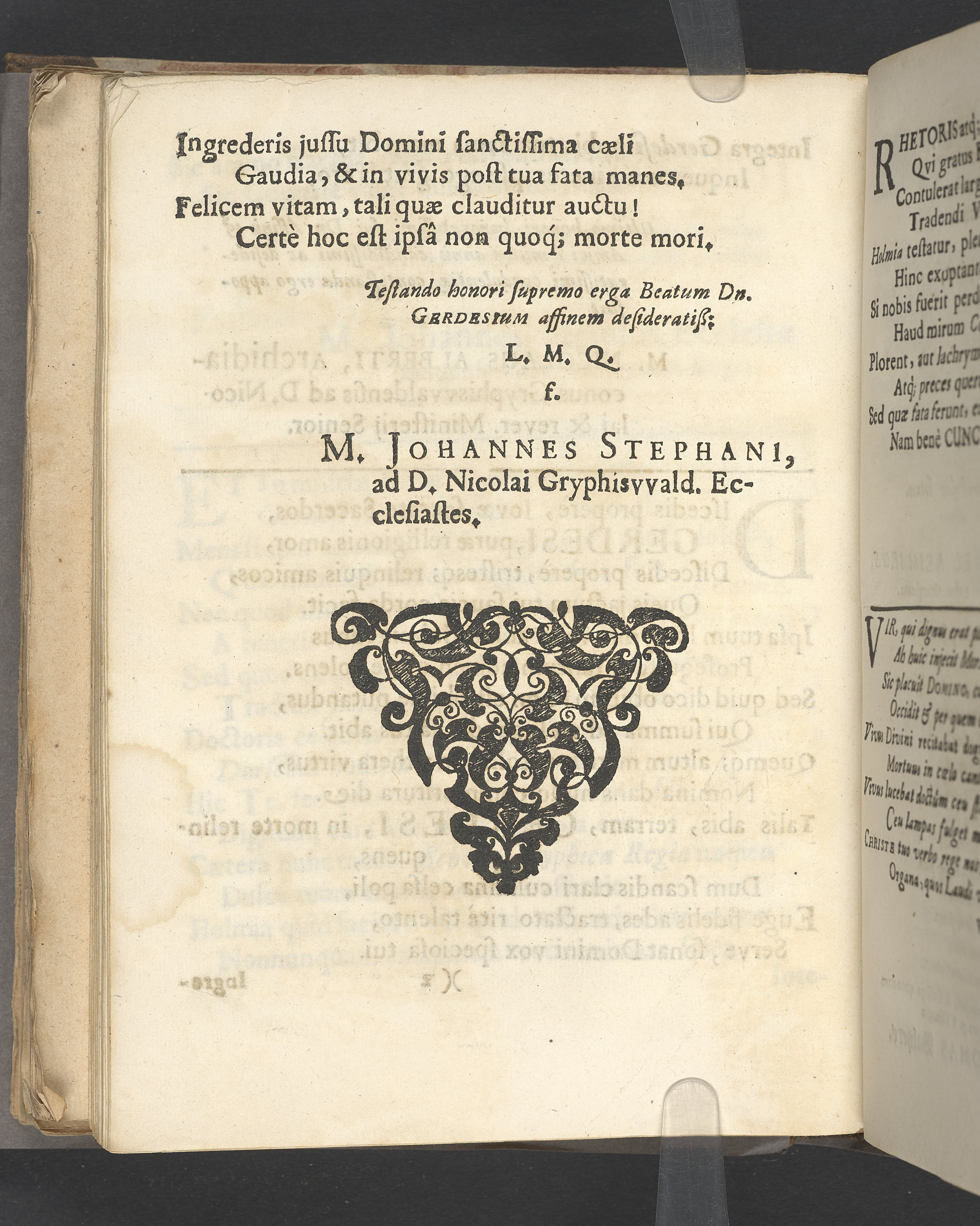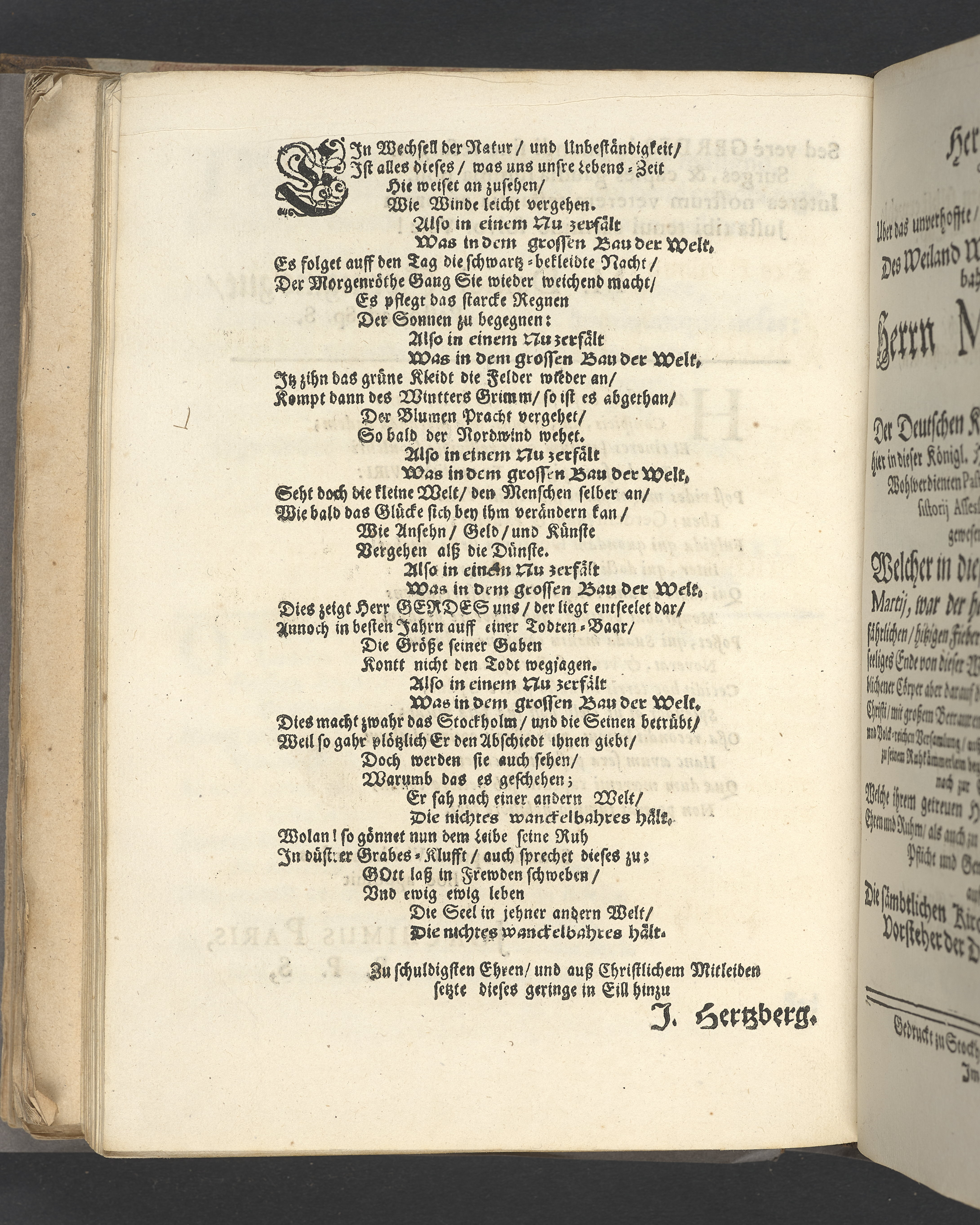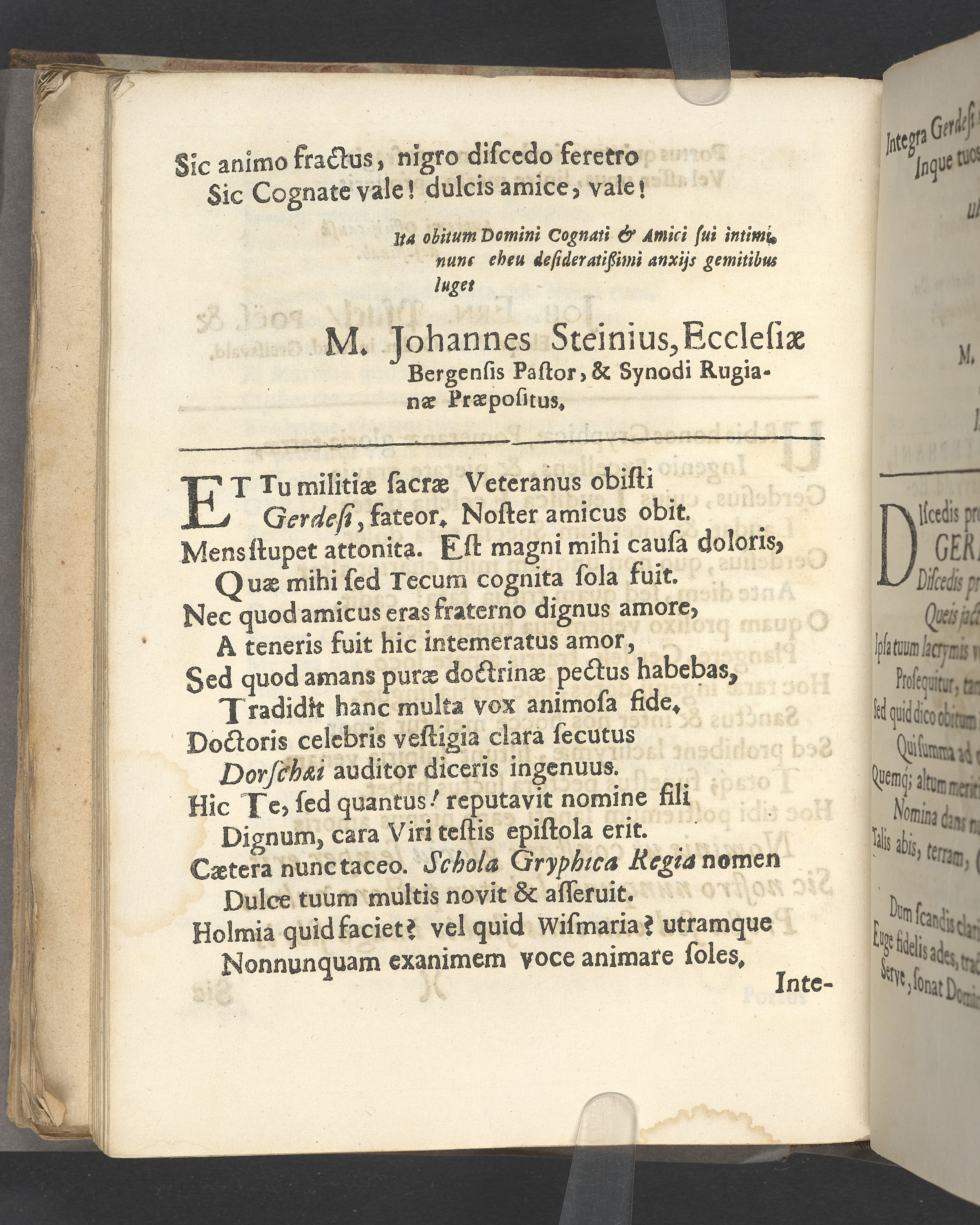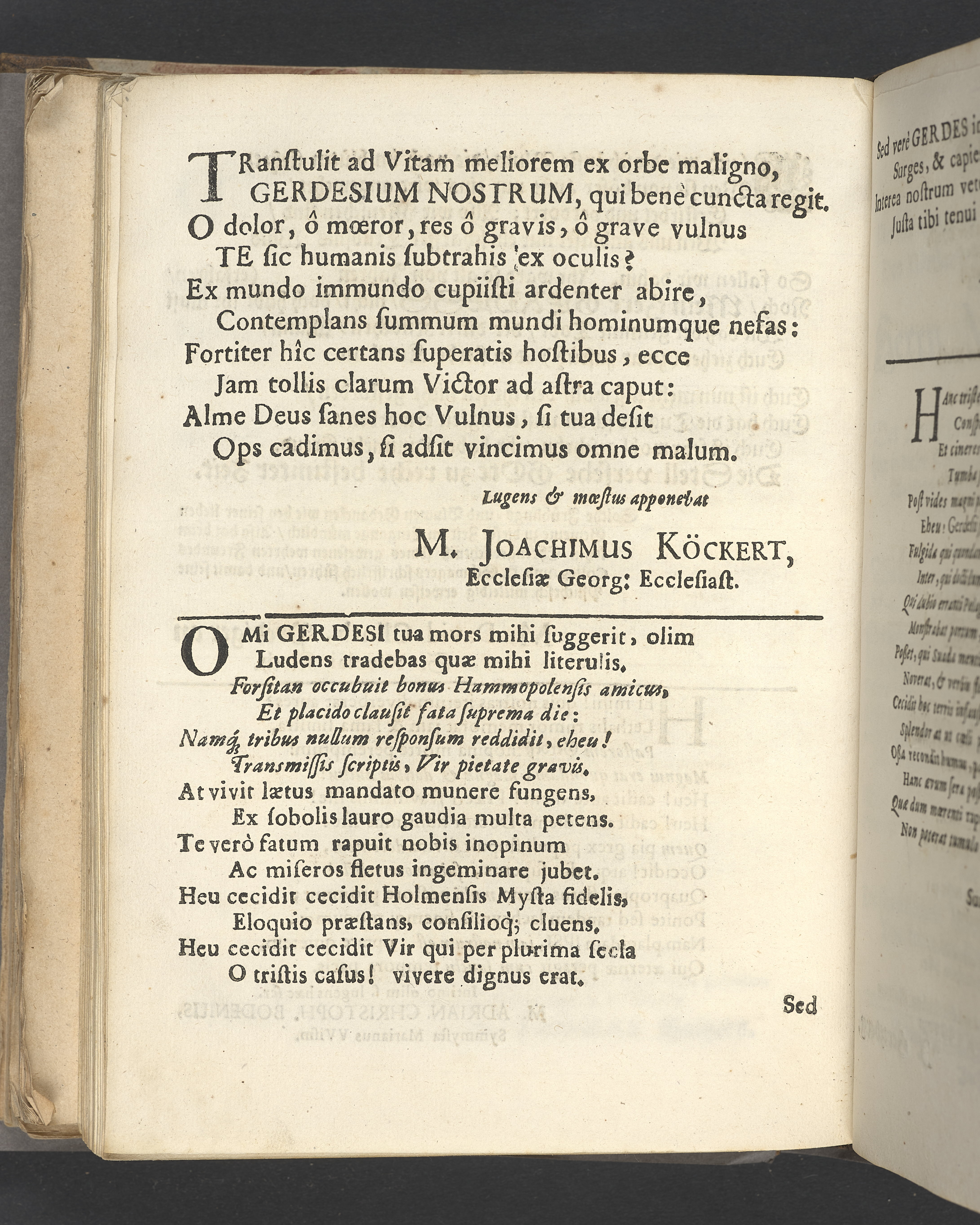 Naenie quibus praematurum attamen perbeatum excessum. Viri admodum reverendi, amplissimi & clarissimi domini Dn. M. Johannis Gerdes/ theologi pii, olim linguarum orientalium professoris regii ordinarii in academia Gryphiswaldensi, postea Wismariensis & Holmiensis pastoris & consistorialis gravissimi, nec non scholae teutonicae Holmiensis inspectoris dexterrimi, de ecclesia dei optime meriti, die 29. martij anni 1673. pie defuncti ac die ascensionis domini 8. maji honorifice tumulati. Lugent fautores, collegae quondam, frater & affines Gryphiswaldenses.
