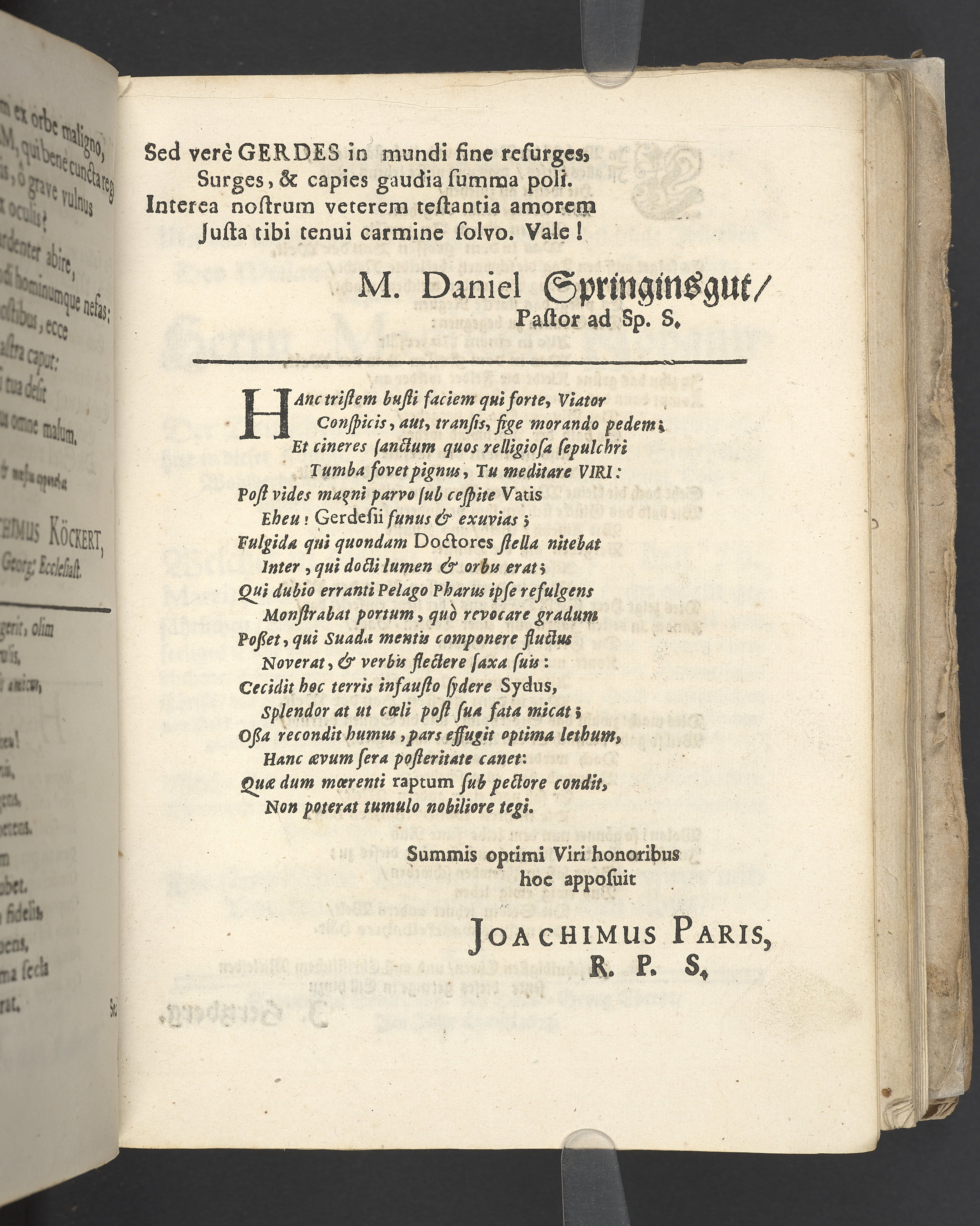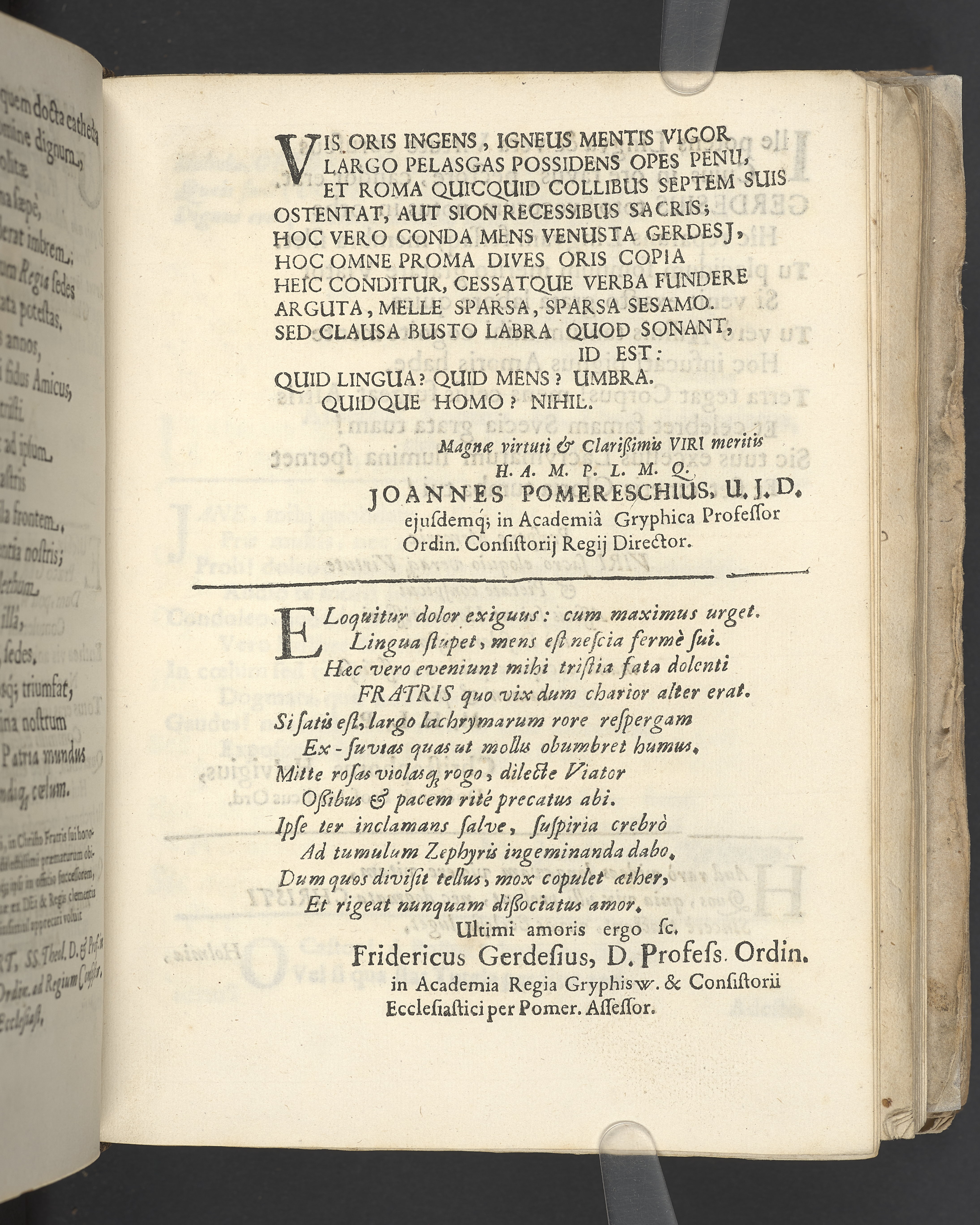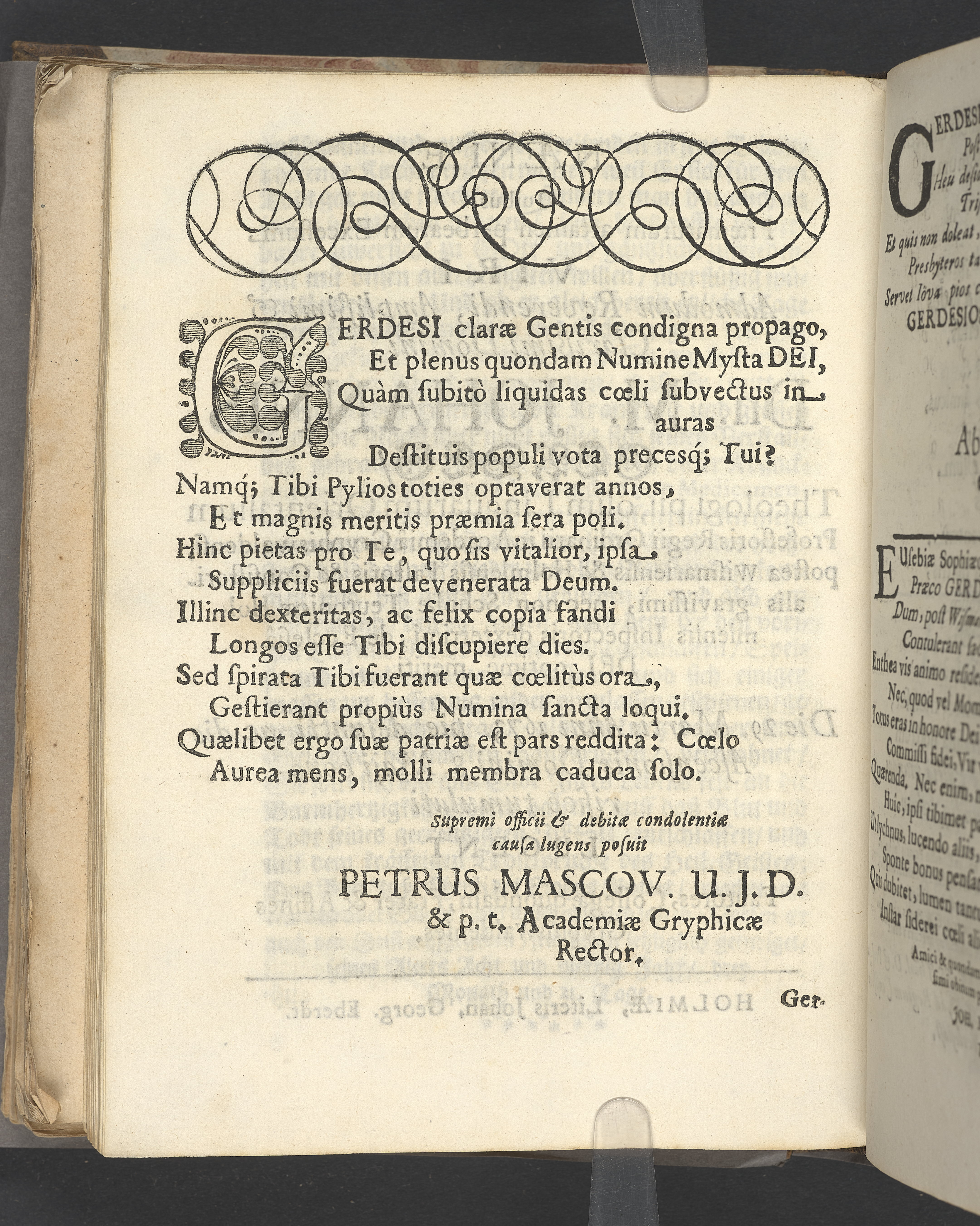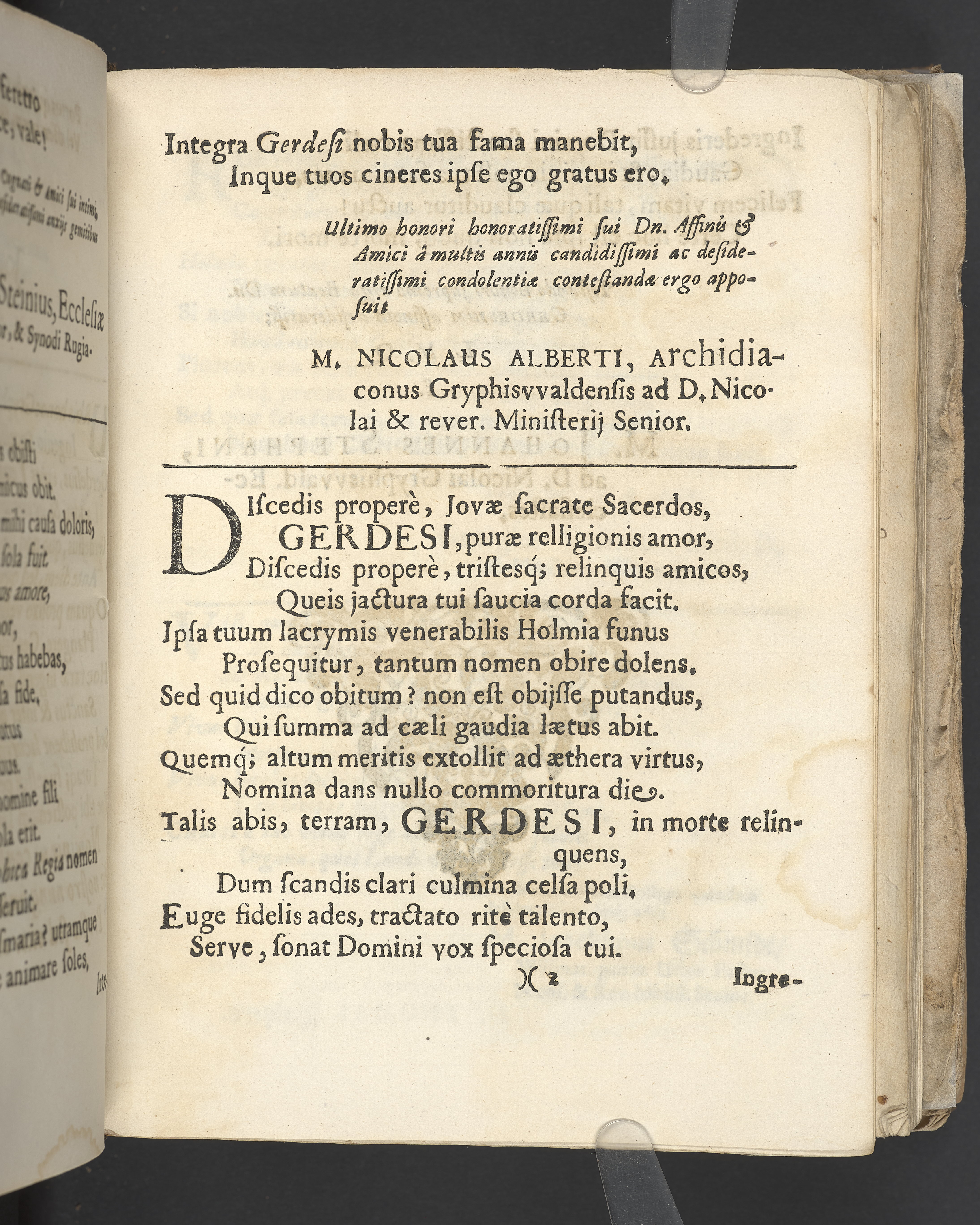 Gravtal på latin av flera författare över Johannes Gerdes. Utgiven som del av likpredikan.