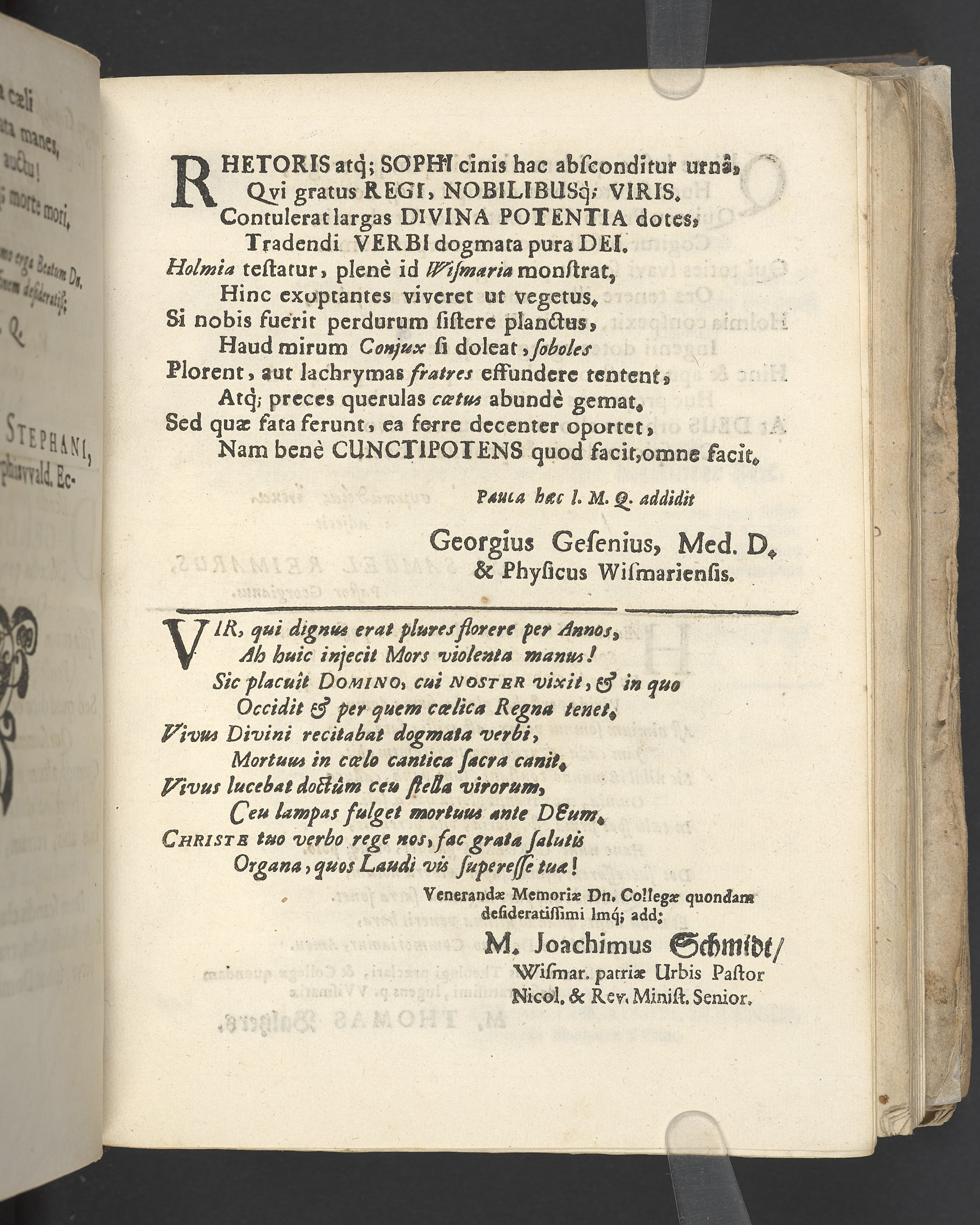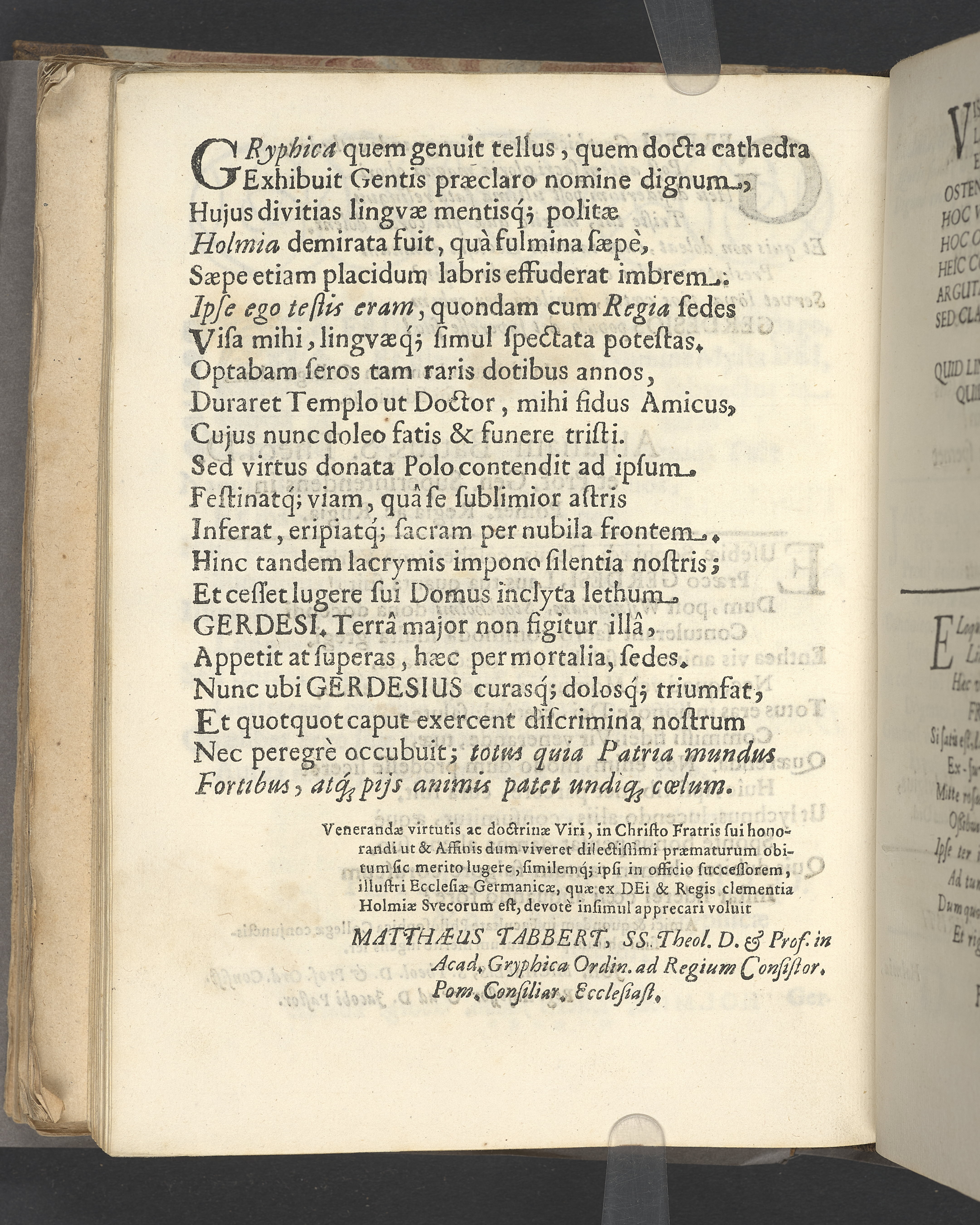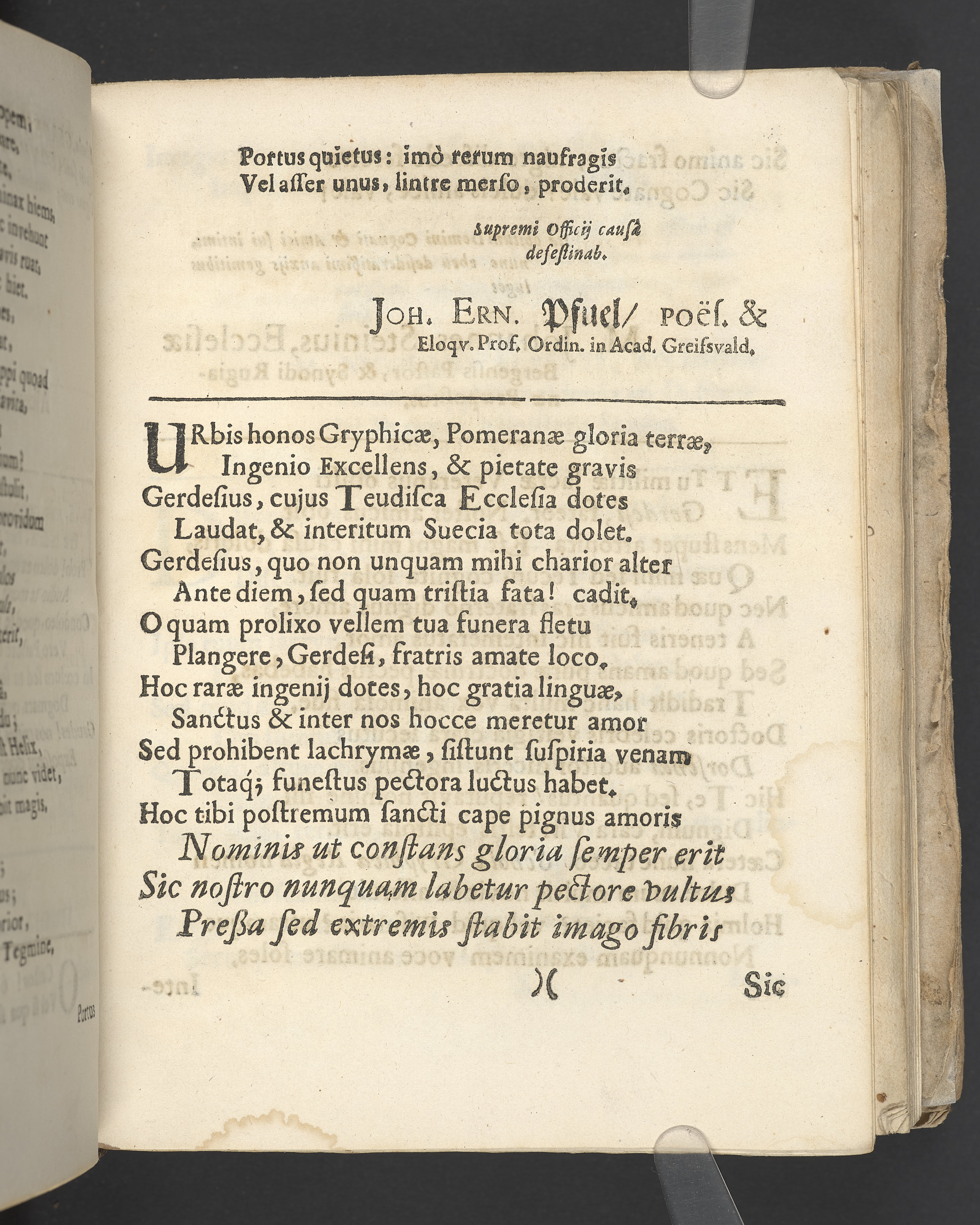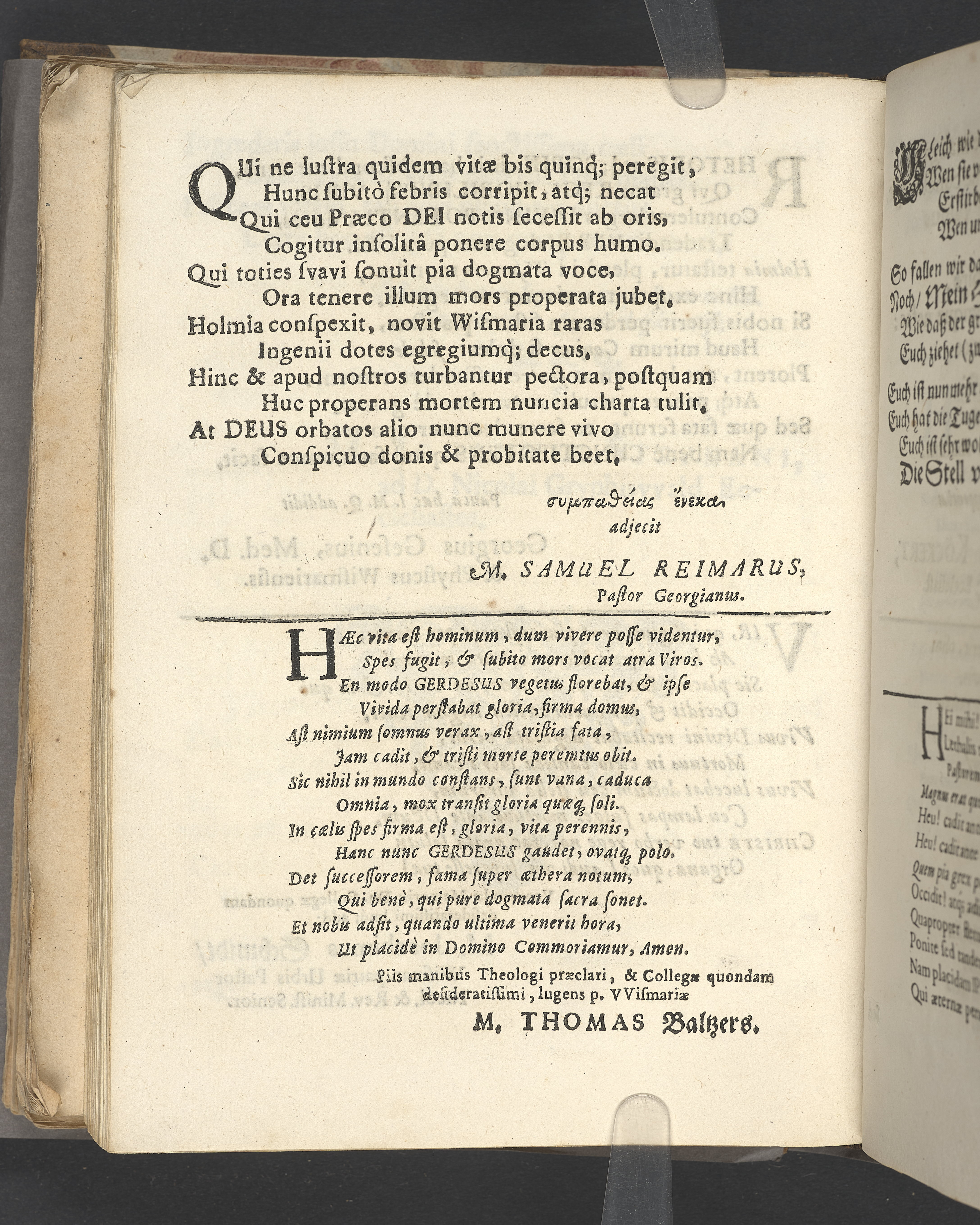 Gravtal på latin av flera författare över Johannes Gerdes. Utgiven som del av likpredikan.