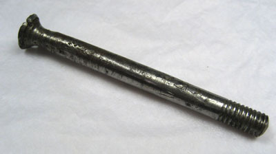 Tillverkad av blankt stål. Långsmal lätt konisk platt skalle med spår. Gängning i nedre delen.