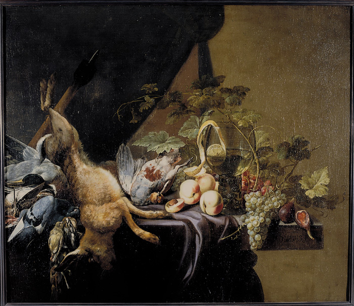 Jaktbyte och frukter av Michiel Simons, Holland.