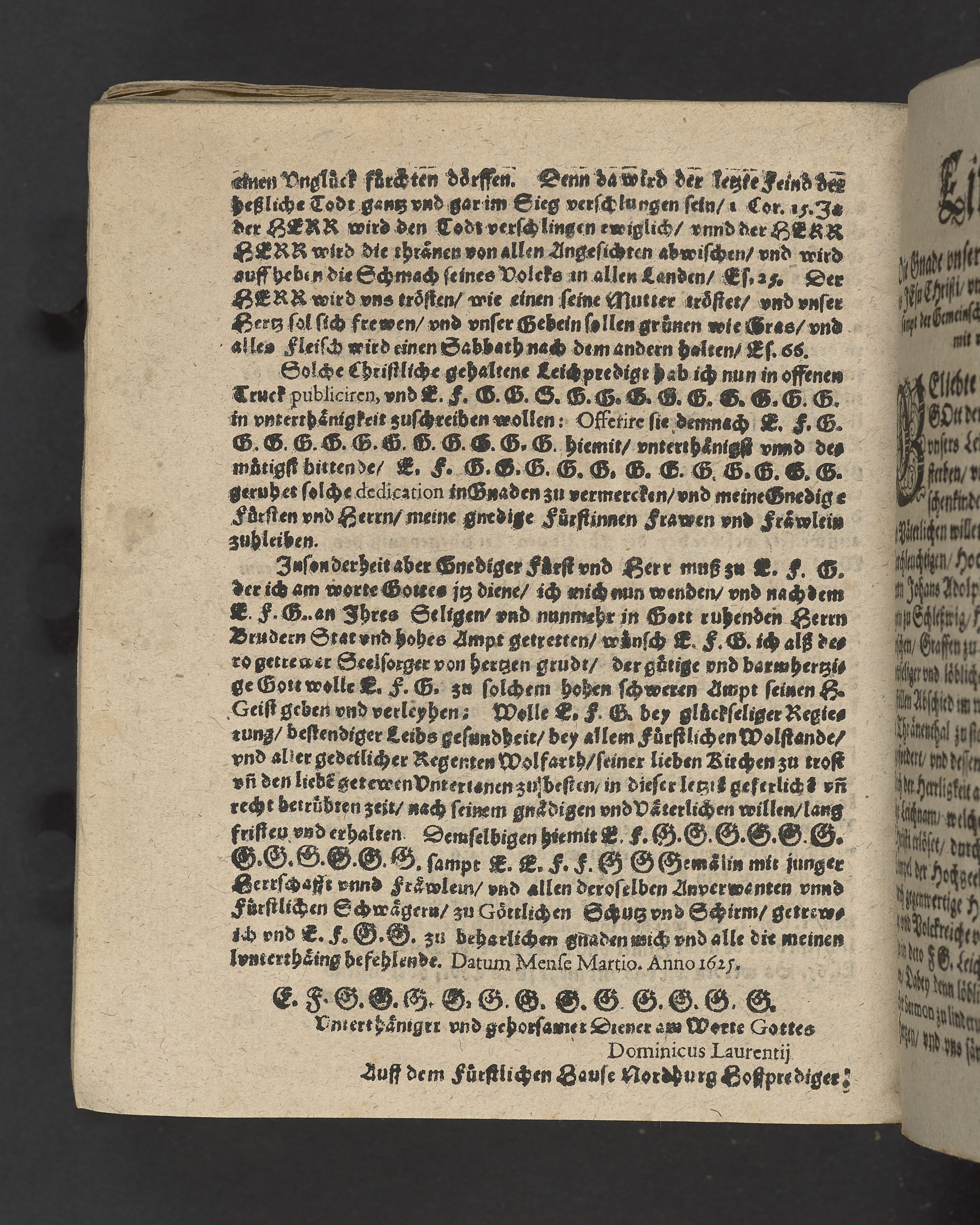 Eine christliche Leichpredigt uber den seligen Abschied aus dieser Welt ... Herrn Johans Adolphen, Erben zu Norwegen, Hertzogen in Schleszwig, Hollstein ... welcher den 21. Februarij des 1624. Jahrs ... selig und sanfft entschlaffen; Folgends den 4. Maij gen Sonderburg fürstlich gefüret vnd begleitet, vn[d] drauff folge[n]des Tags in der Schloszkirchen ... zur Ruhe gesetzt worden. Gehalten durch Dominicvm Lavrentii ... Gedruckt zu Rostock, bey Richels Erben, An: 1625.