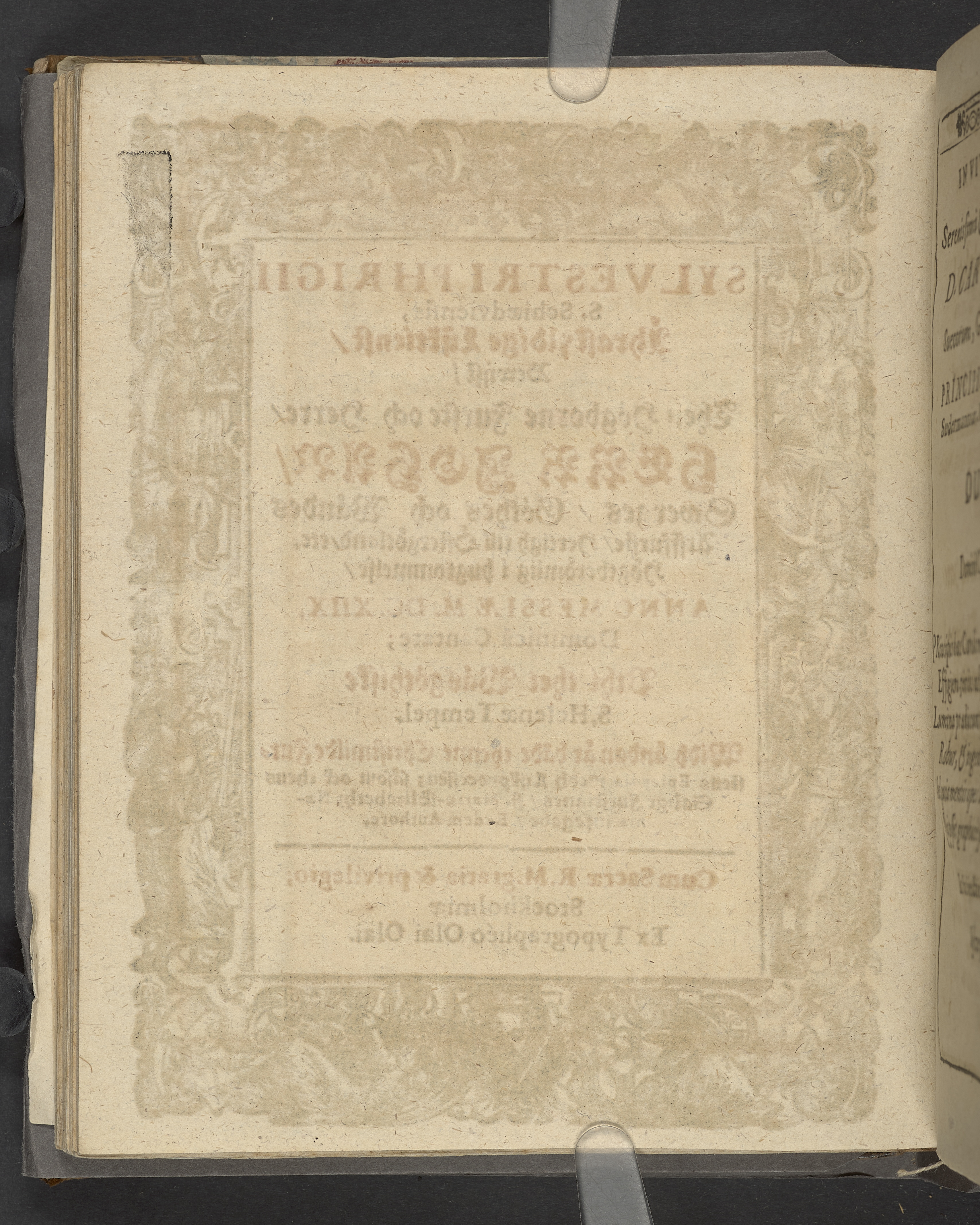 1618; 1700 (bandets tillverkning); 1618 (tryckår) |