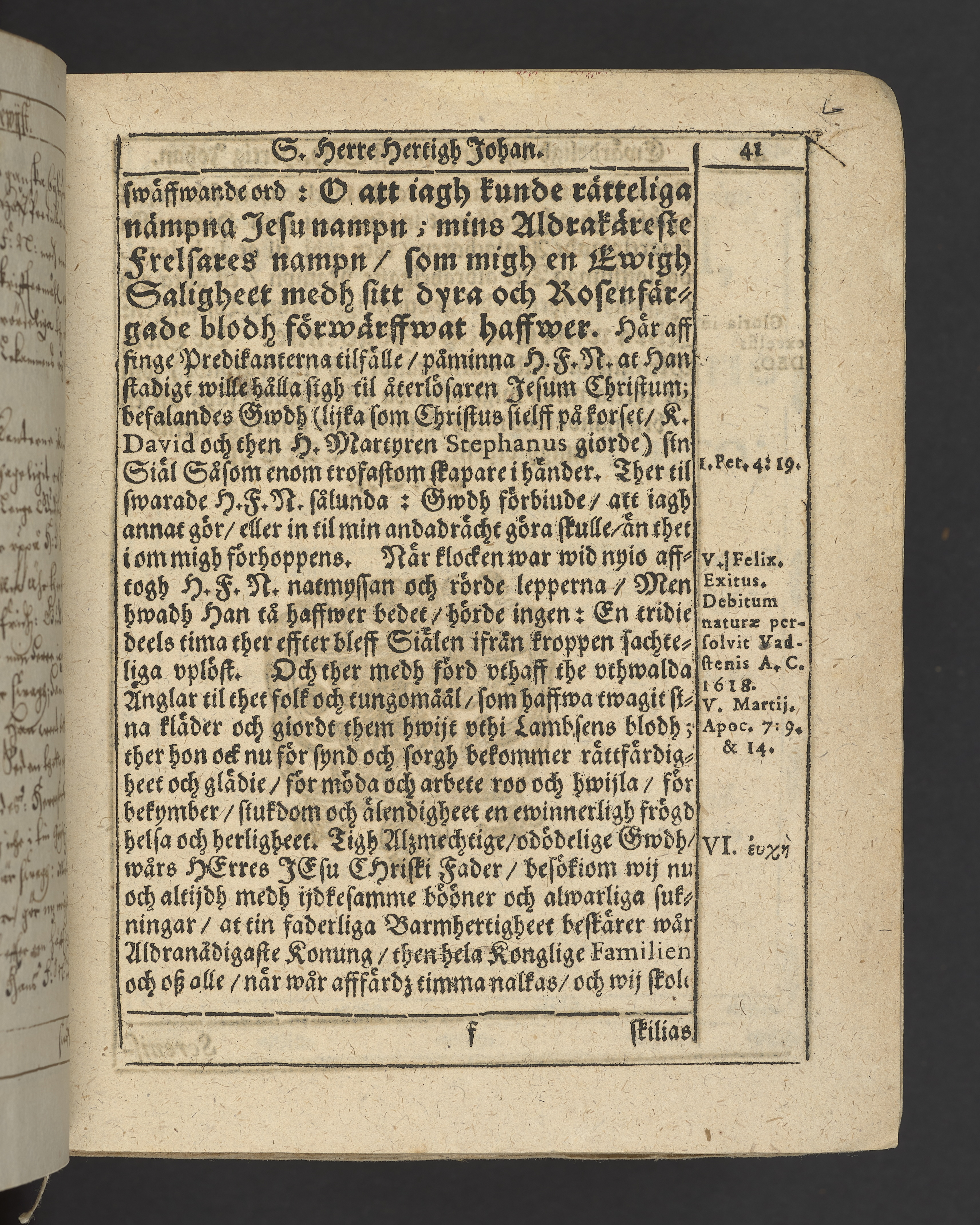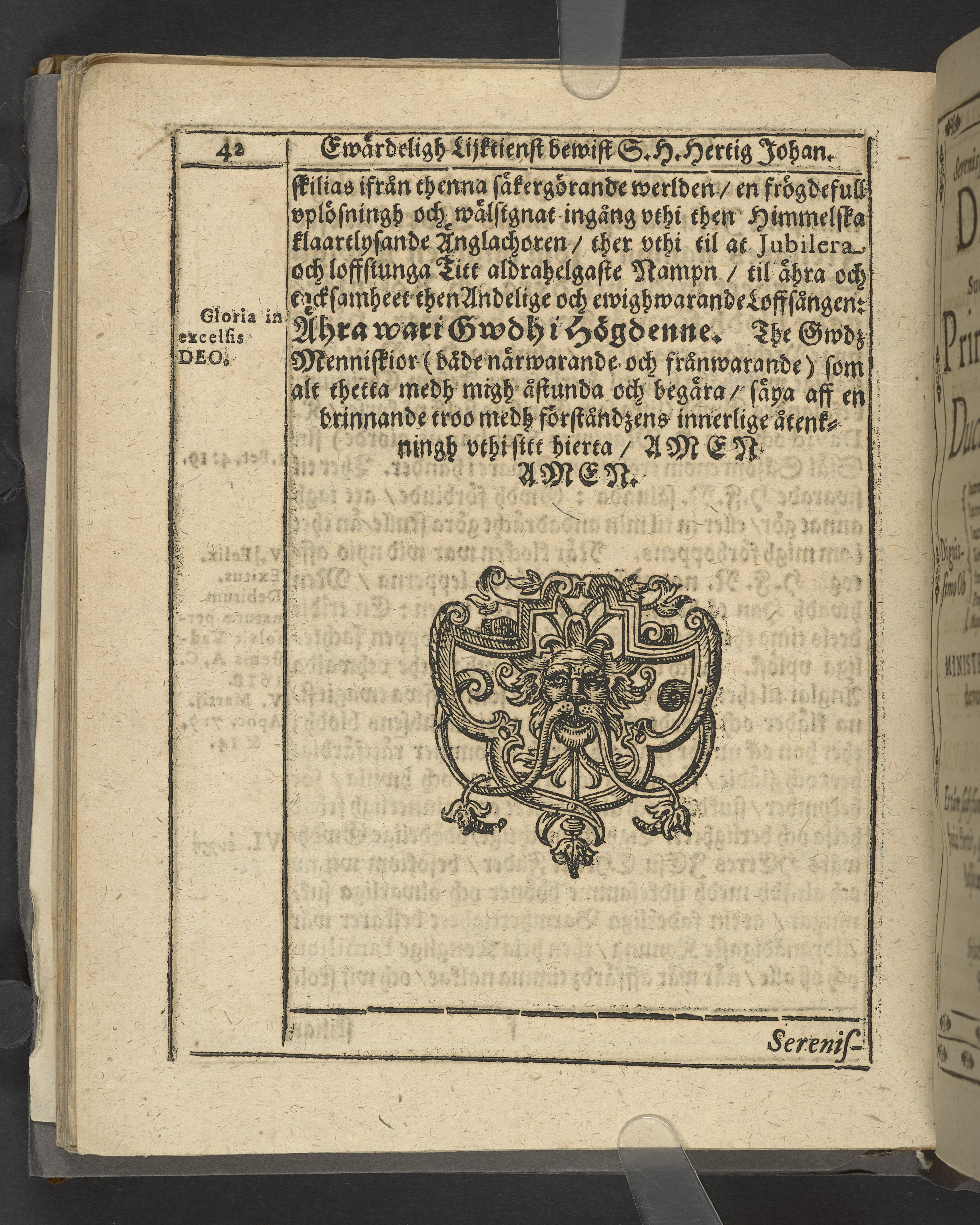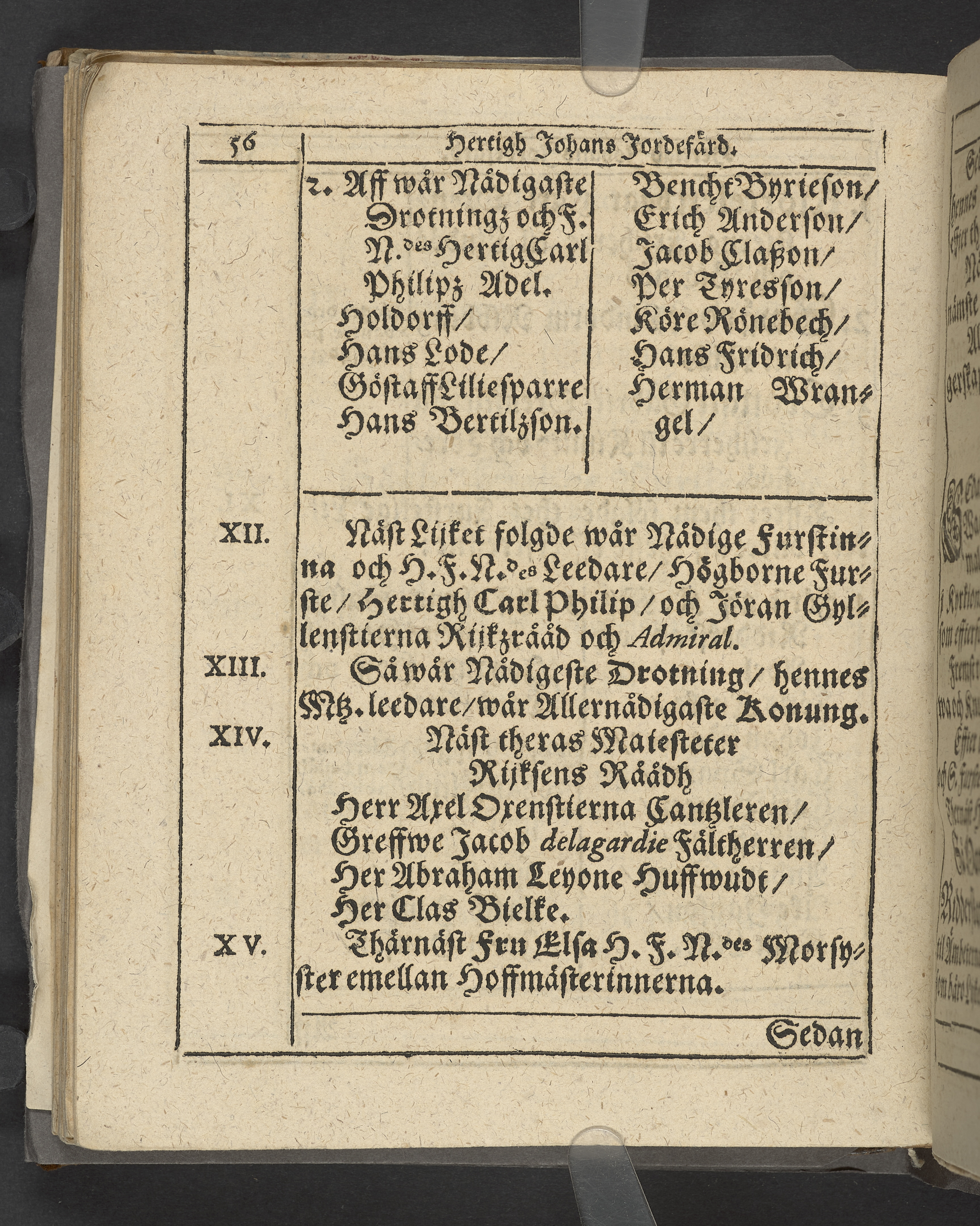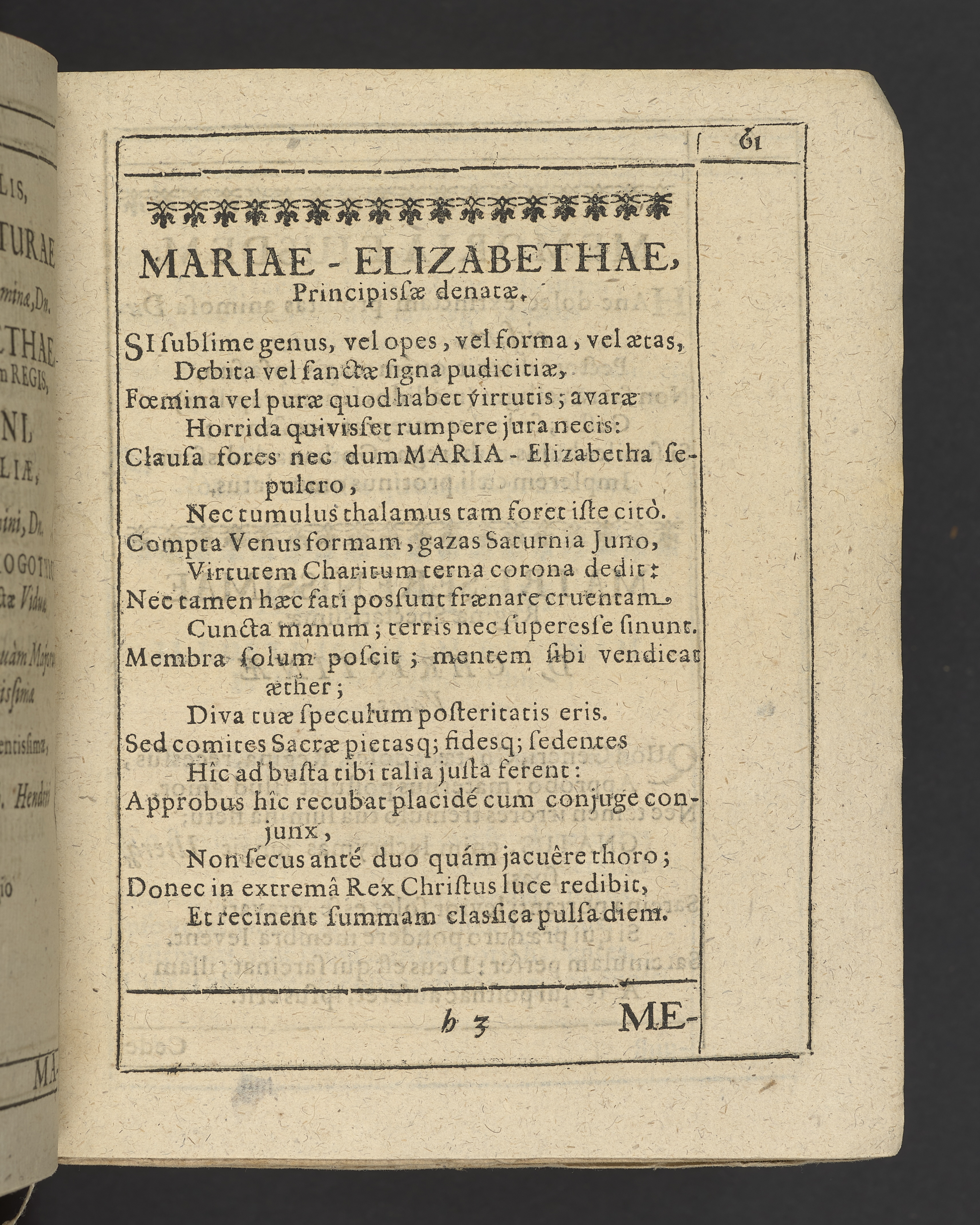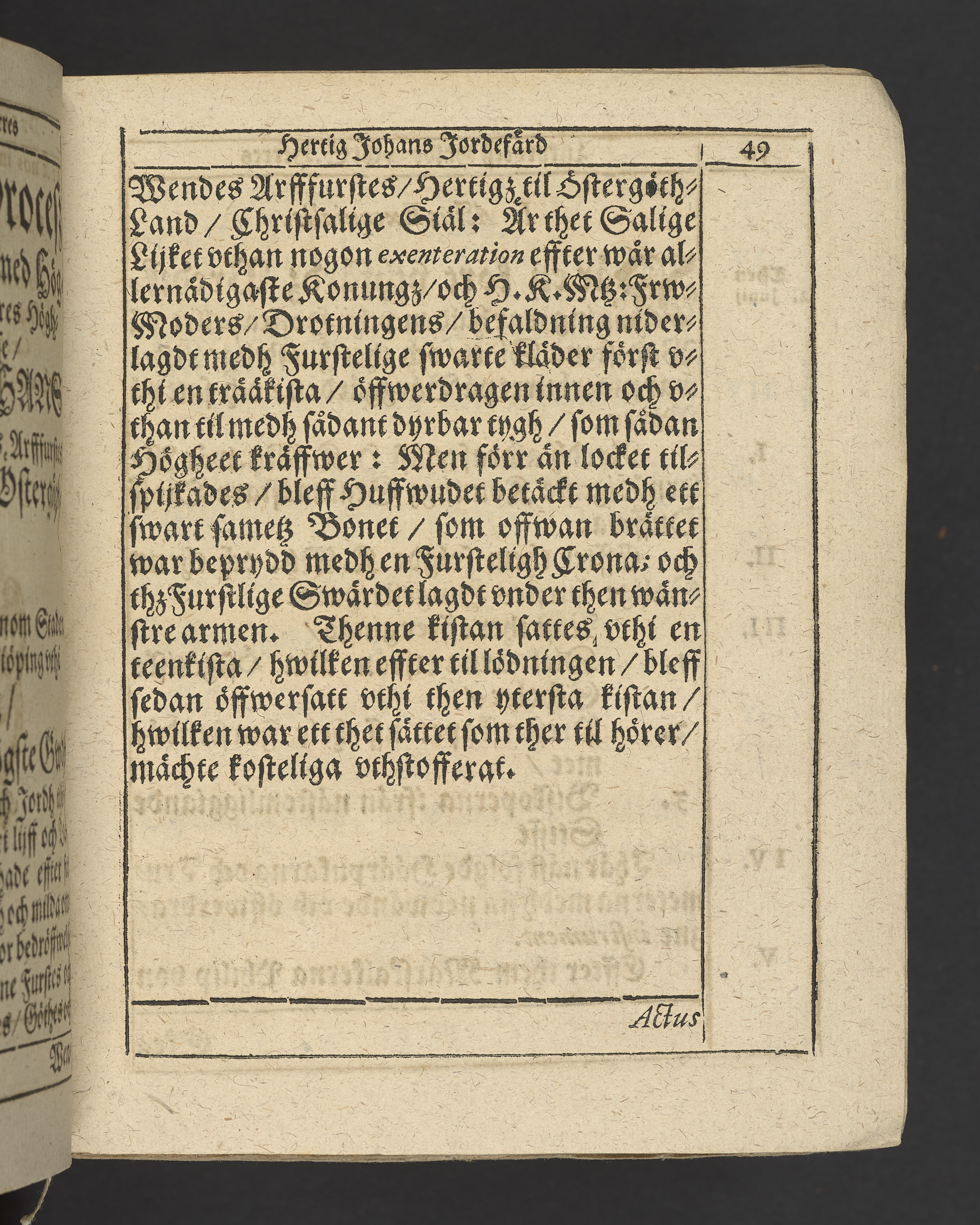 ...Ähraskyldige lijktienst, bewijst... Herr Johan, Sweriges... arfffurste... i hugkommelse... MDCXIIX... uthi thet wäsgöthiske S. Helenae tempel. Widh ändan är... furstens epicedia medh lijkprocessen; såsom och thens salige furstinnes, F. Mariæ-Elisabethz Næniæ infogade, eodem authore... Stockholmiae ex typographeo Olai Olai.