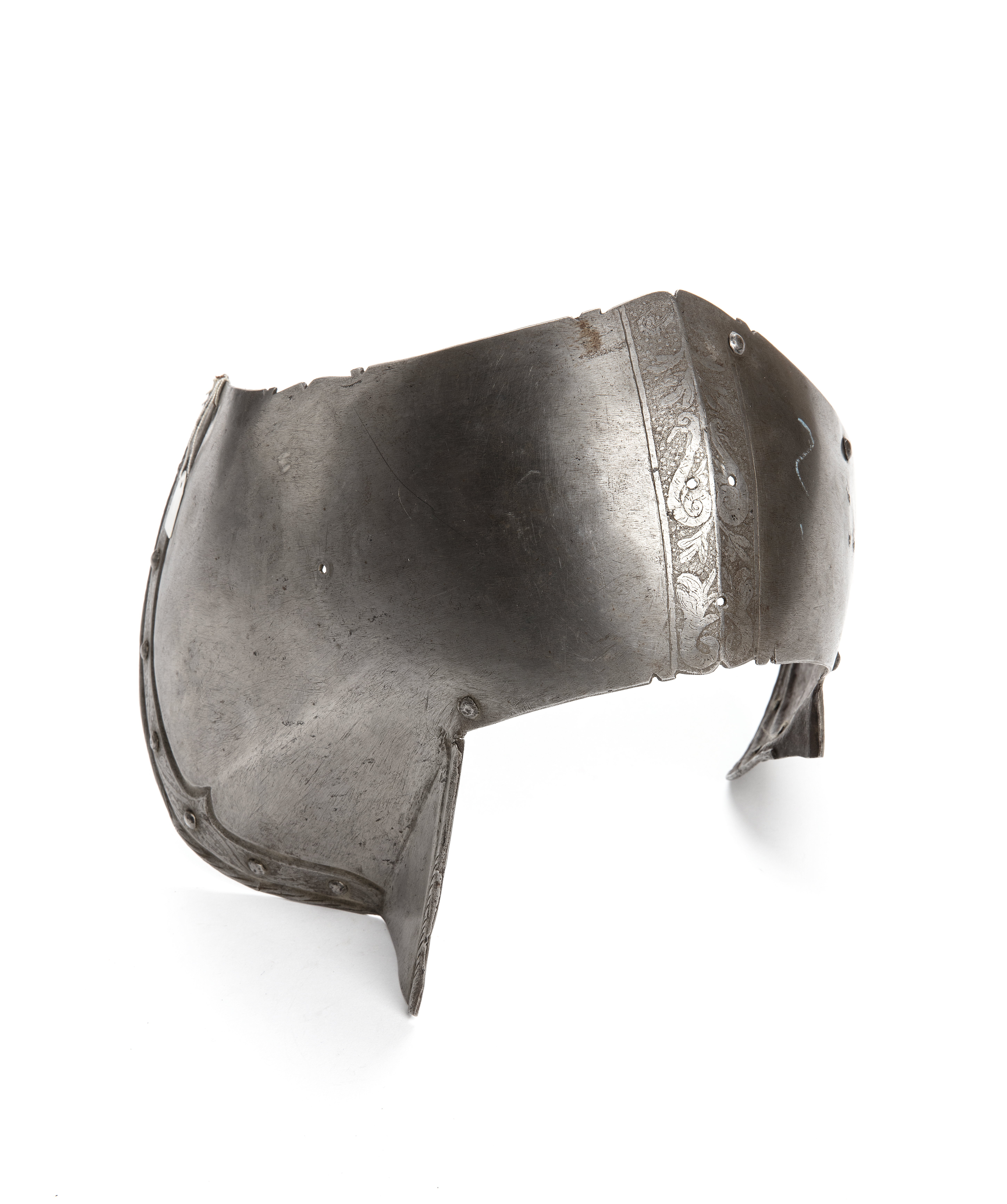 Denna rustningsdel utgör en del av en rustning som inkom till Livrustkammaren genom Karl XV:s testamente. Den hade tidigare varit överintendenten Fritz von Dardels ägo. Till denna rustning, som tillverkats i Nordtyskland under 1500-talet mitt, tillverkades under 1800-talet kompletterande delar. Dessa avlägsnades år 1894 men finns fortfarande kvar i Livrustkammarens samlingar.