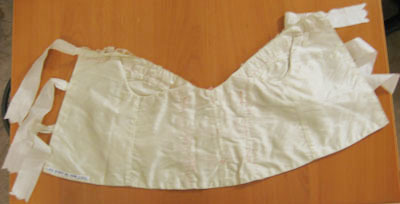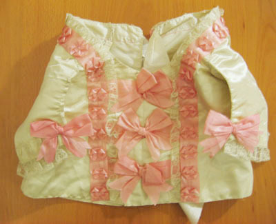 Plagget ingår i en babyutstyrsel som beställdes till det barn som Hedvig Elisabeth Charlotta felaktigt trodde sig vänta sommaren 1775. Plaggen har senare använts av de barn Hedvig Elisabeth Charlotta födde, samt av Gustav IV Adolfs och drottning Fredrikas barn. Barntröjan är i vitt atlassiden och fodrad med taftsiden. Tröjan är sydd av fyra delar och ärmarna av två delar vardera. Från nacken löper ett slingranderosa sidenband (bredd 24 mm och längd 336 mm) samt en 20 mm bred spetskant som följer sidenbandet. På framstycket, mellan de slingrande banden, dekor i form av tre tre stycken tvärgående sidenband (längd 100 mm) och tre rosetter, 70 mm breda. På båda ärmarna finns en liknanderosa rosett av siden (70 mm bred) fastsydd på en 40 mm bred linnespets. På baksidan är tre vita sidenband fastsydda på var sin sida. Banden är 195 mm långa och 34 mm breda med ett klippt zick-zackmönster i varje ända. Tröjans vidd över bröstet är 500 mm.