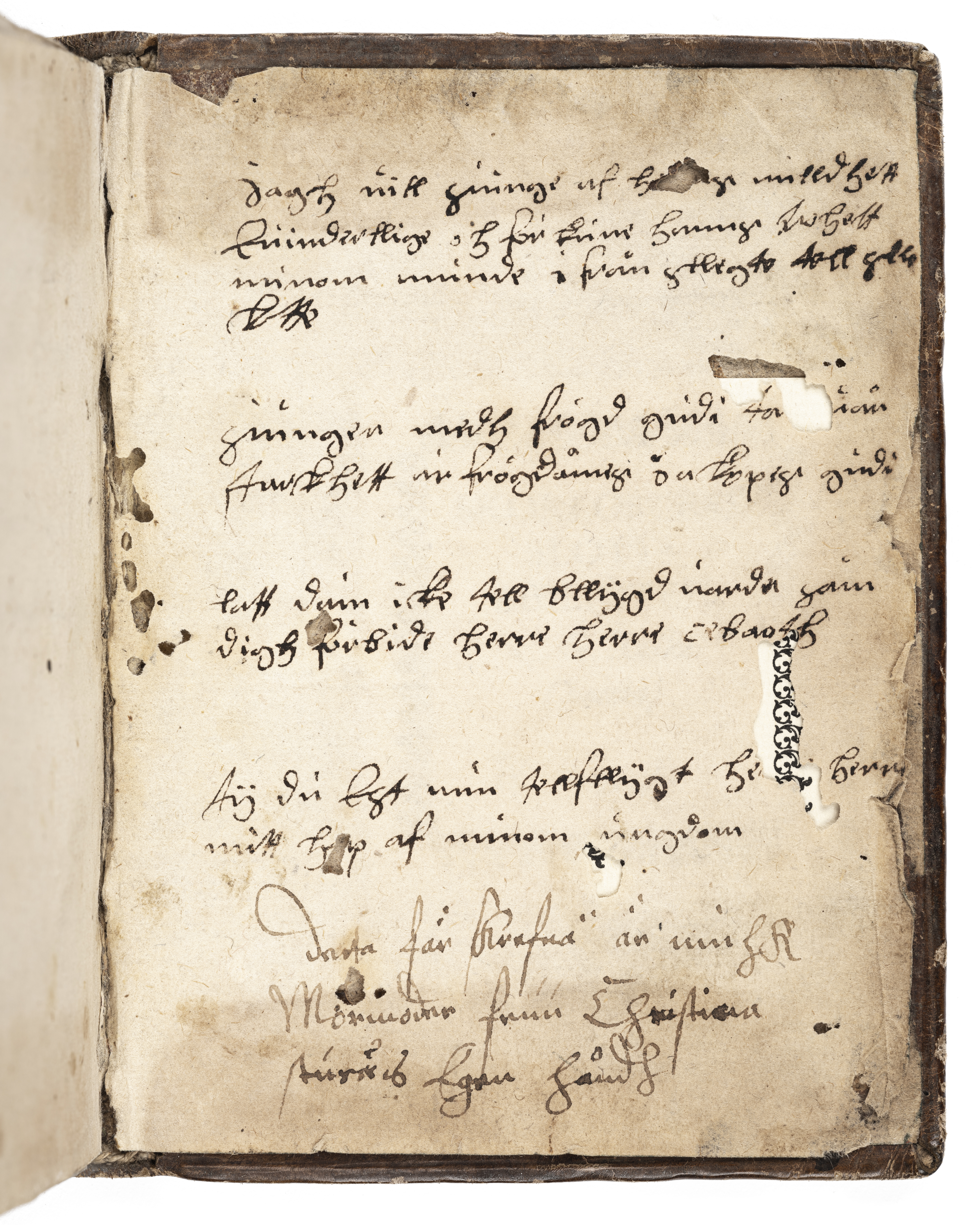Rikliga anteckningar på pärmarnas insidor och försättsbladen