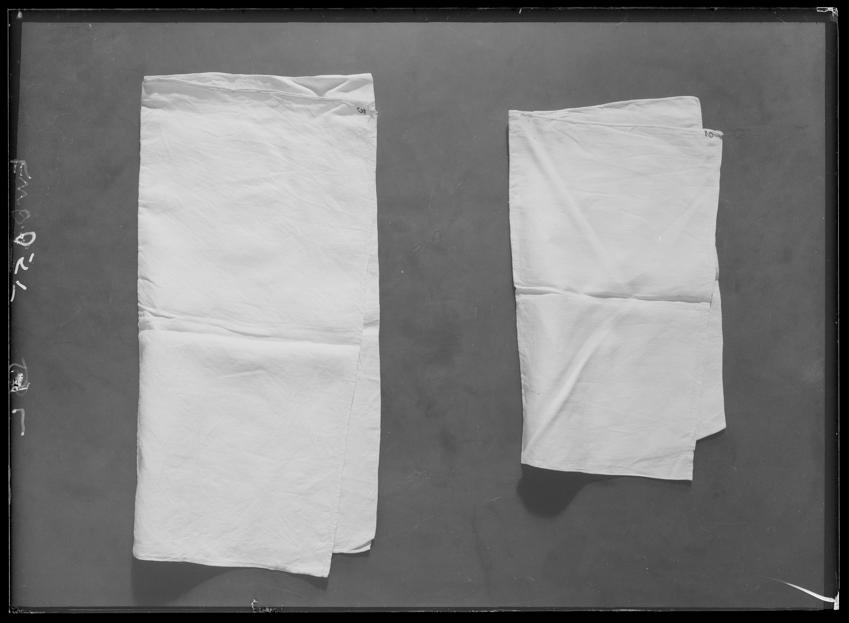 Plagg ingående i en korg med babykläder som använts av Sofia och Oskar (II):s barn. Örngottsvar av tunt, vitt linne med handsydda sömmar, en lång- och en kortsida. Andra kortsidan fållad och öppen. I ett hörn med märkbläck"2".
