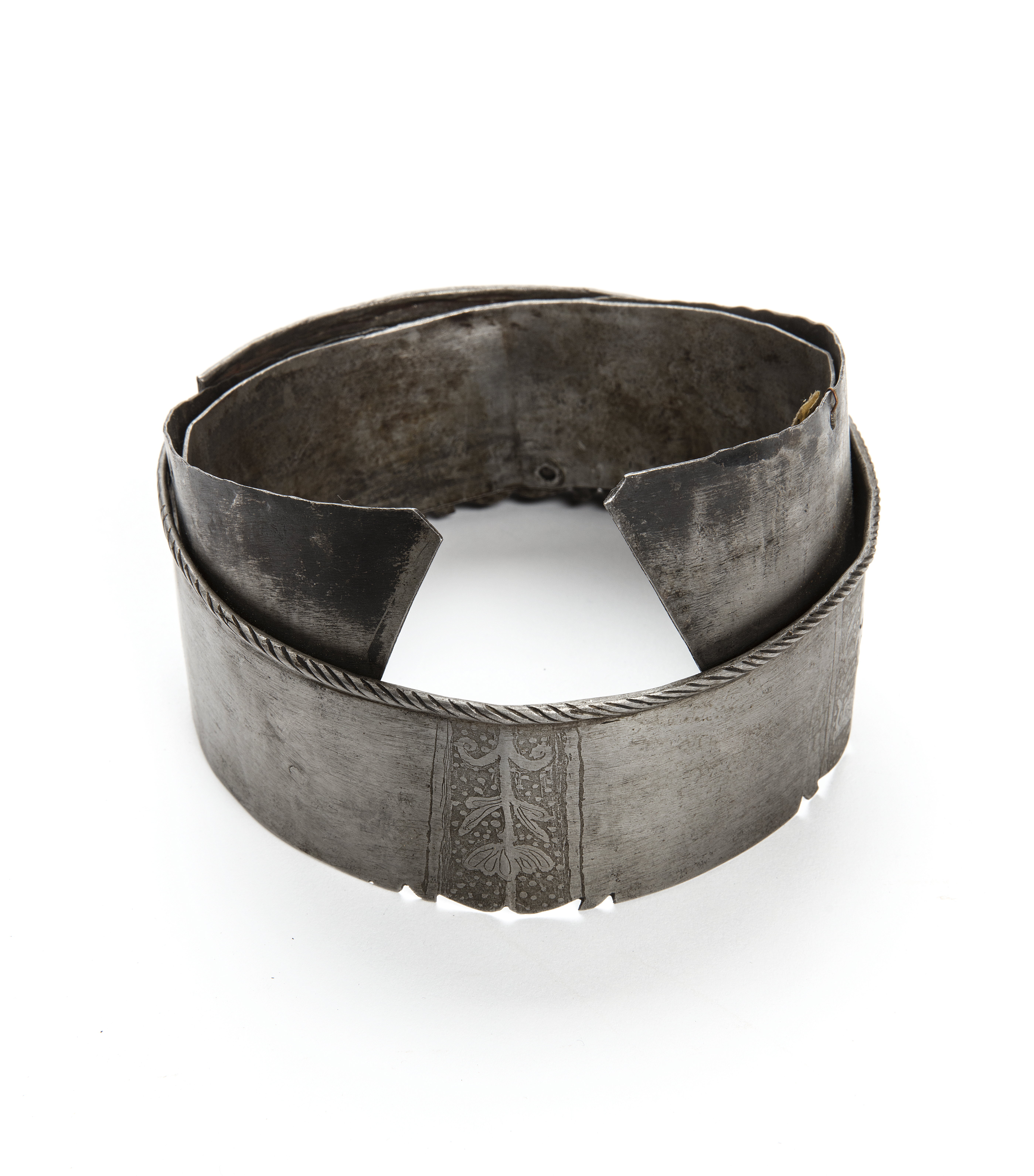 Denna rustningsdel utgör en del av en rustning som inkom till Livrustkammaren genom Karl XV:s testamente. Den hade tidigare varit överintendenten Fritz von Dardels ägo. Till denna rustning, som tillverkats i Nordtyskland under 1500-talet mitt, tillverkades under 1800-talet kompletterande delar. Dessa avlägsnades år 1894 men finns fortfarande kvar i Livrustkammarens samlingar.