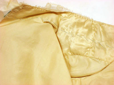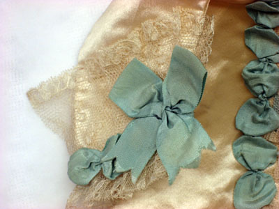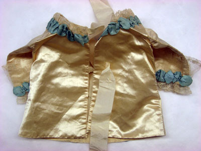 Barntröjan är i vitt atlassiden och fodrad med taftsiden. Tröjan är sydd av fyra delar och ärmarna av två delar vardera. Från nacken löper ett slingrande grönt sidenband (bredd 20 mm och längd 340 mm) samt en 20 mm bred spetskant som följer sidenbandet. På framstycket, mellan de slingrande banden, dekor i form av tre tre stycken tvärgående sidenband (längd 100 mm) och tre rosetter, 70 mm breda. På båda ärmarna finns en liknande grön rosett av siden (60 mm bred) fastsydd på en 40 mm bred linnespets. På baksidan är tre vita sidenband fastsydda på var sin sida. Banden är 352 mm långa och 34 mm breda med ett klippt zick-zackmönster i varje ända. Tröjans vidd över bröstet är 500 mm.