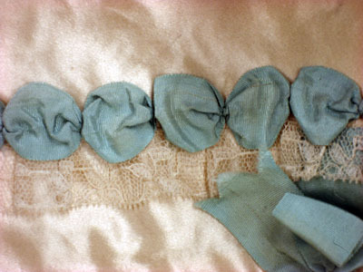 Barntröja med turkos rosettband.