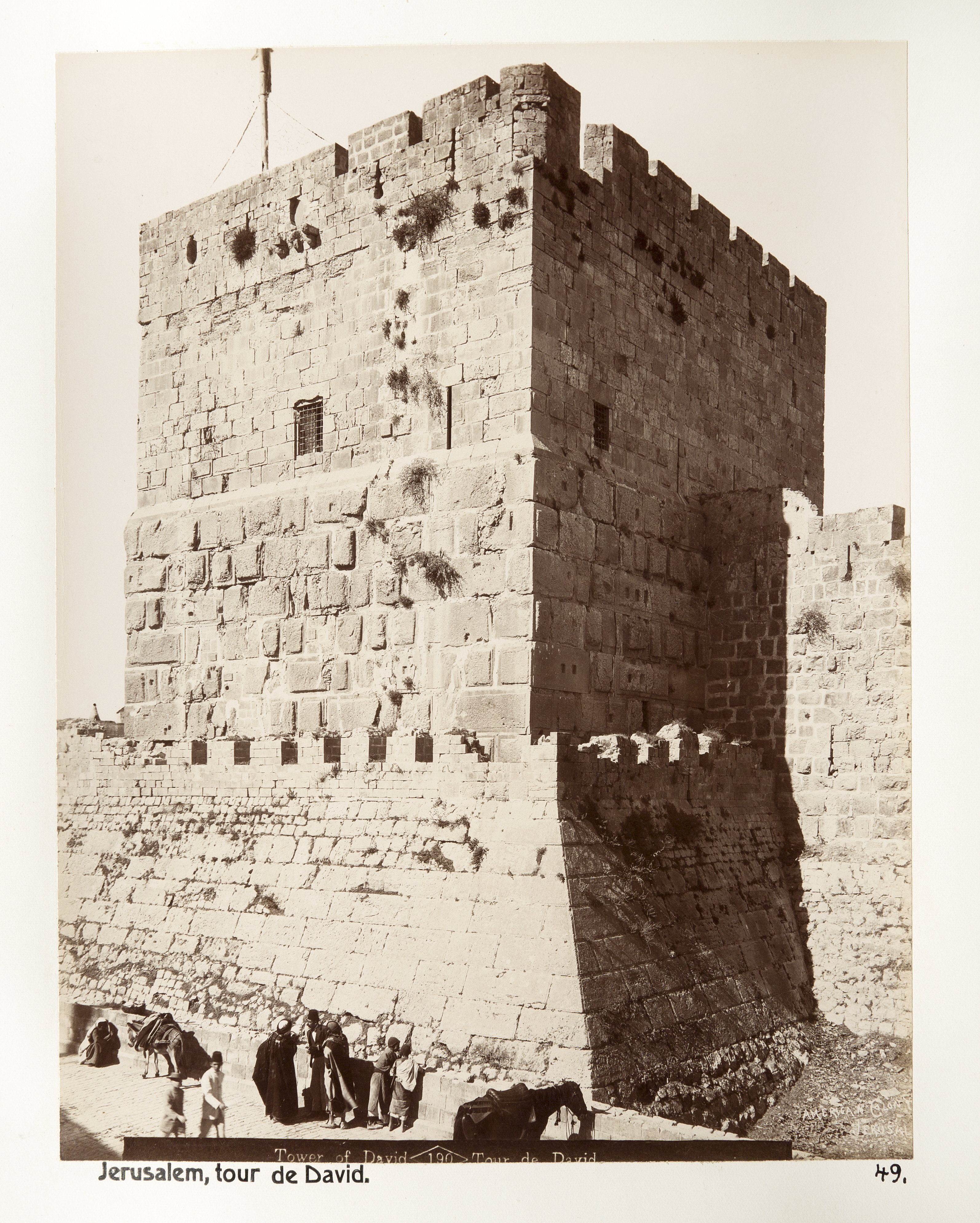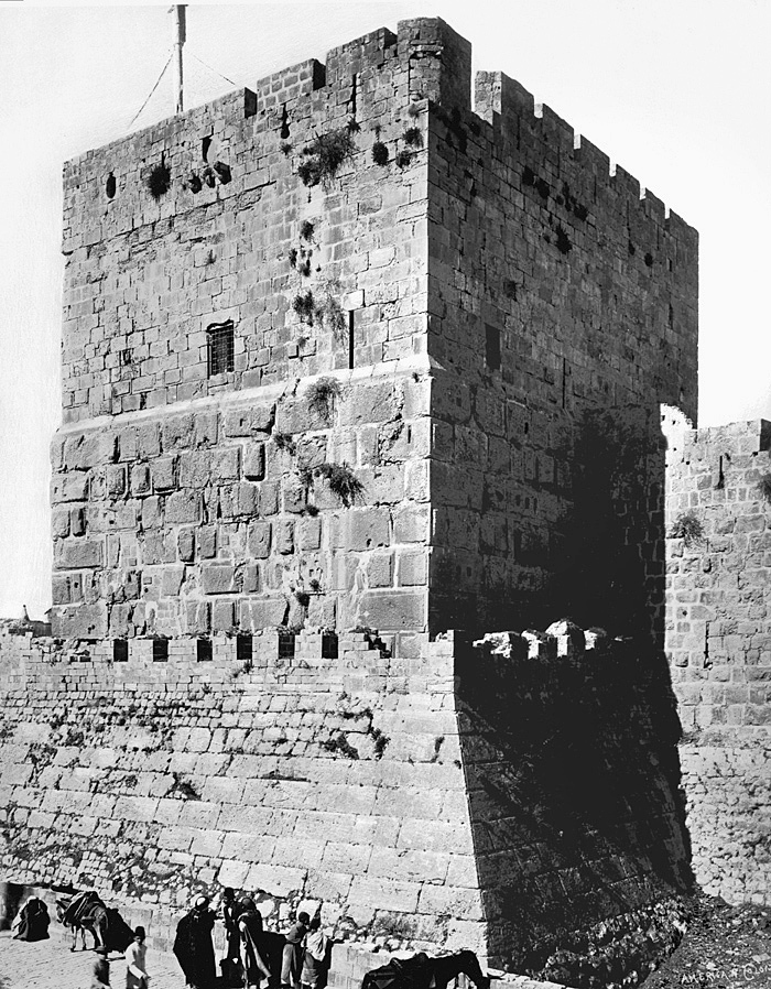 Davidstornet i Jerusalem. Text på originalet: "Tower of David/Tour de David". Fotografierna LXVI:N.01.-180. kommer från resan till Palestina och Syrien som Wilhelmina och Walther von Hallwyl gjorde den 30 mars-27 april 1901. De lämnade Sverige den 5 november 1900 för Egypten, där de stannade till den 28 mars 1901, då de fortsatte till Palestina. Med på resan var Wilhelminas sällskapsdam, fröken Ida Uhse. Den 27 april fortsatte de till Turkiet och Mindre Asien. De mindre fotografierna (utom de från Samos) LXVI:N.90.-100. är tagna av Wilhelmina själv, under en resa till häst från Jerusalem till Damaskus 8-20 april 1901. Övriga fotografier är inköpta av Wilhelmina i Jerusalem, Damaskus och Beirut. Alla uppgifter kommer från Ida Uhses reseanteckningar.