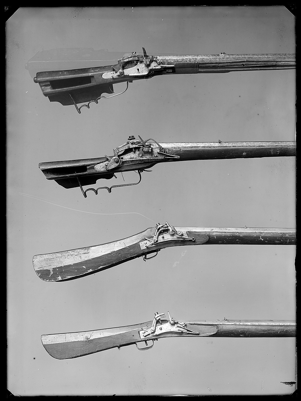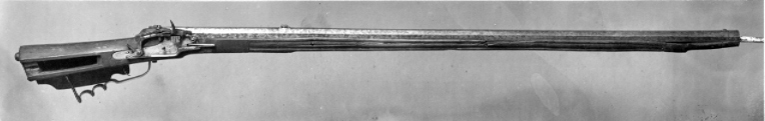Åttsidig, räfflad pipa, 6 räfflor, bombredd 5,6 mm. På kammaren stämpel: C K (LRK vägledning 1921 nr 371). Riktmedel: Från sidan inlaxade riktmedel. Kulissikte av stål, blyskärmen saknas. Stolpkorn av mässing. Fästning: Tre häften. Pipan fäst med krysskruv underifrån (varbygelskruven) samt två (urspr. tre) pipstift av stål. Springlås med vändstål, svensk typ. Plant låsbleck, vinkelböjd, kantig hane med filad och punsad dekor, lös överkäke. Käkskruv med cylindriskt huvud. Rektangulär fängpanna med nedåtriktad, konturerad gavel, h: 14 mm, filad dekor. Fängpannelock med vändstål, vändstålets fjäder fäst på lockets innersida mot pipan. Fästning: Två låsskruvar, den främre saknas. Avtryckare: C-formig avtryckare av stål. Brungul helstock av tysk typ, stödkula av stål, på anslaget en stålnit. Varbygel med 3 fingerlägen, bakre stolpen inskruvad i kolven, framstolpen fäst med skruv (krysskruven). På h. sida om kolvryggen rester av rött lacksigill. Tillbehör: Flinta i lädermantel mellan hanens käkar.