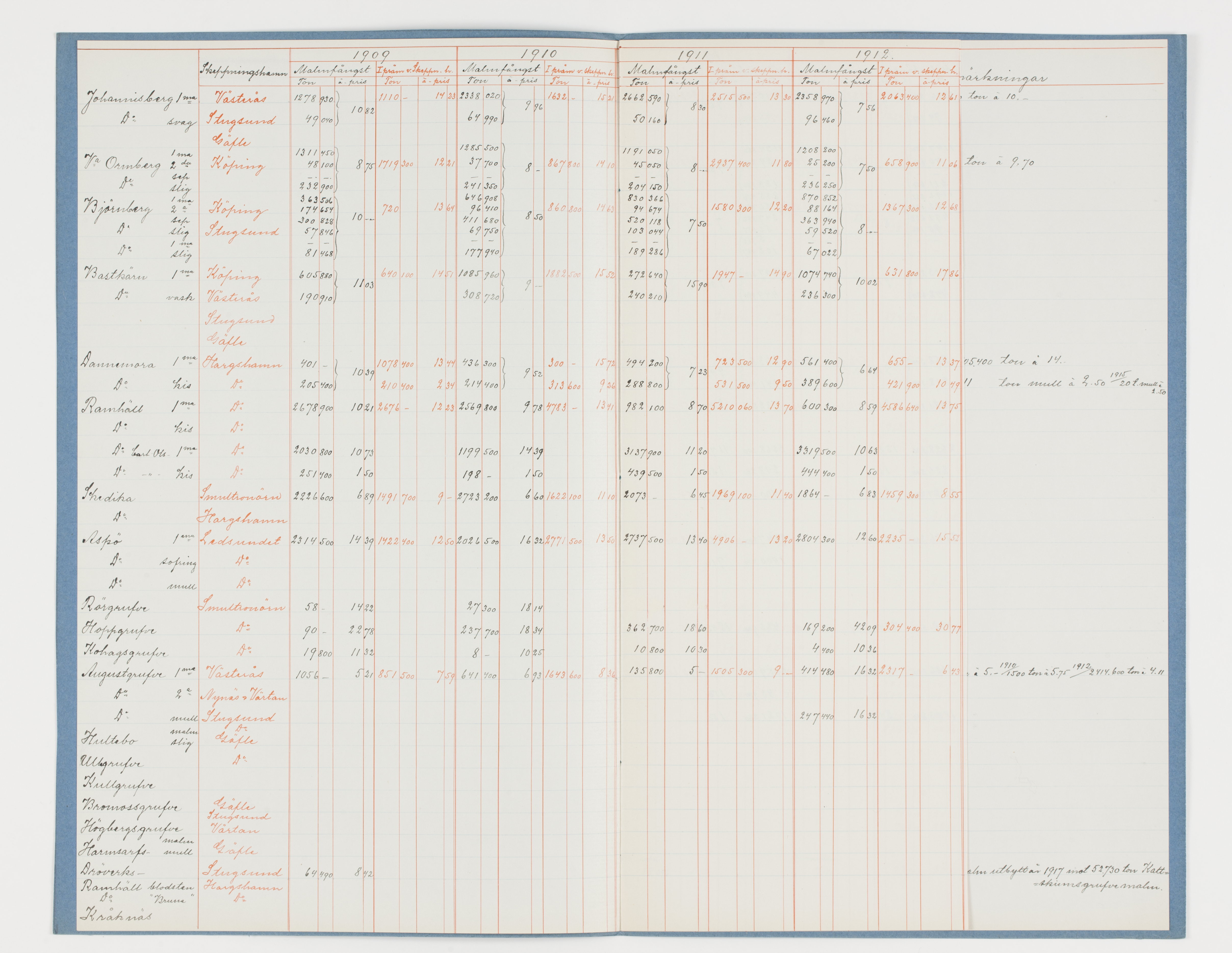 Malmer 1909-1912.