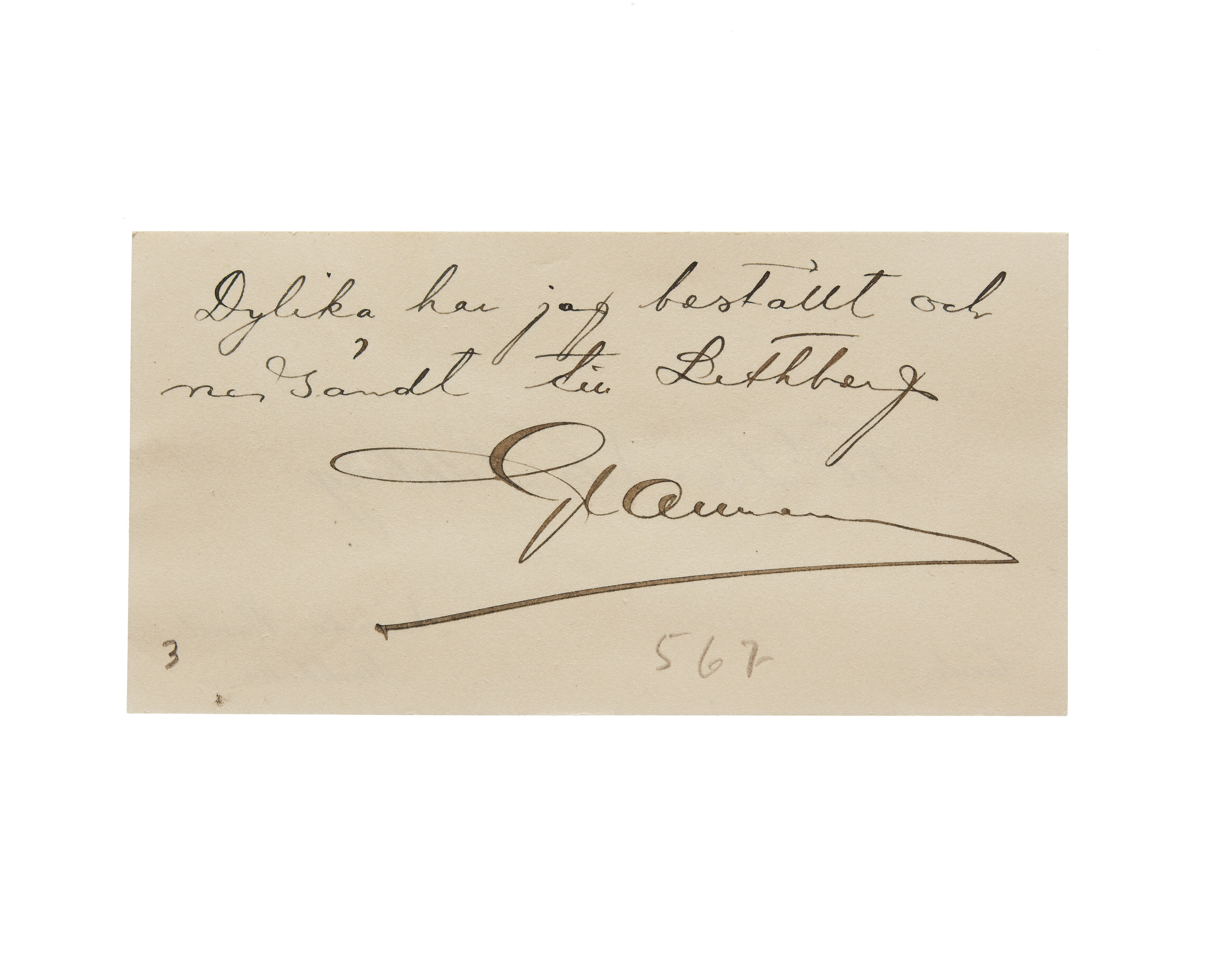 Tre visitkort från Professor Fil Dr Nils Lithberg. Första kortet är utan datum. Adress (nedre högra hörnet) Nordiska Museet. Handskrift "...". Andra kortet daterat 1921, vikt i övre högra hörnet. Tredje kortet daterat 1914.07.17, med två kuvert. Handskrift på kortet "...". Handskrift på första kuvert "...". Handskrift på andra kuvert "...".