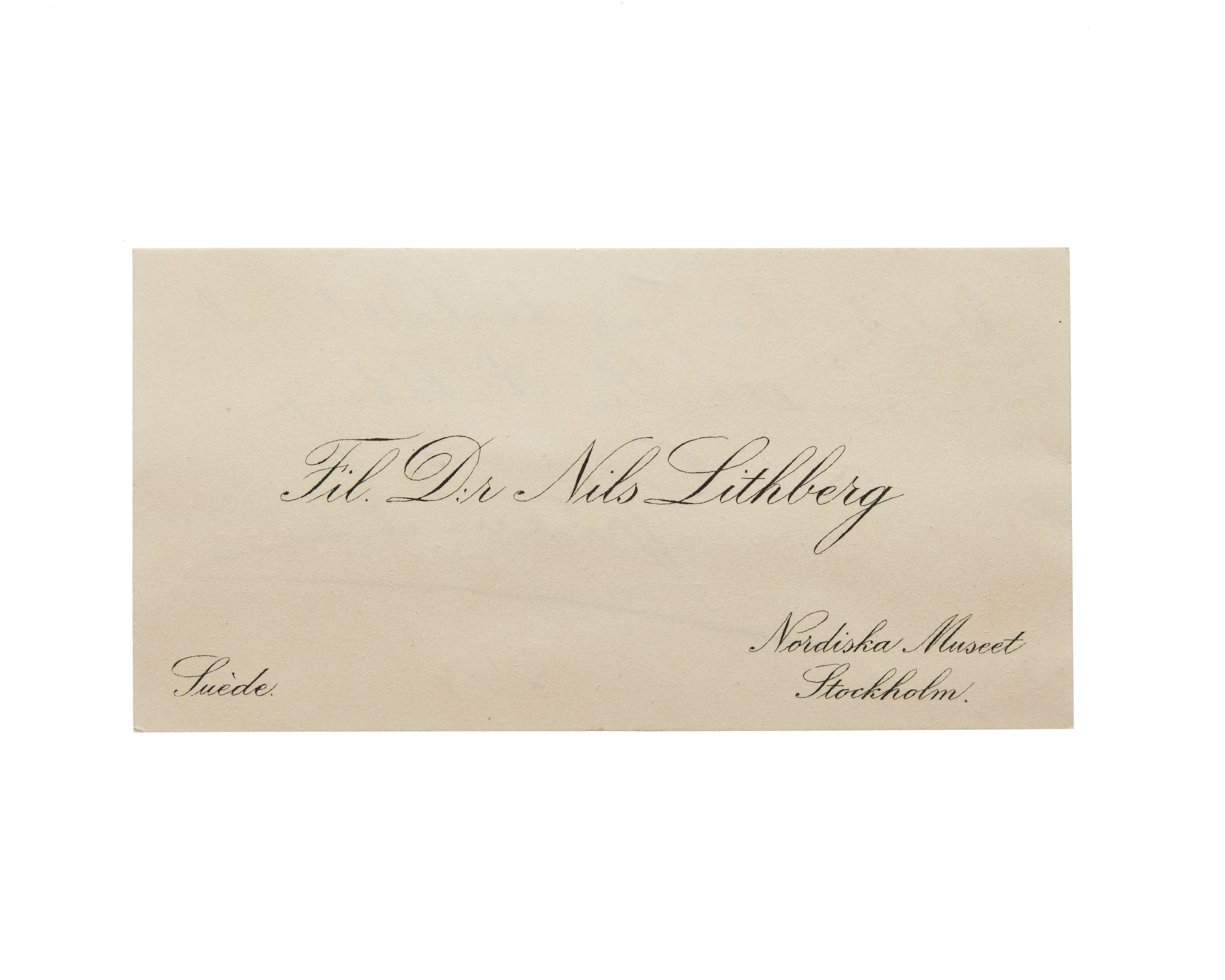 Visitkort från Professor Fil Dr Nils Lithberg.