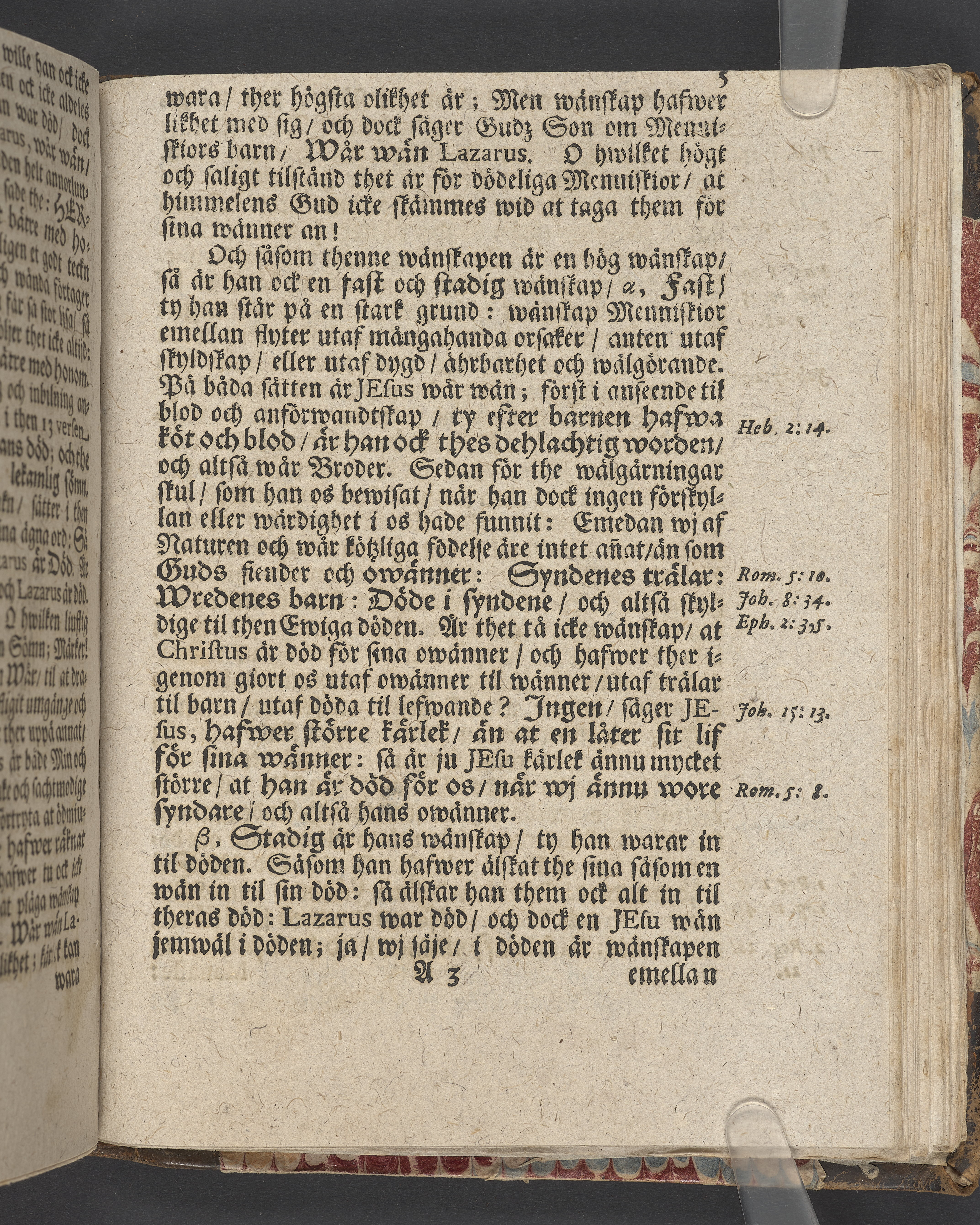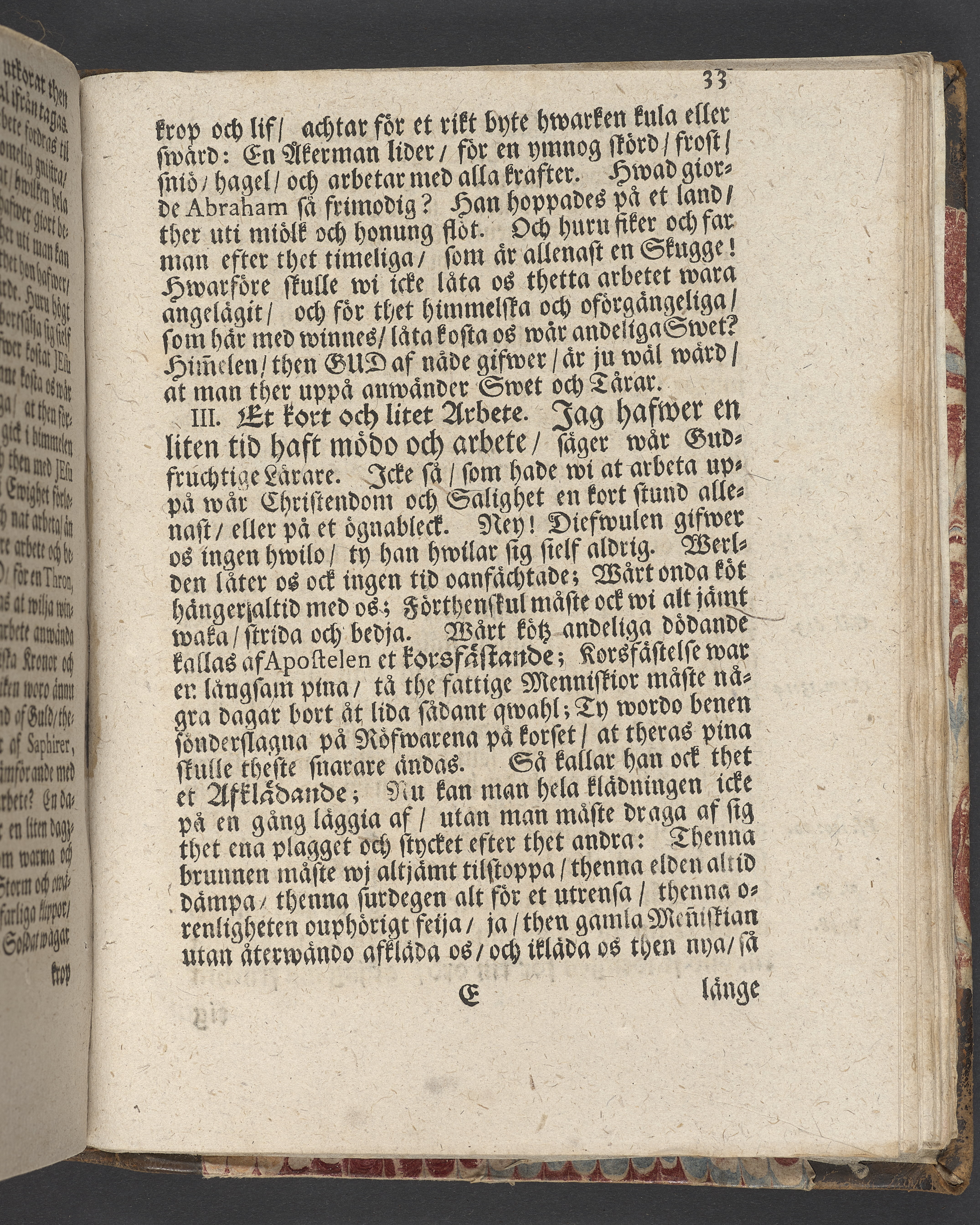 Band m. pärmar av marmorerat papper, rygg och hörn av kalvskinn. Pärmfyllnad: papp. Inlagan består av enskilda lunthäftade skrifter som tillsammans häftats på tre bind, fast rygg. Variationer i papperskvalitet och storlek. 23 skrifter samlade i en volym.